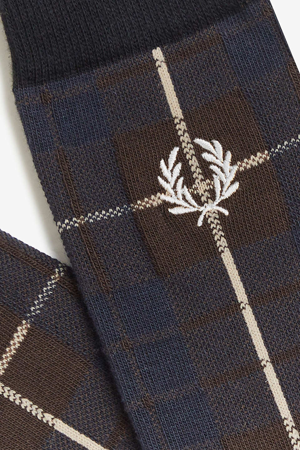 上質なコットンブレンド生地を採用したタータンチェックソックス。 靴下のサイドには、フレッドペリーのシグニチャーであるローレルリースの刺繍をあしらい仕上げています。