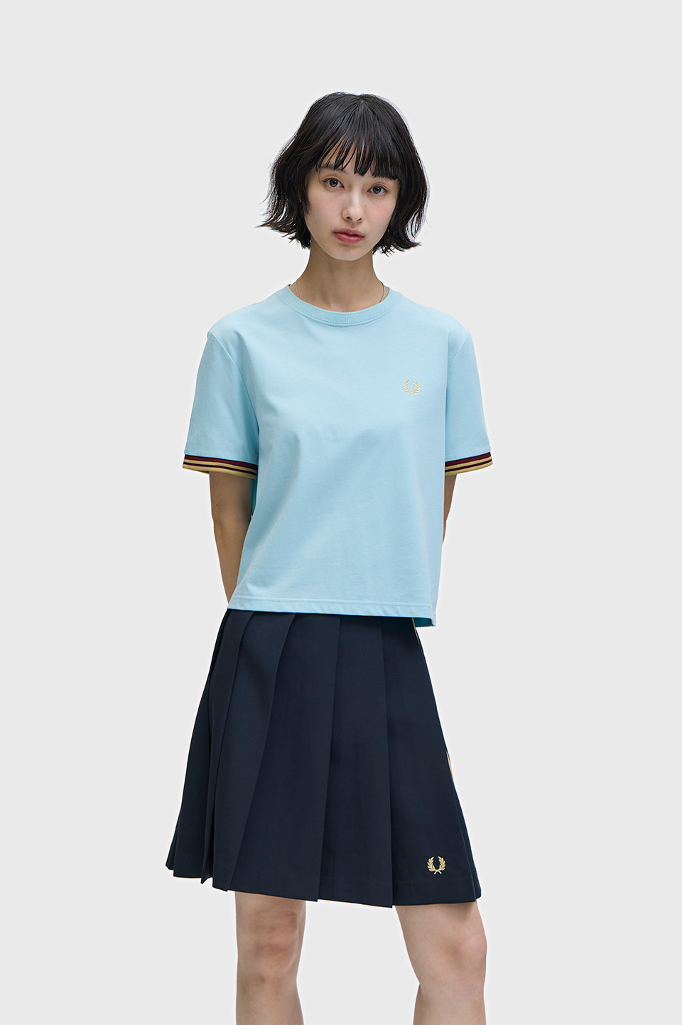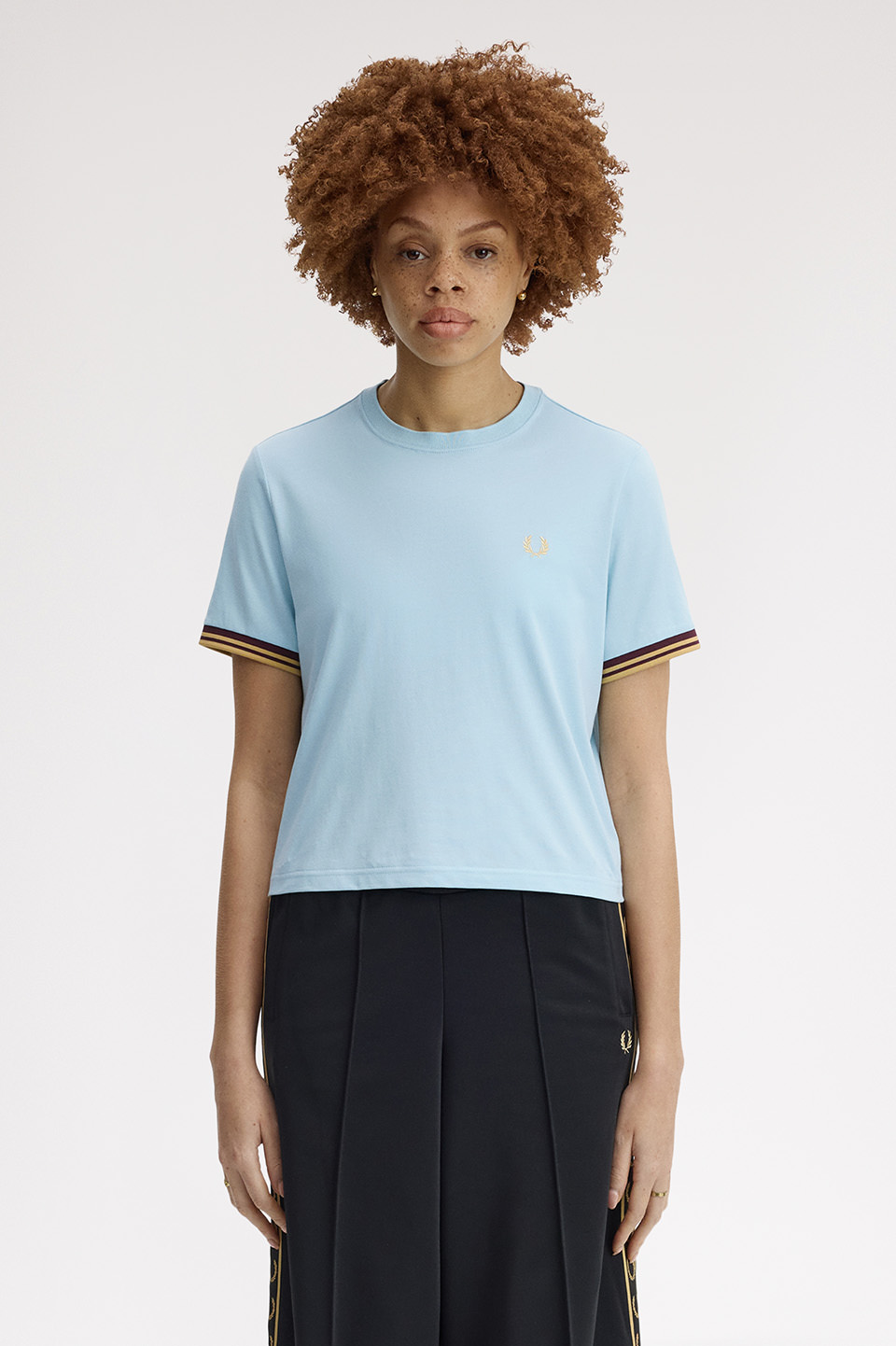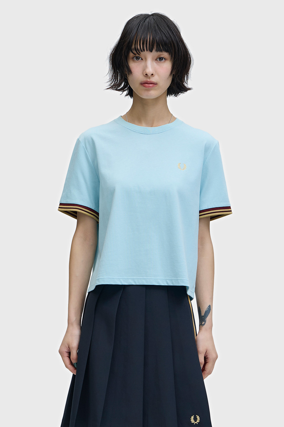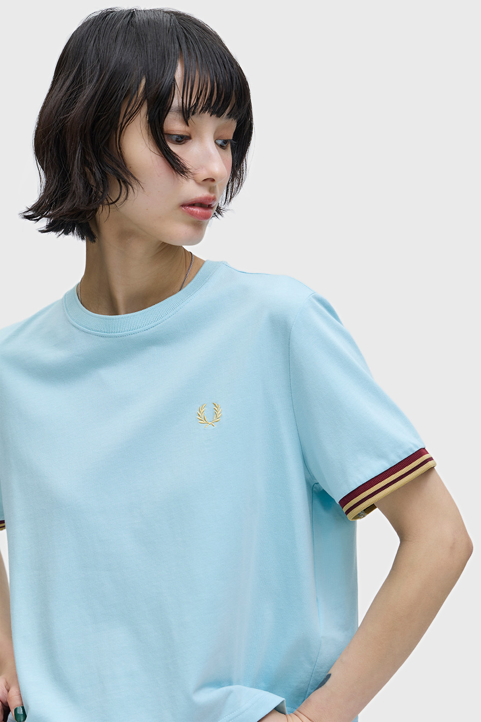 コットン天竺を使用したTシャツ。袖口に編み立てたコントラストティッピングのリブが特徴です。