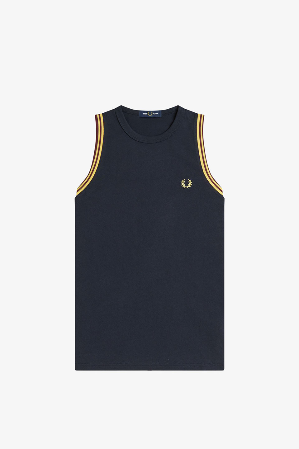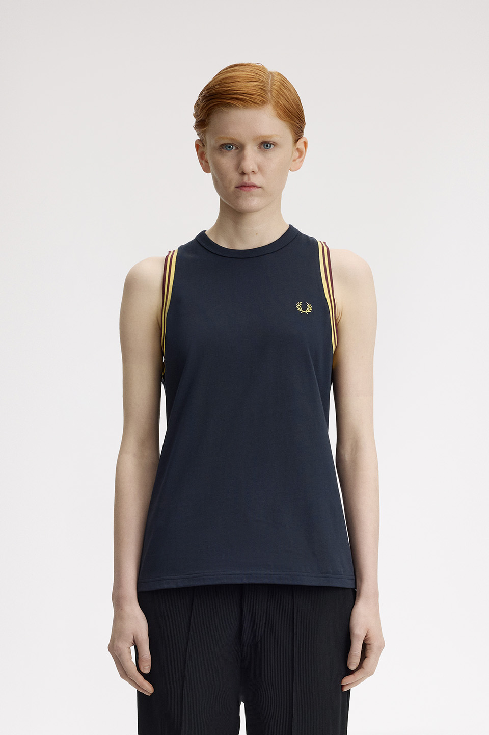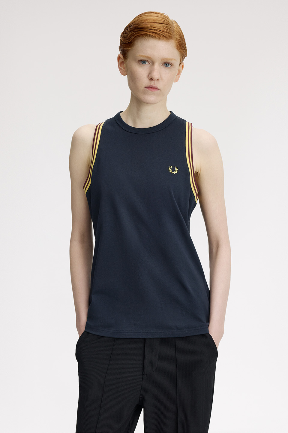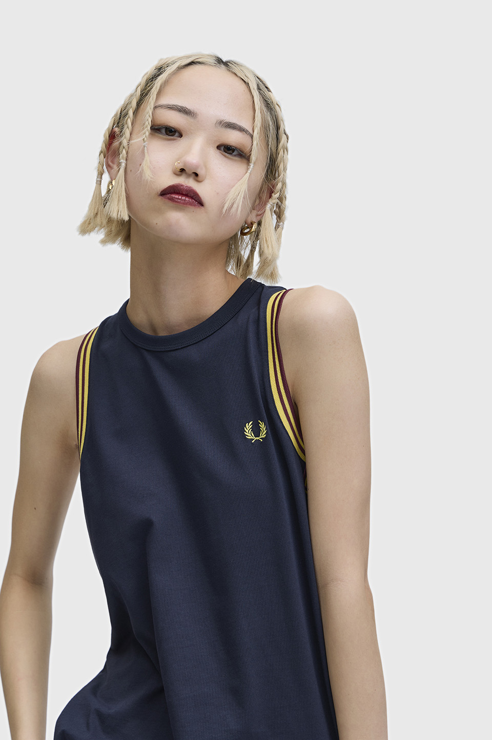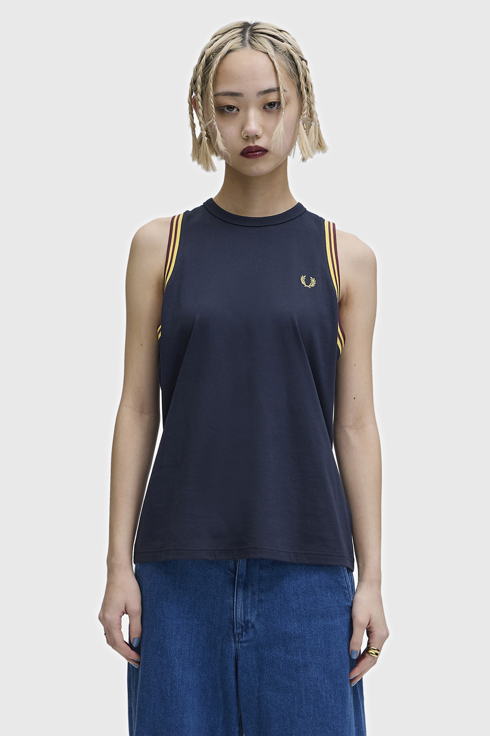 ティップラインを施したタンクトップ。深めのアームホールにティップラインが施されており、レイヤードしたスタイリングを楽しむことができます。