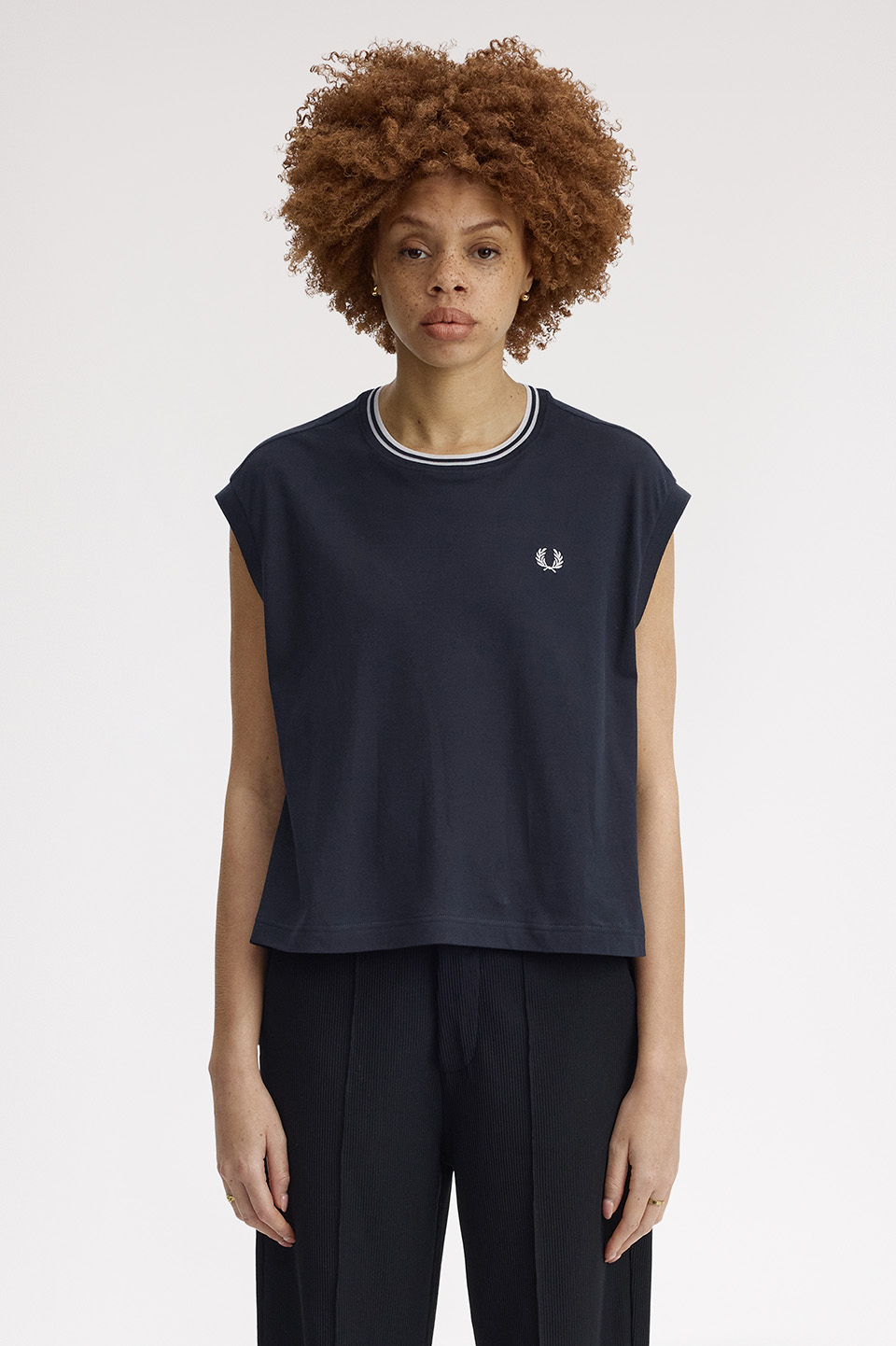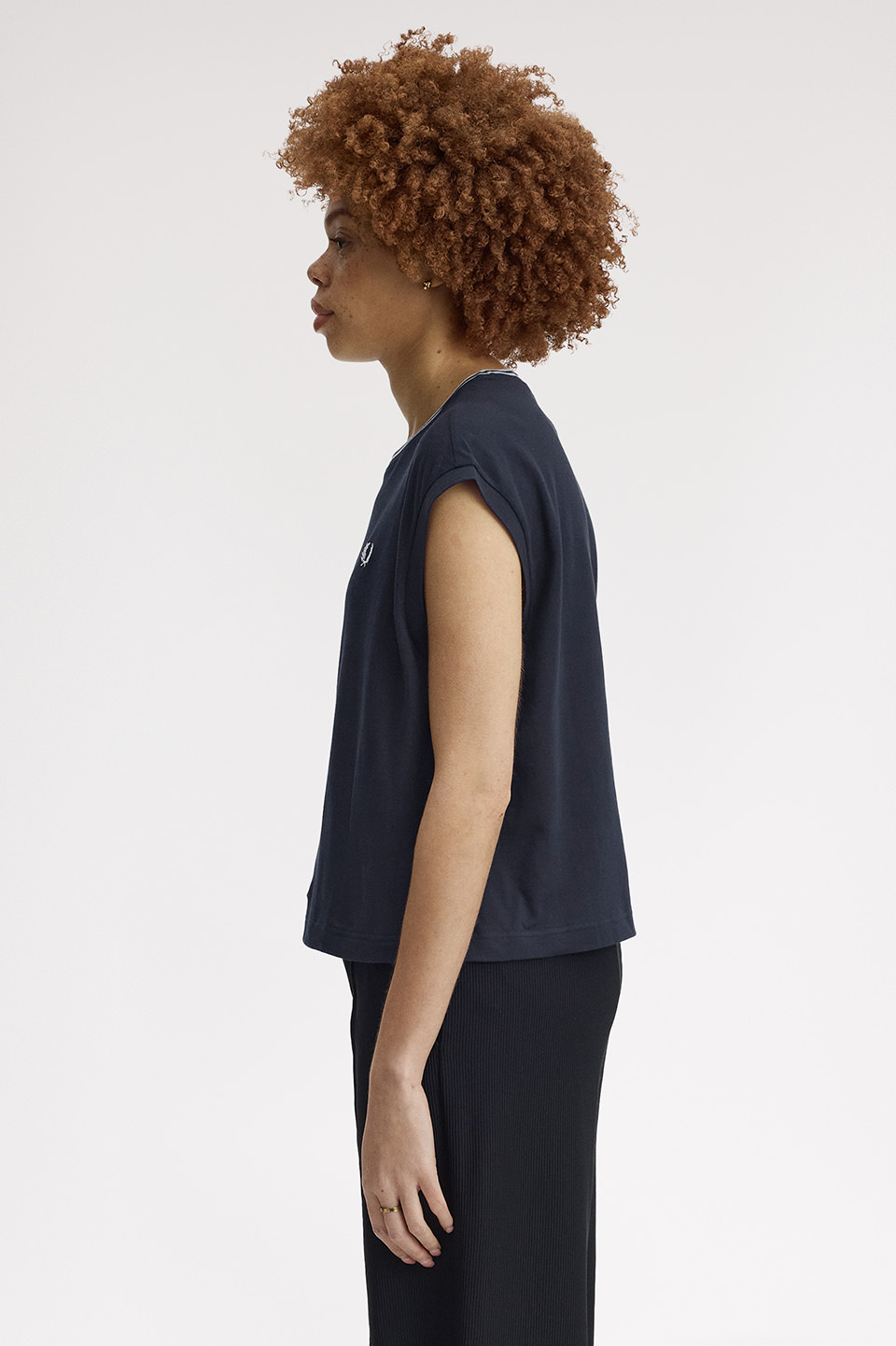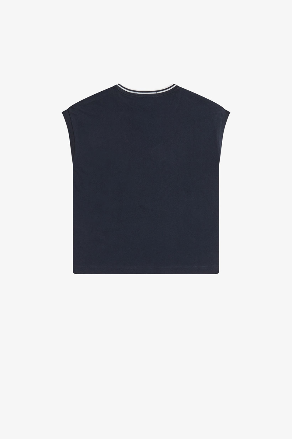 ソフトな風合いのスーピマコットンピケを使用したノースリーブトップス。シアーティッピングを襟ぐりに効かせたライトウェイトのトップスです。