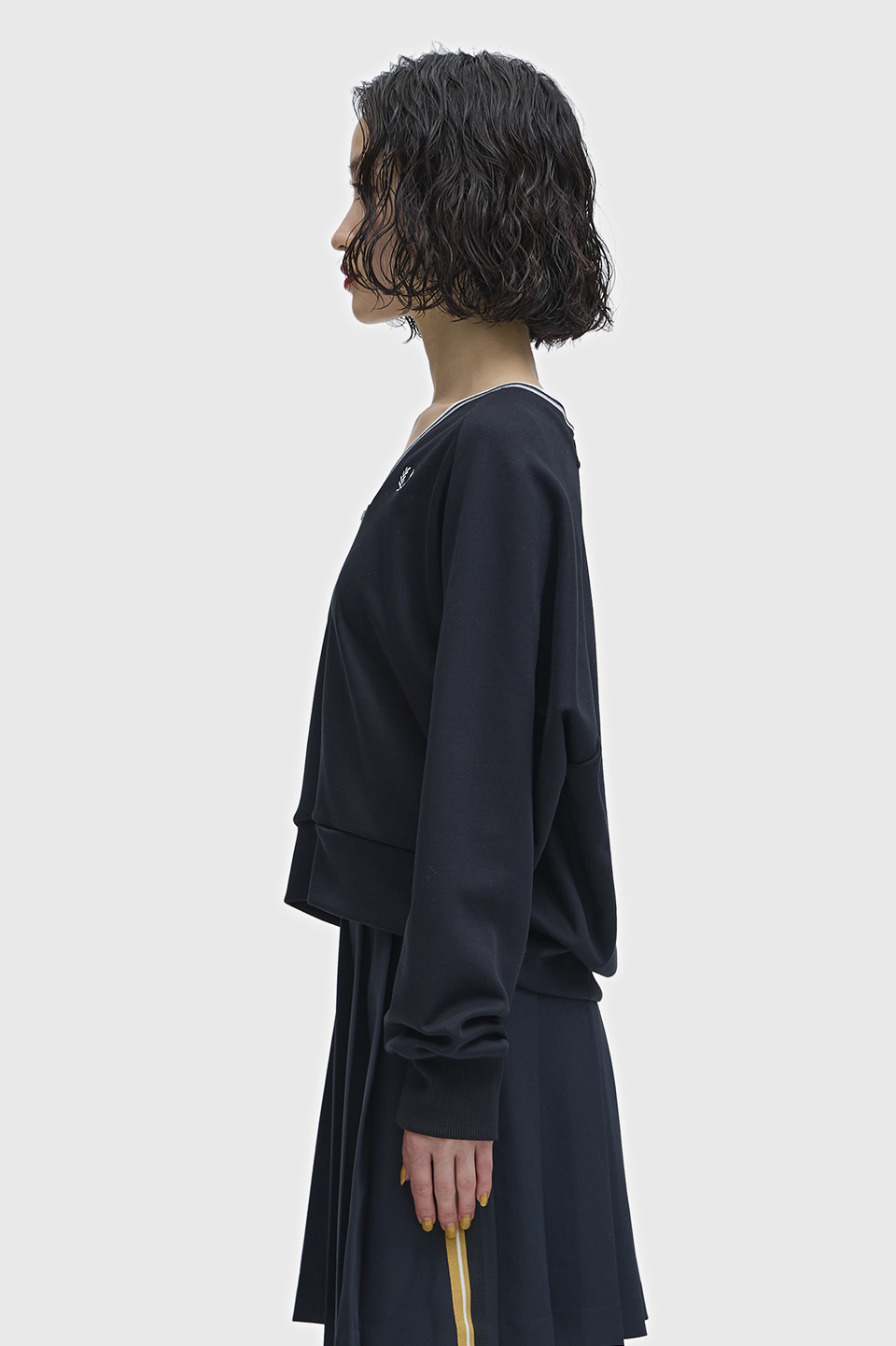 。ツインティッピングをユニークなシアー糸で表現しています。ラグランスリーブでゆったりとしたシルエットが特徴です。
