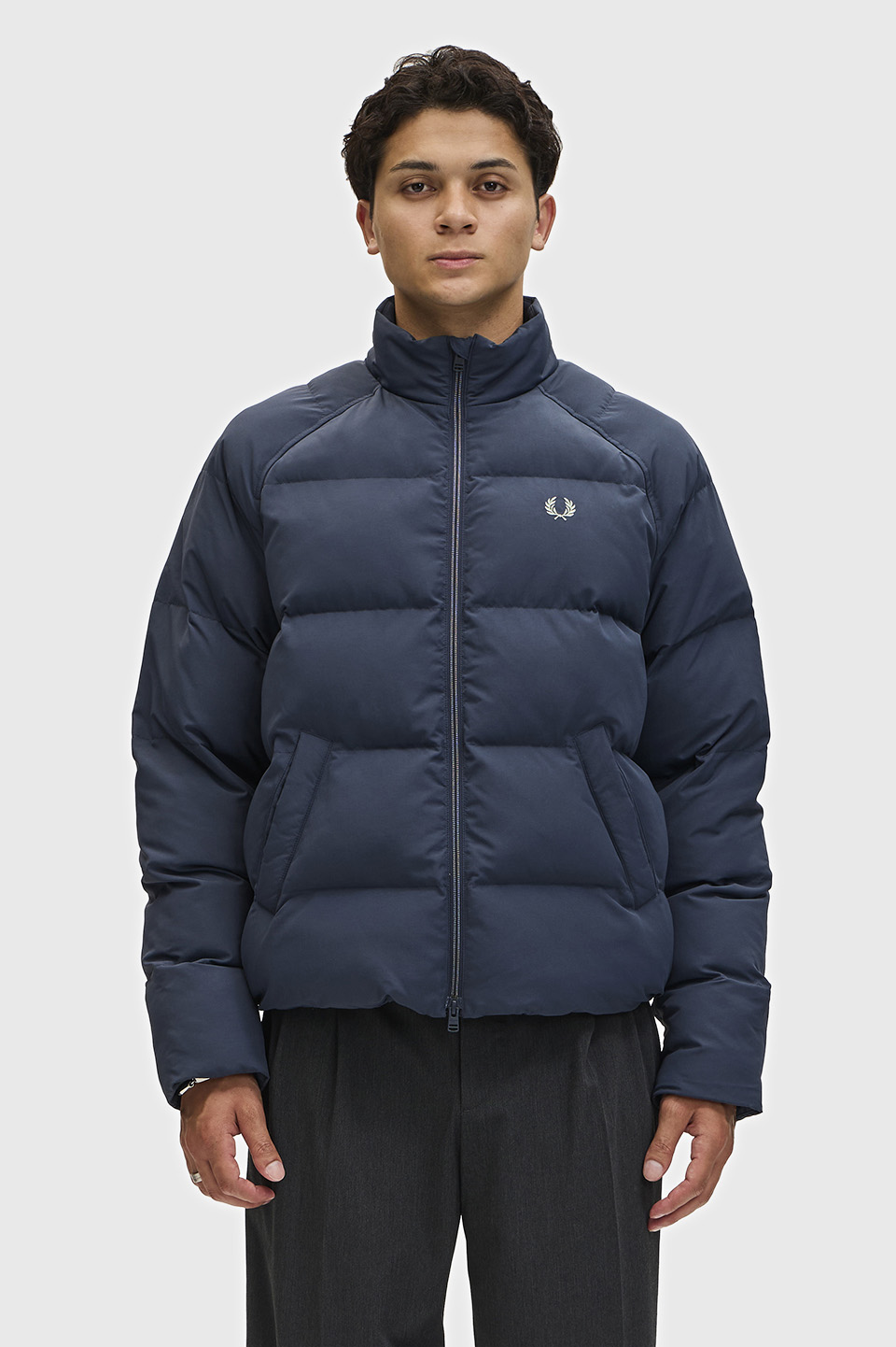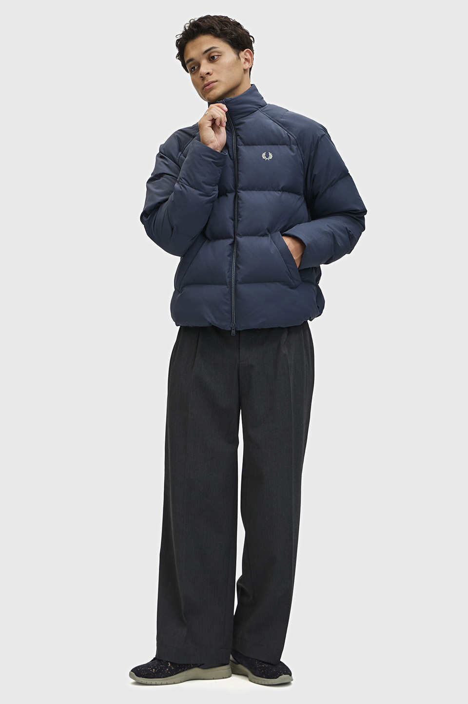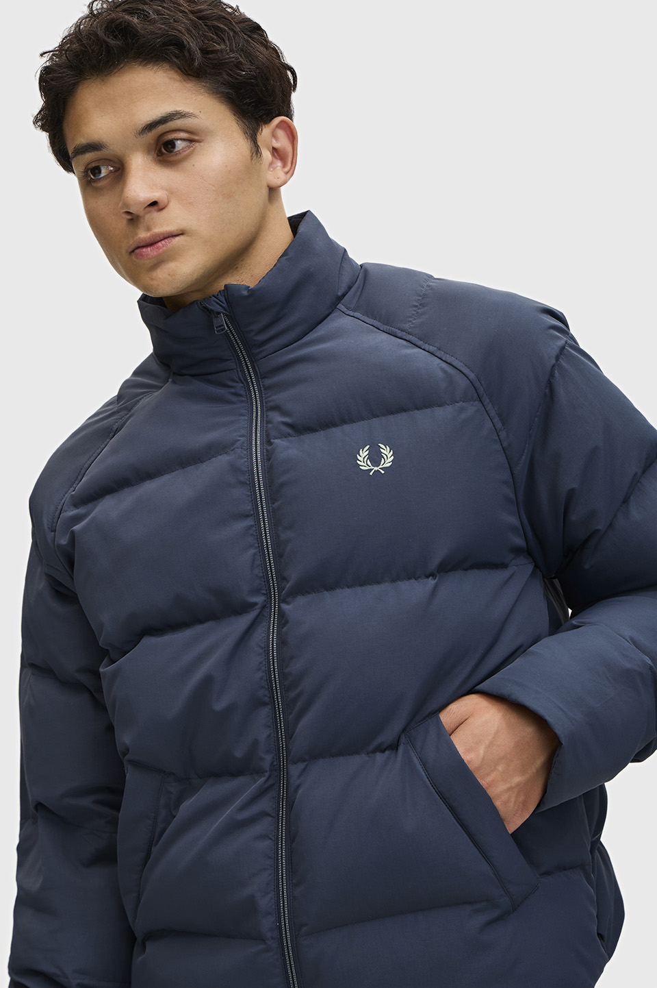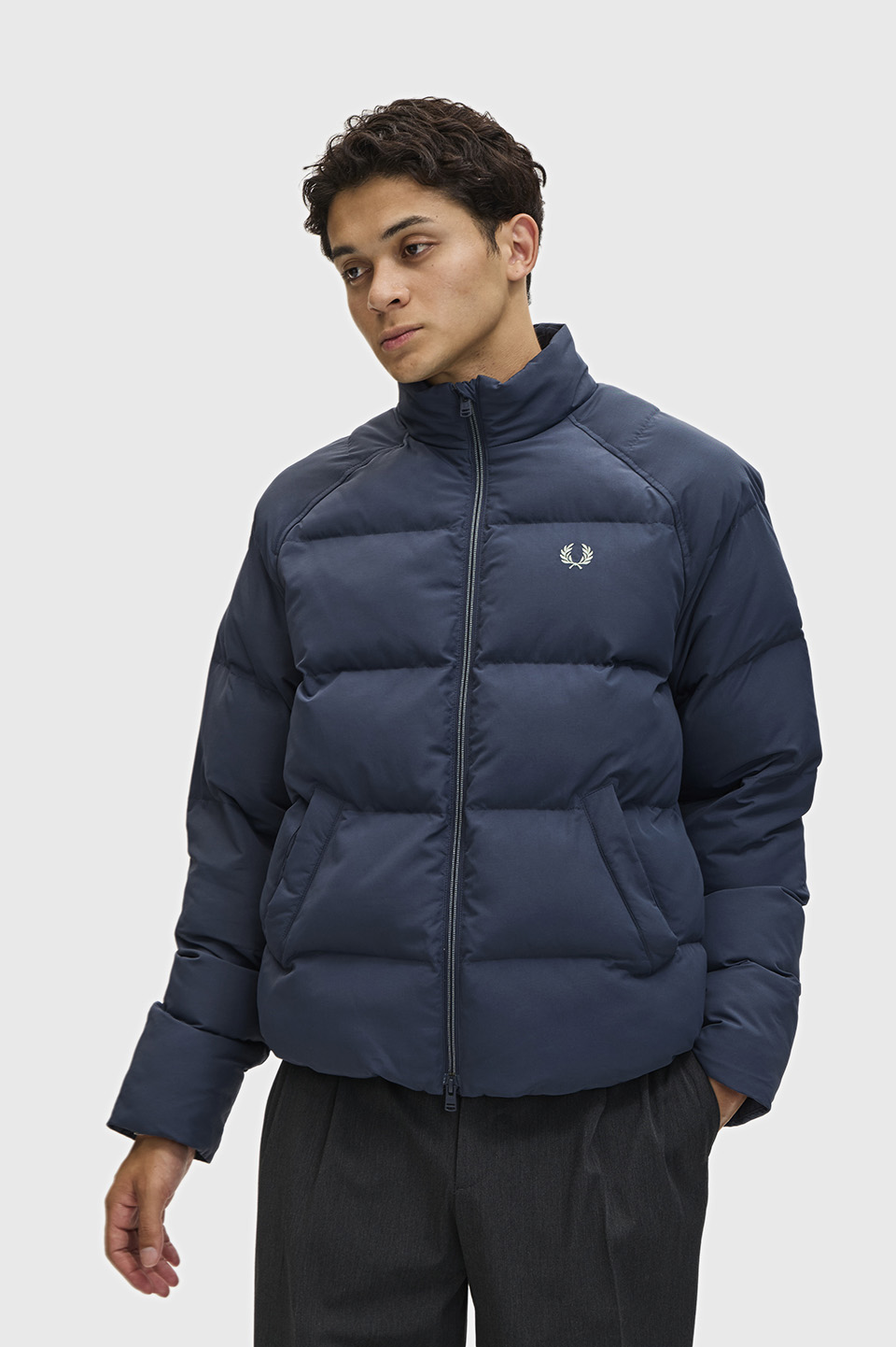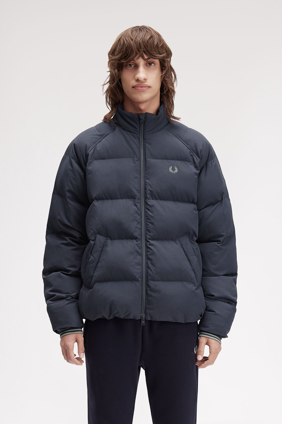 - 100%リサイクルナイロンを使用したラグランスリーブパデッドジャケット。