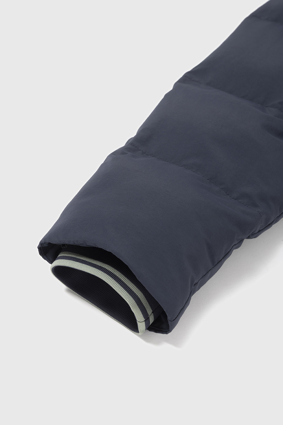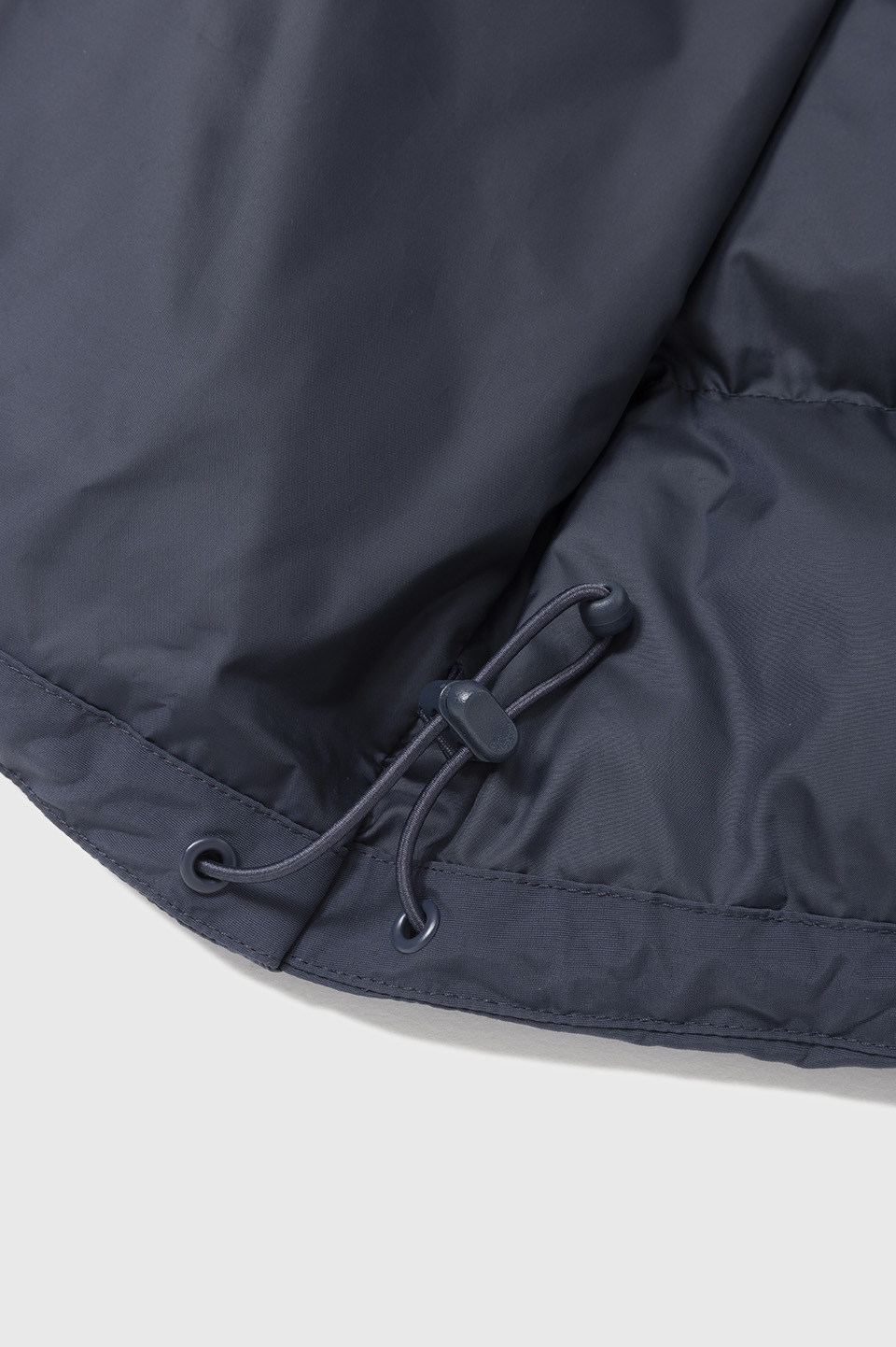 素材:本体: リサイクルナイロン100%, 裏地: ポリエステル100%, 中わた: ポリエステル100%, トリム: ポリエステル97%, ポリウレタン3%