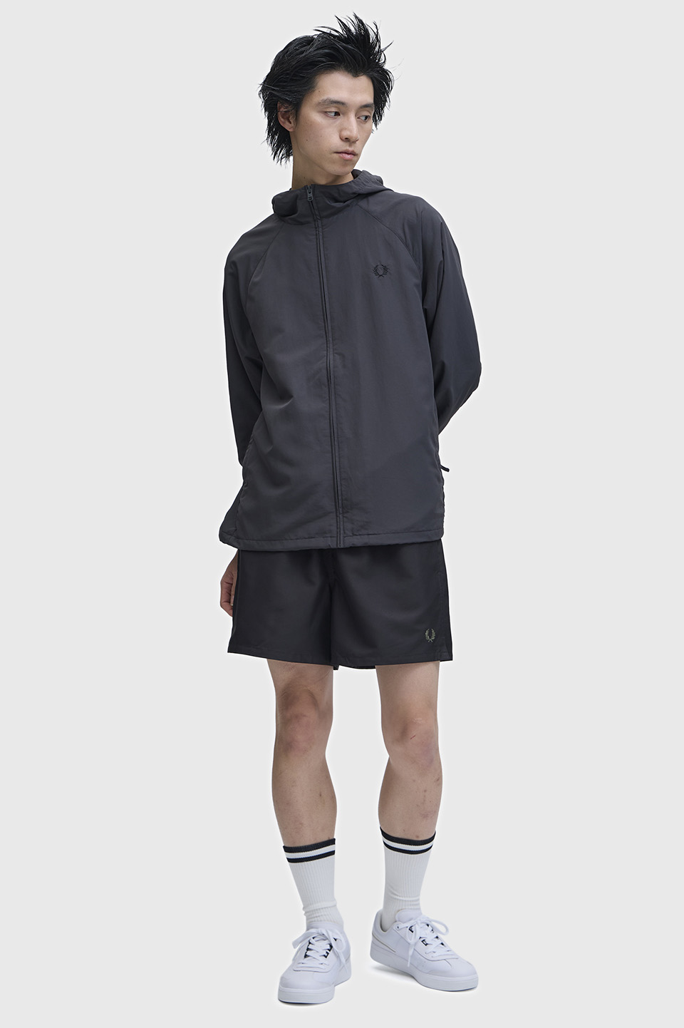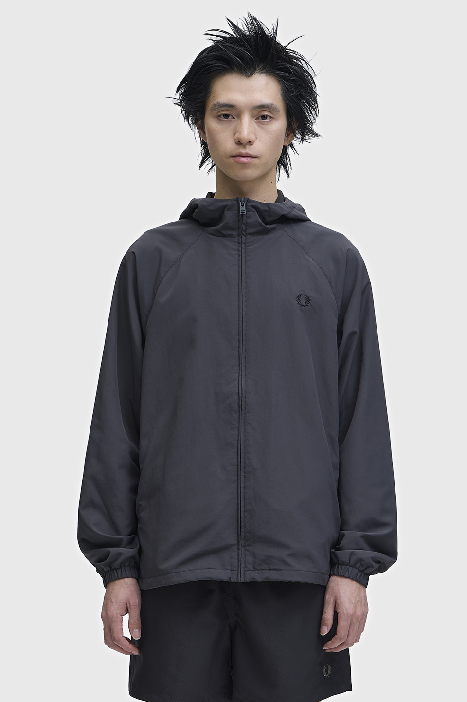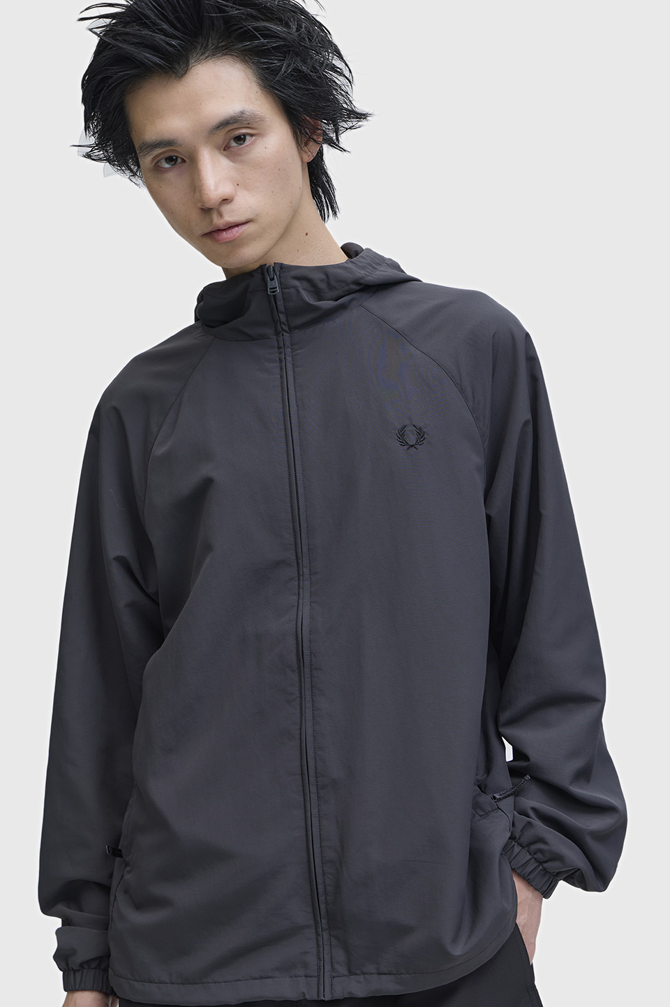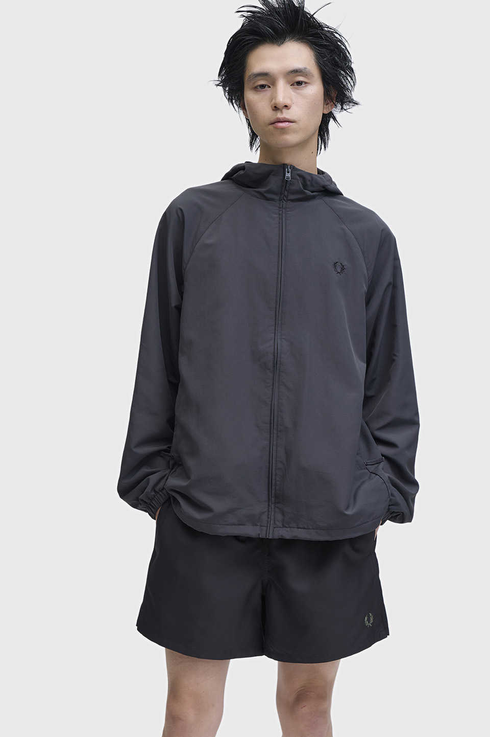100%リサイクルナイロンのタスラン素材を使用したフーデットシェルジャケット。軽量で耐久性に優れたタスランに加え、裏地は速乾性の高いメッシュ素材を使用しています。