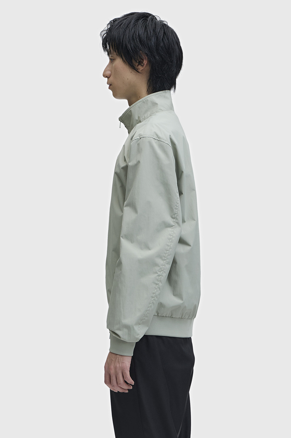 ダブルファスナー。スタンドカラー。衿裏にティップライン。裾・袖リブ。