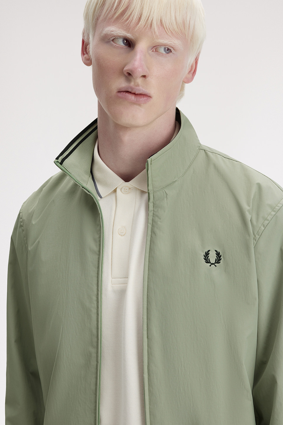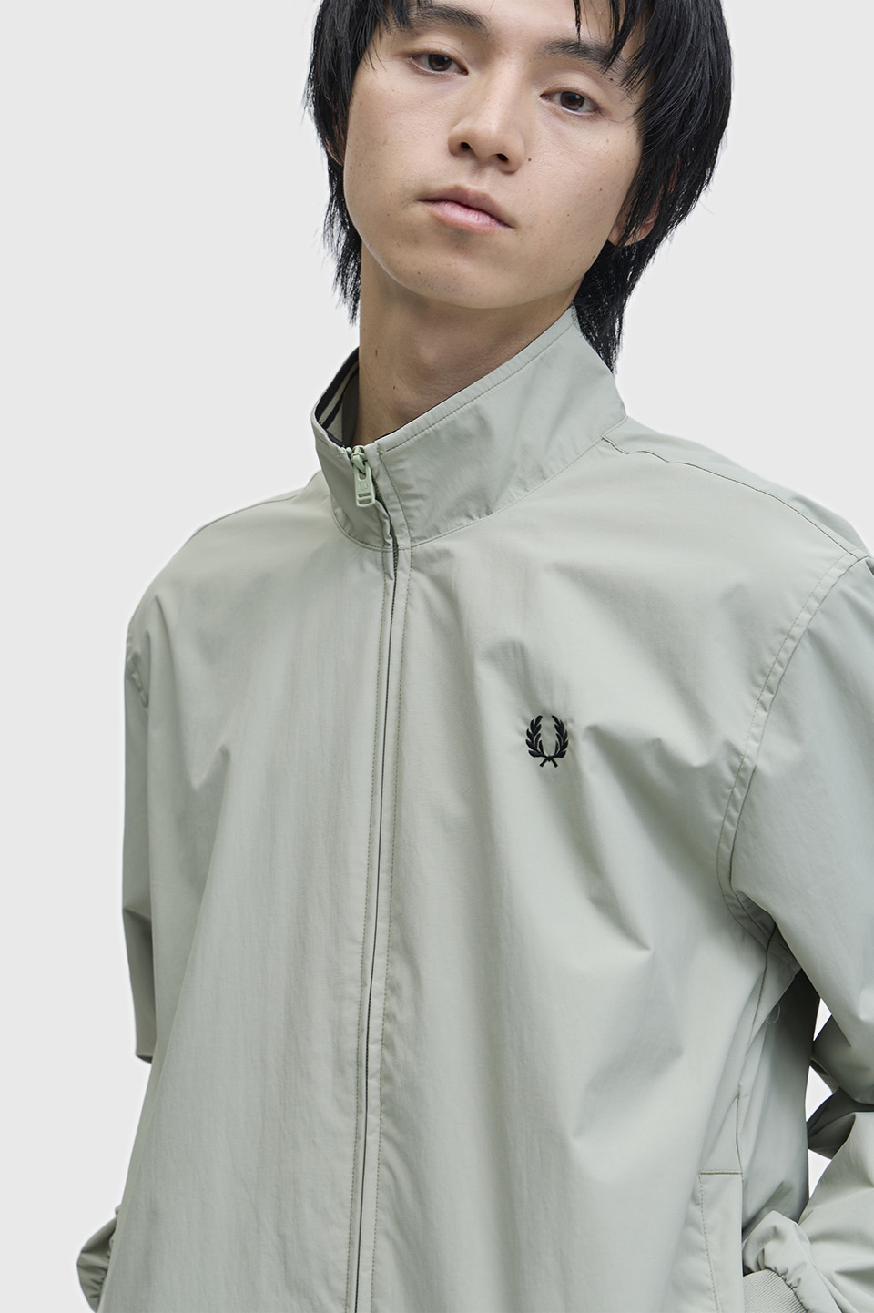 - リサイクルナイロンを使用したジップアップジャケット。ライナーにはメッシュ調の素材を使用しています。またネックの内側のリブにはフレッドペリーのシグニチャーであるティップラインを施しています。男女問わず着られるユニセックスデザインです。