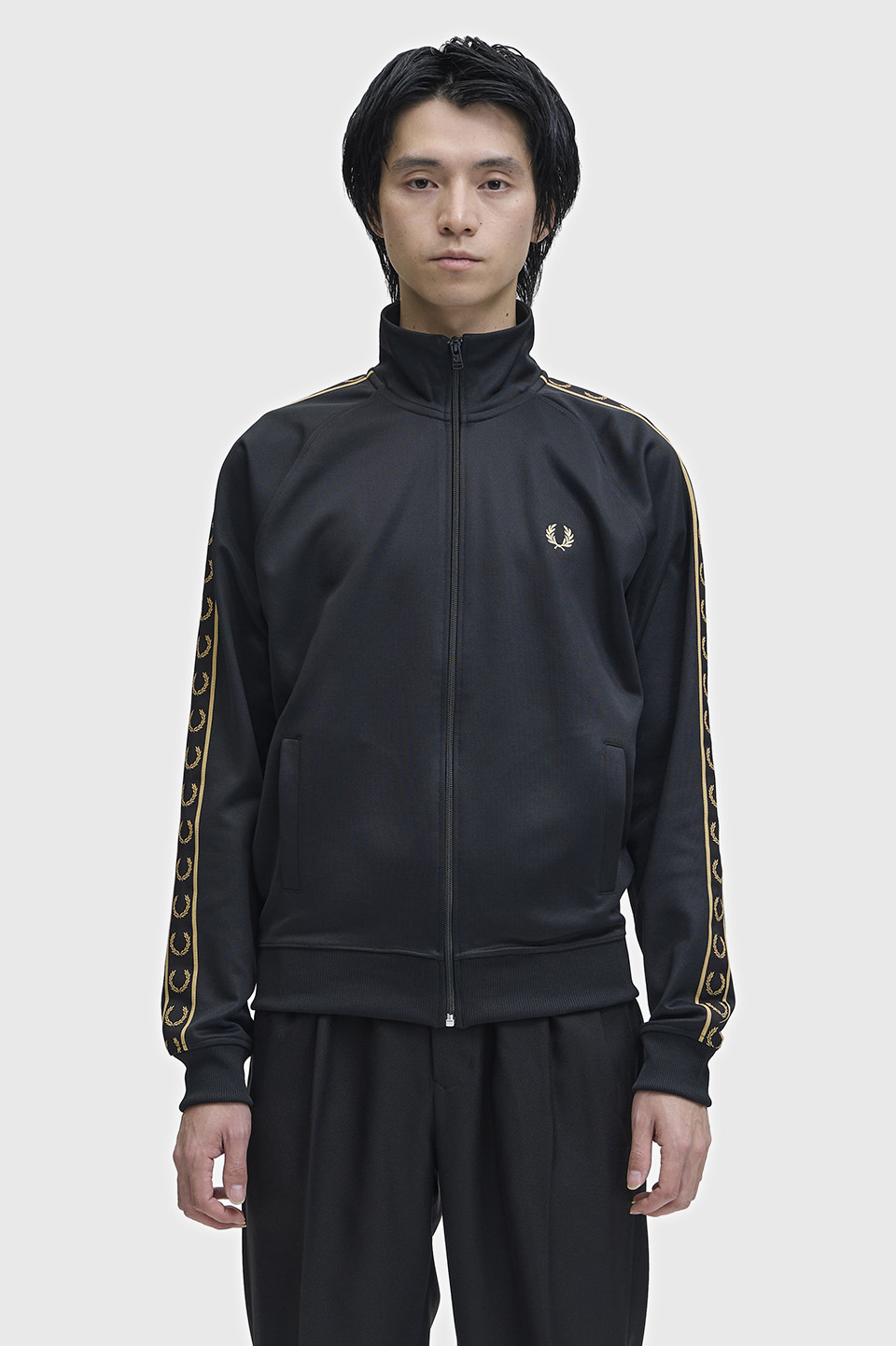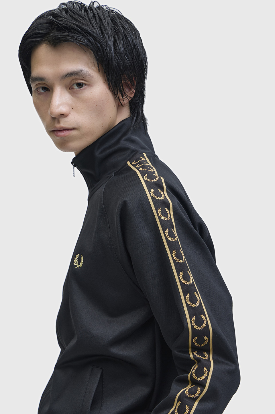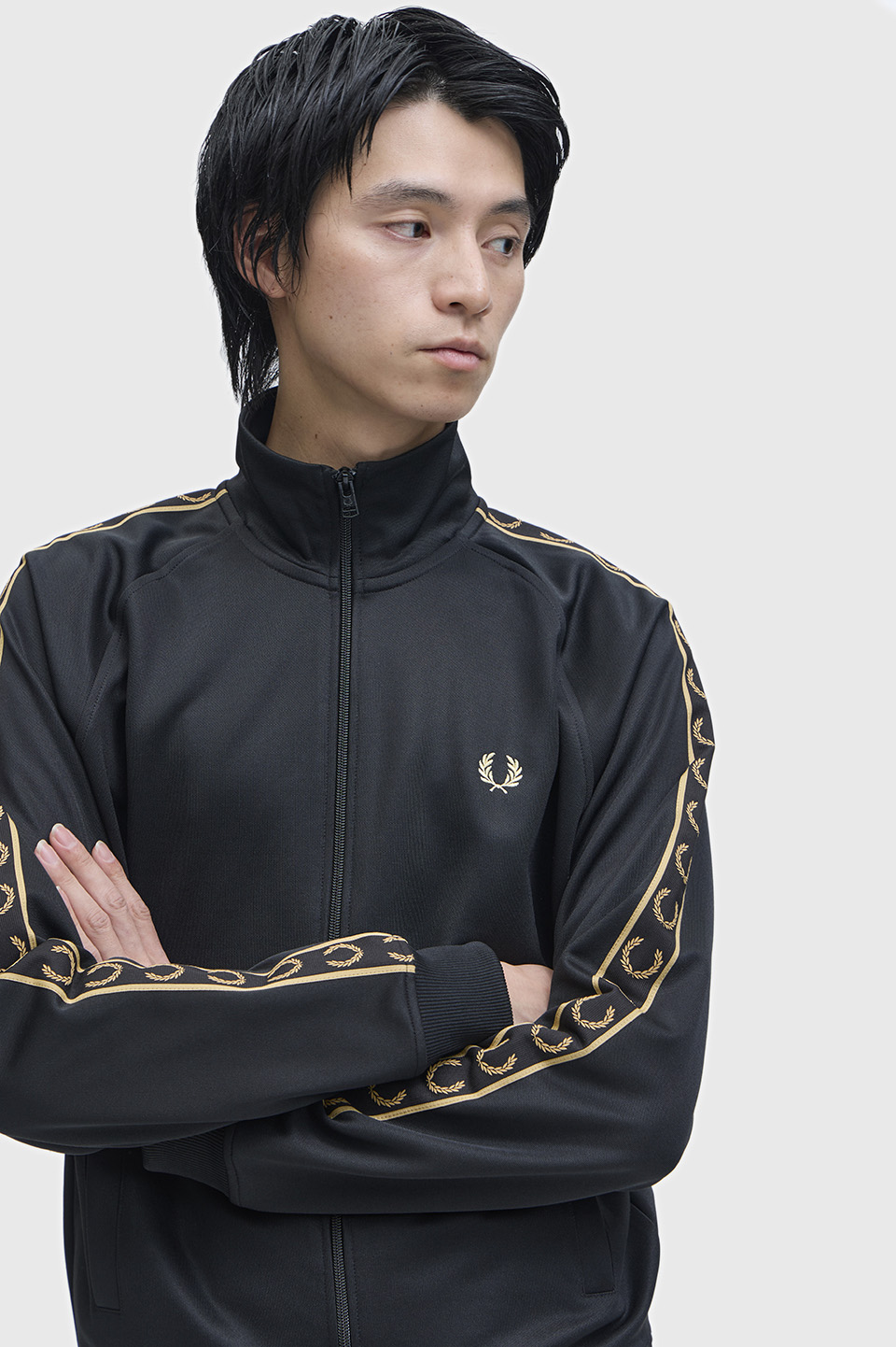 - スポーツウェアのアイコンである、トラックジャケット。フレッドペリーの1枚は、オリジナルの特徴をすべて受け継いでいます。 光沢のあるトリコット素材を使用し、エナメルコーティングされたジップと、コントラストをきかせたローレルリースのトラックテープを袖にあしらって仕上げました。