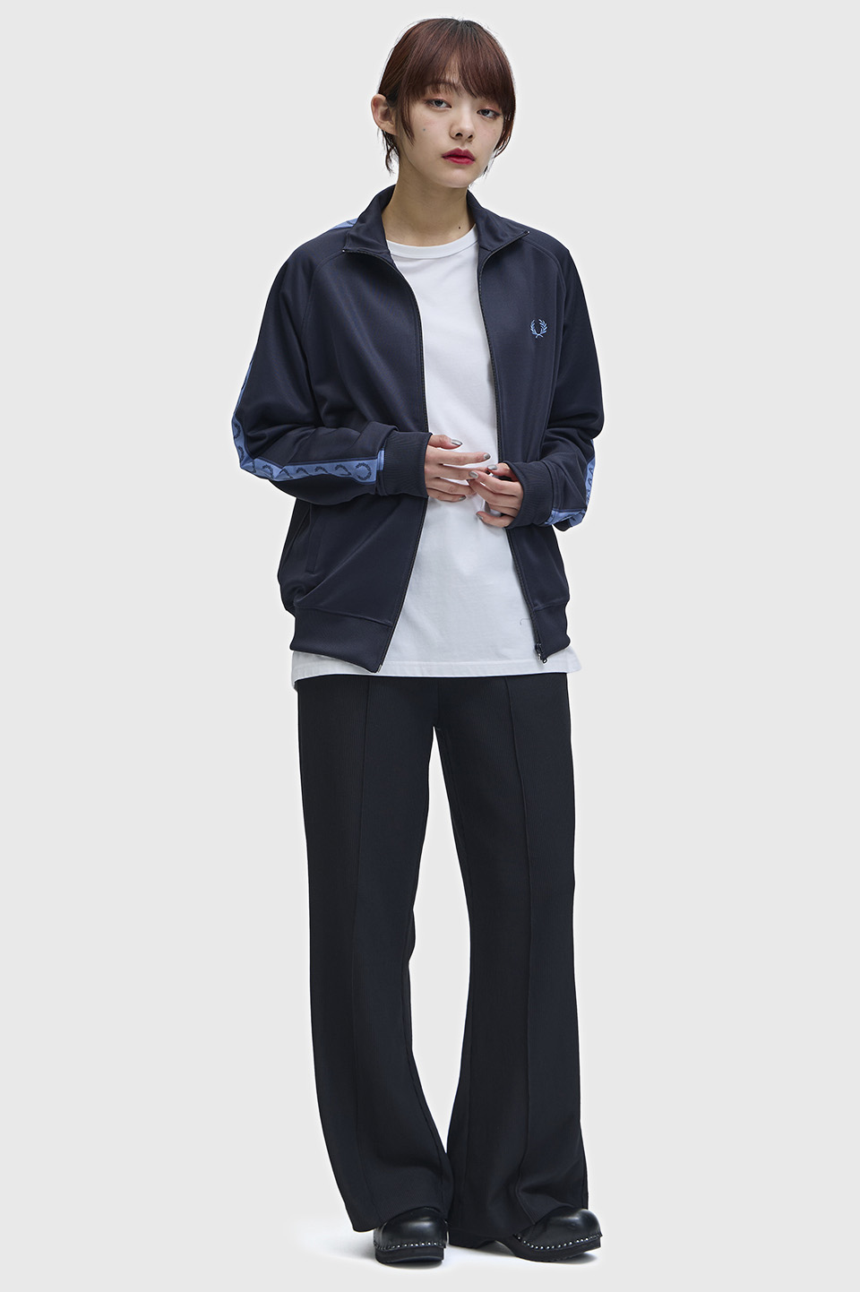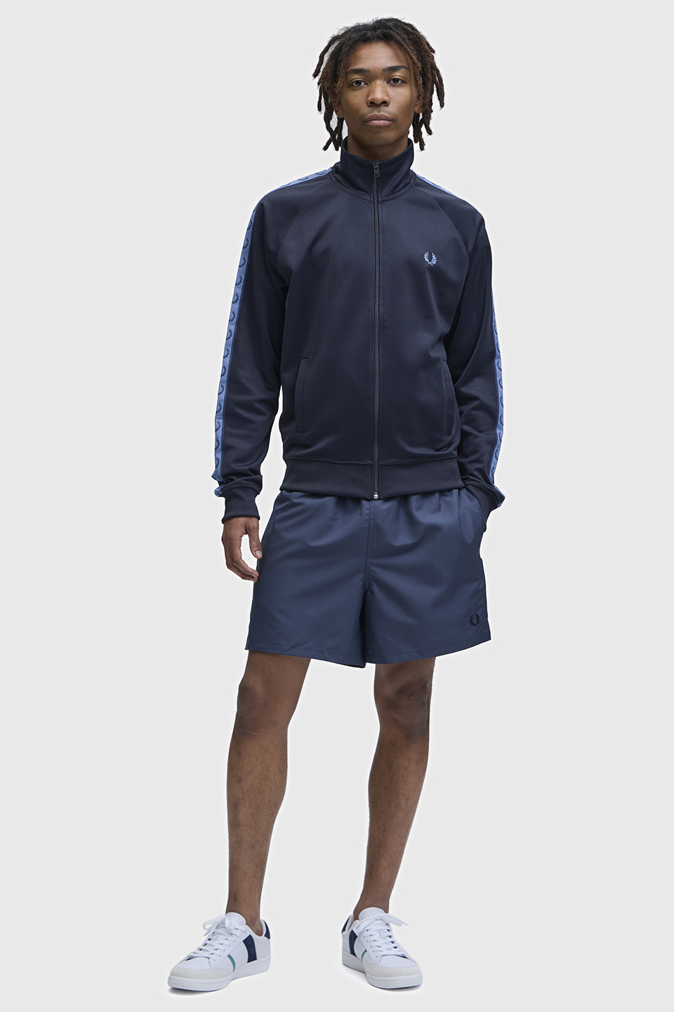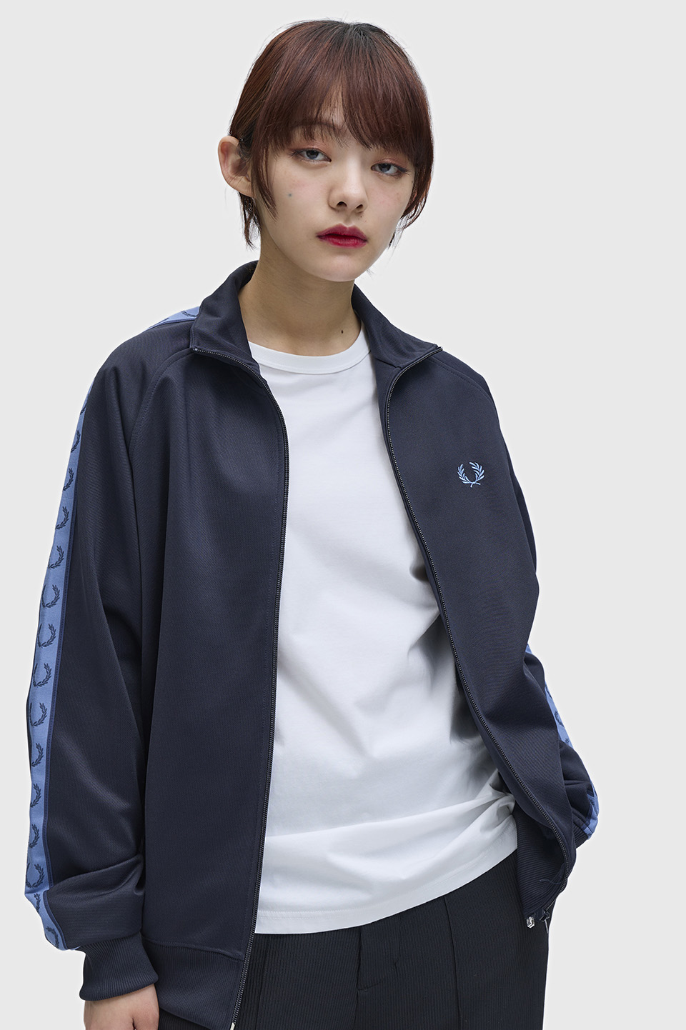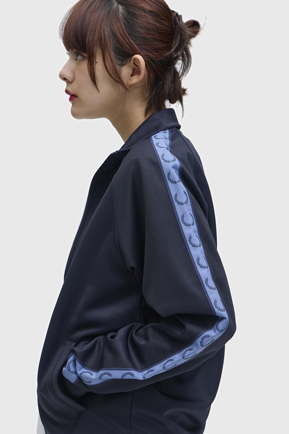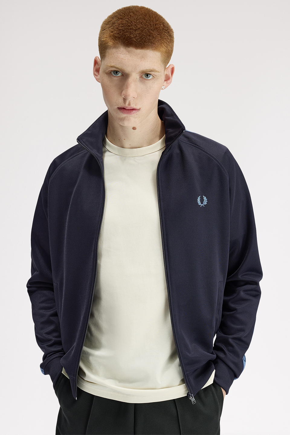 - スポーツウェアのアイコンである、トラックジャケット。フレッドペリーの1枚は、オリジナルの特徴をすべて受け継いでいます。 光沢のあるトリコット素材を使用し、エナメルコーティングされたジップと、コントラストをきかせたローレルリースのトラックテープを袖にあしらって仕上げました。