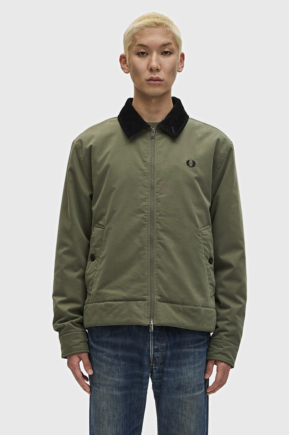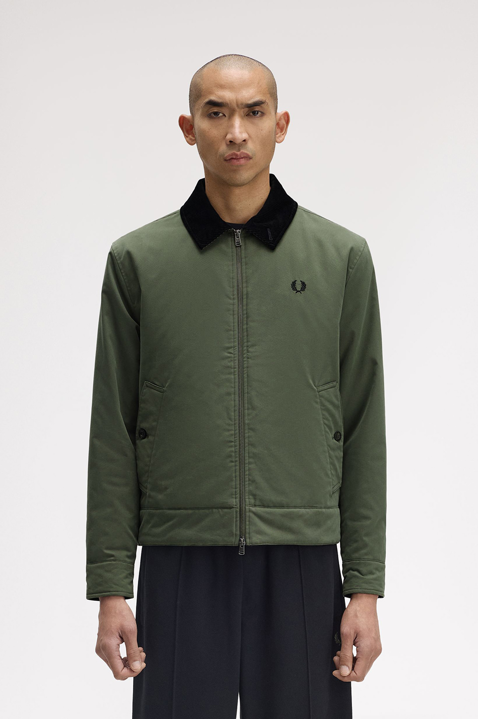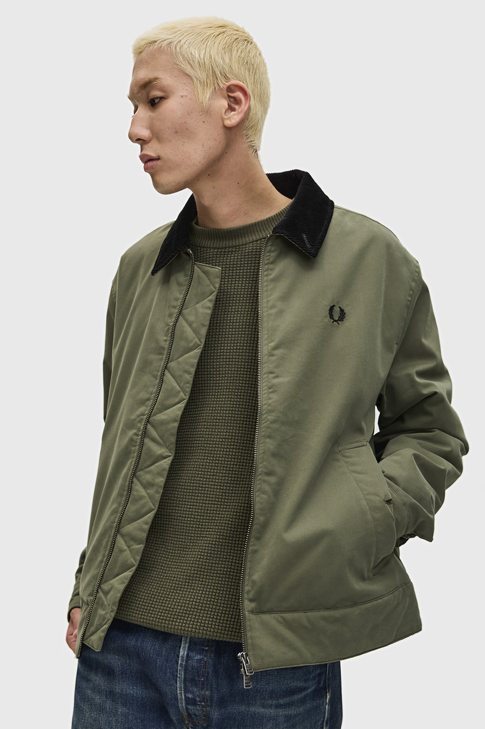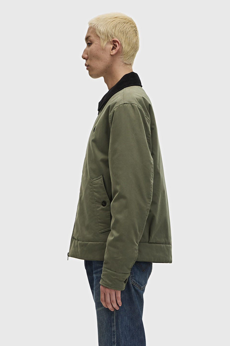 。 コットンポリエステルのキャンバスは上品な光沢が有り、微起毛されソフトなタッチです。 衿や袖口、ポケット口や裾口にコーデュロイで補強されています。