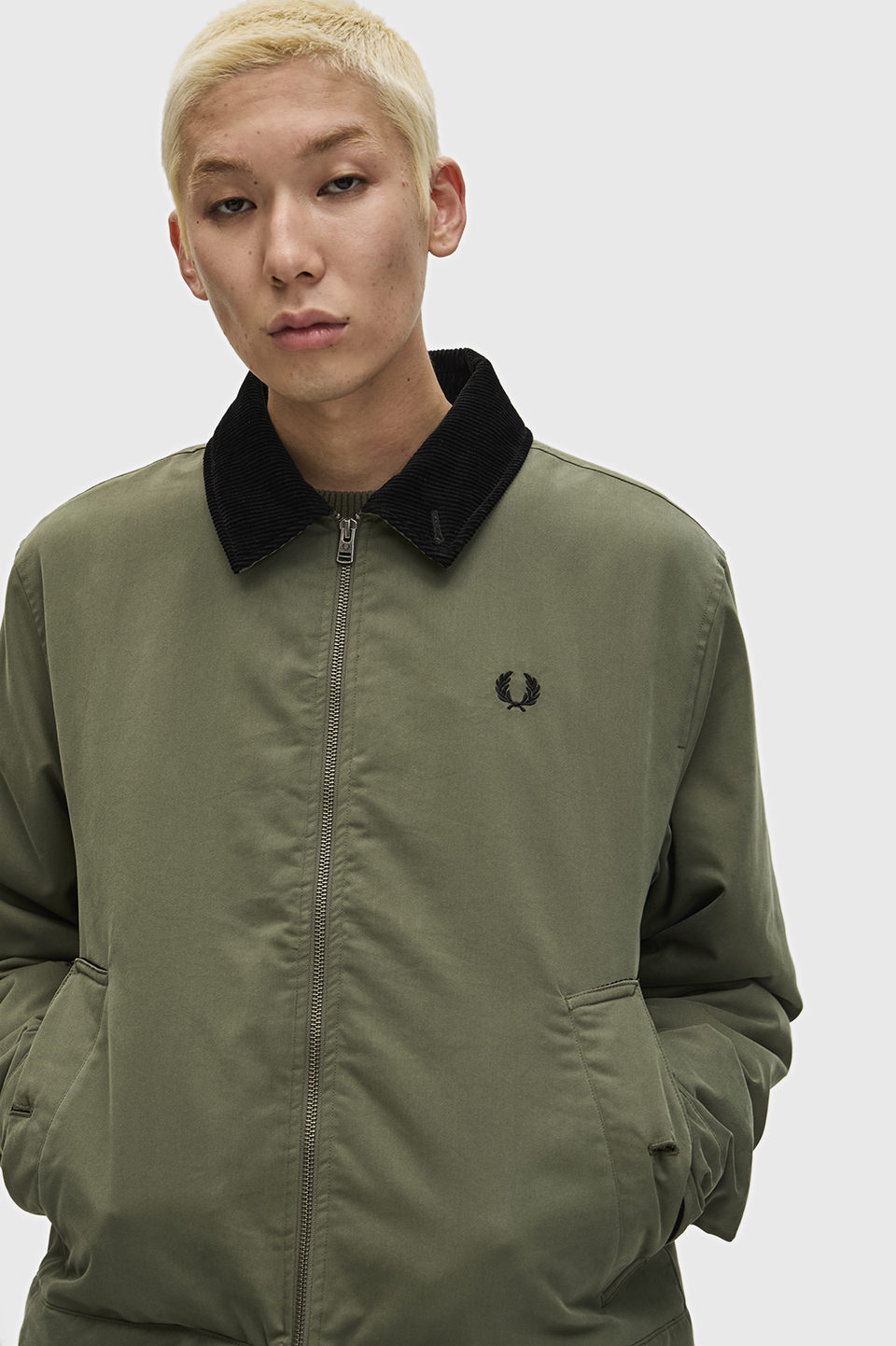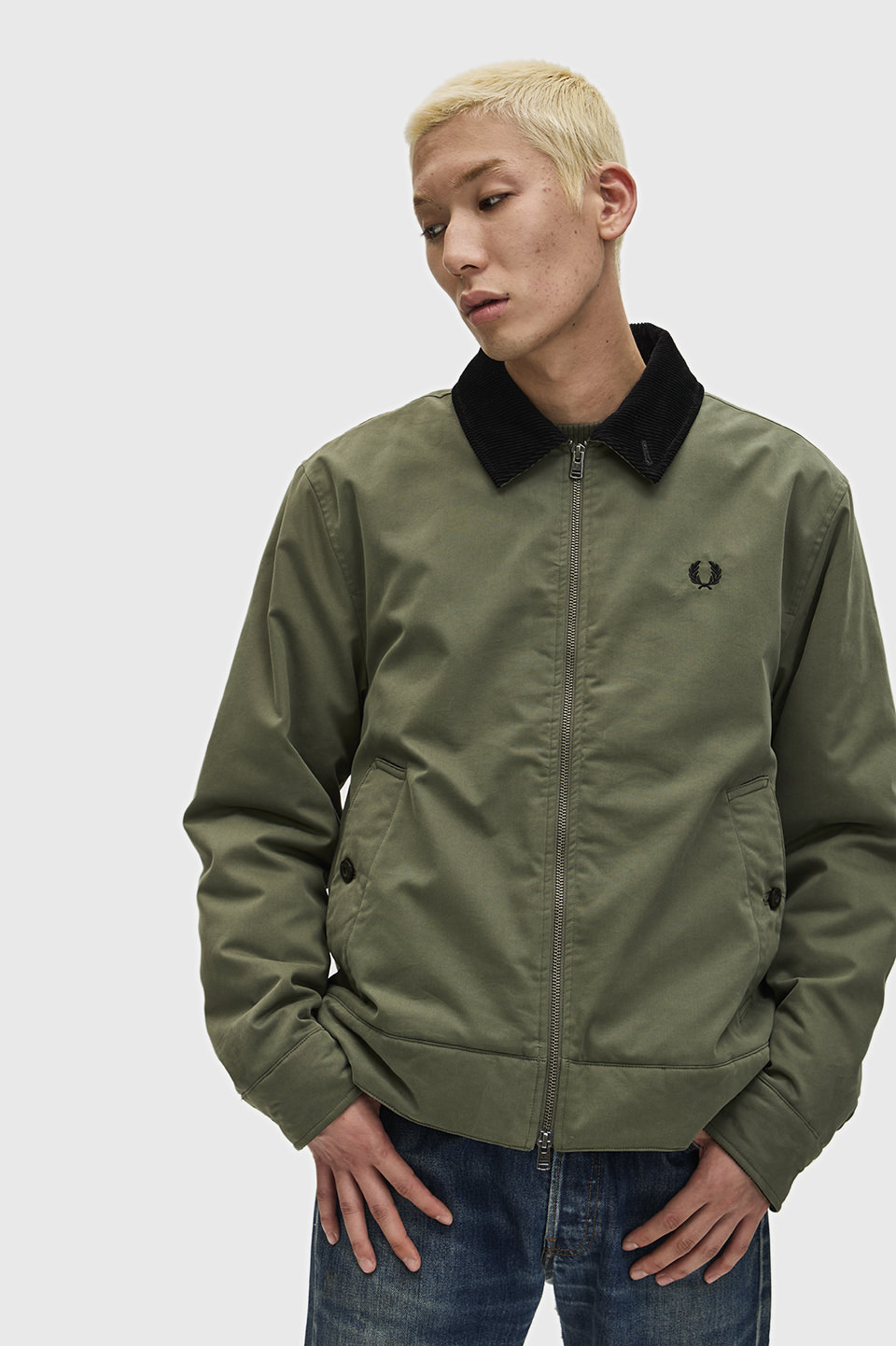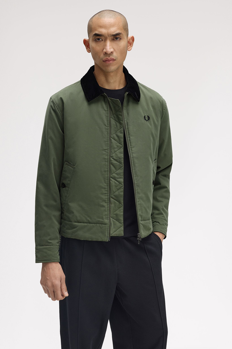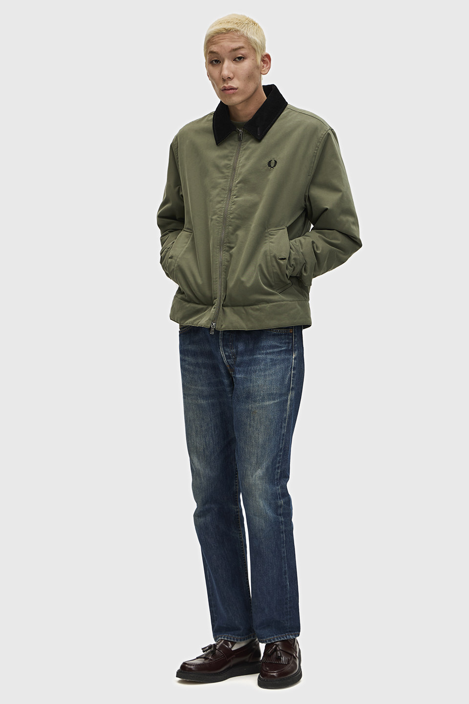 。 コットンポリエステルのキャンバスは上品な光沢が有り、微起毛されソフトなタッチです。 衿や袖口、ポケット口や裾口にコーデュロイで補強されています。