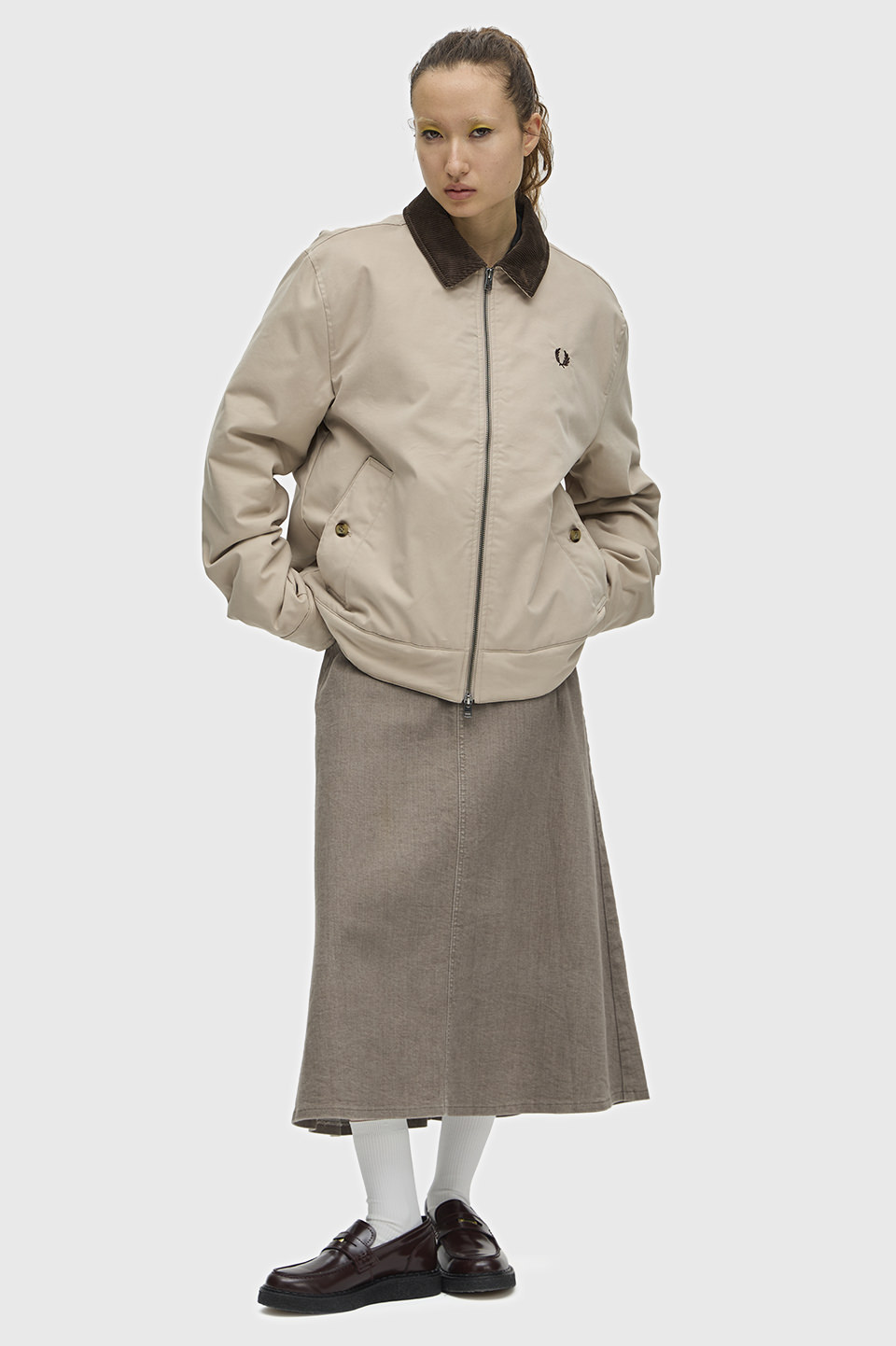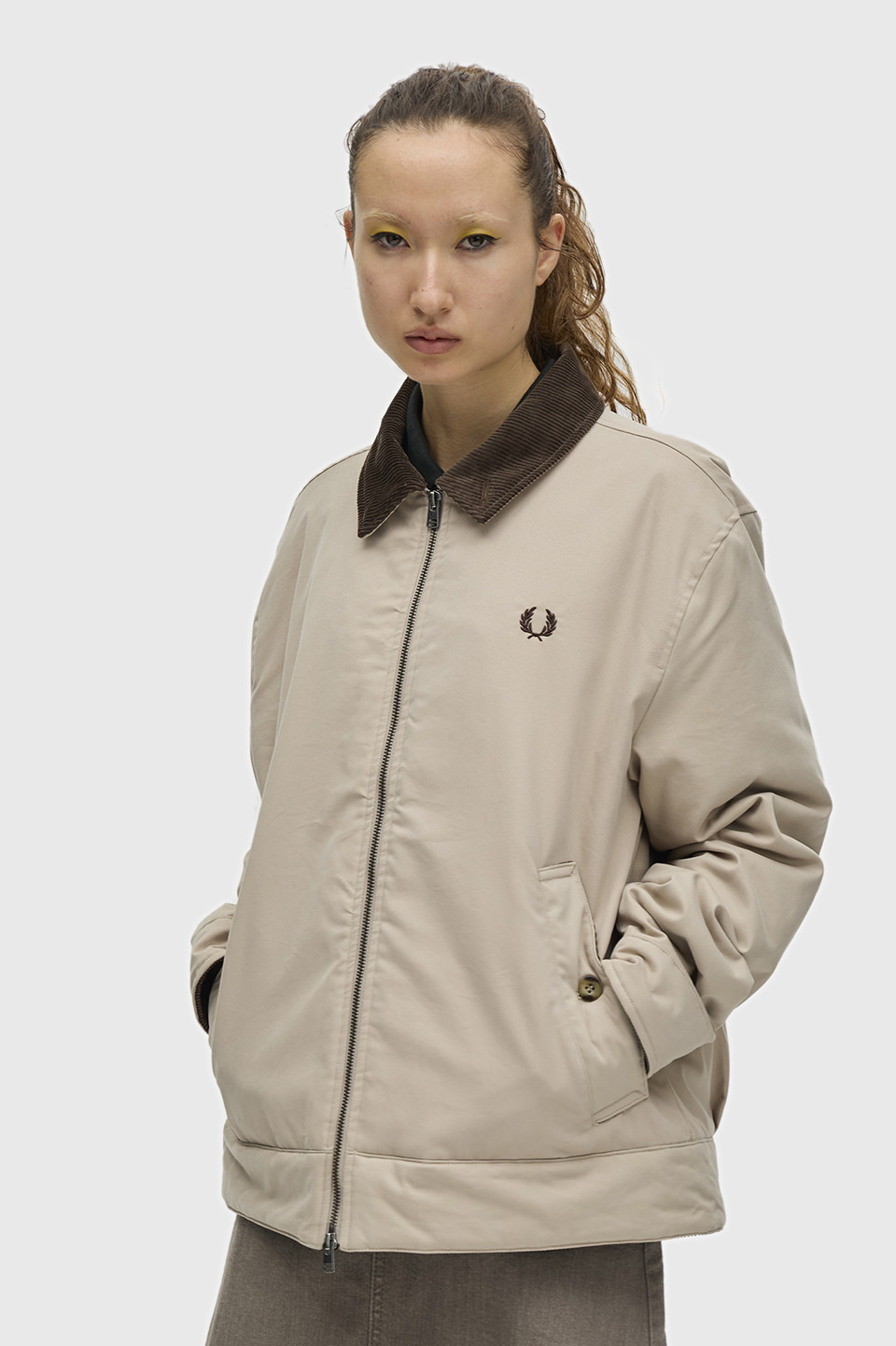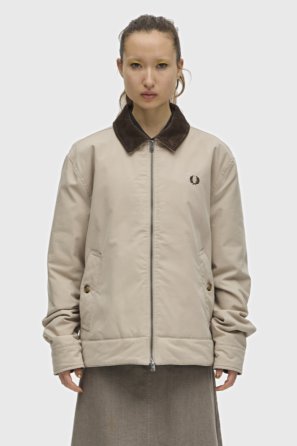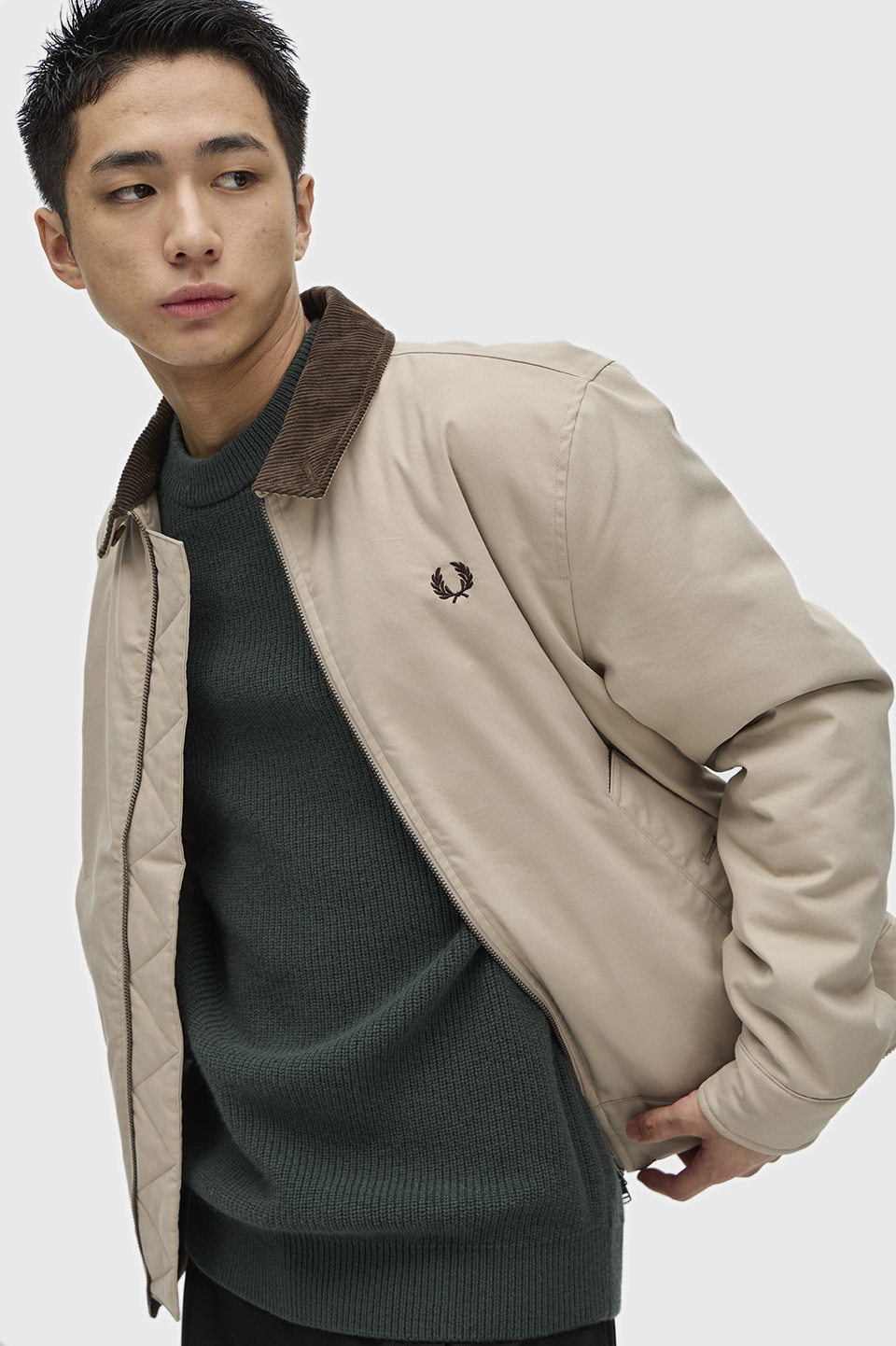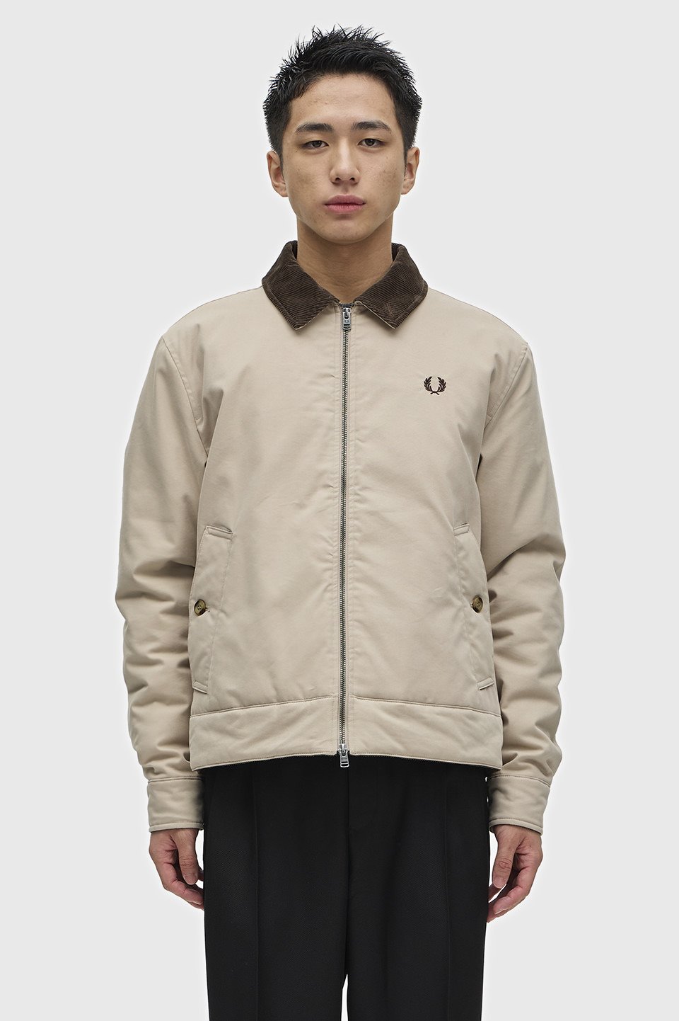 コットンポリエステルを使ったカバンジャケット。 コットンポリエステルのキャンバスは上品な光沢が有り、微起毛されソフトなタッチです。 衿や袖口、ポケット口や裾口にコーデュロイで補強されています。