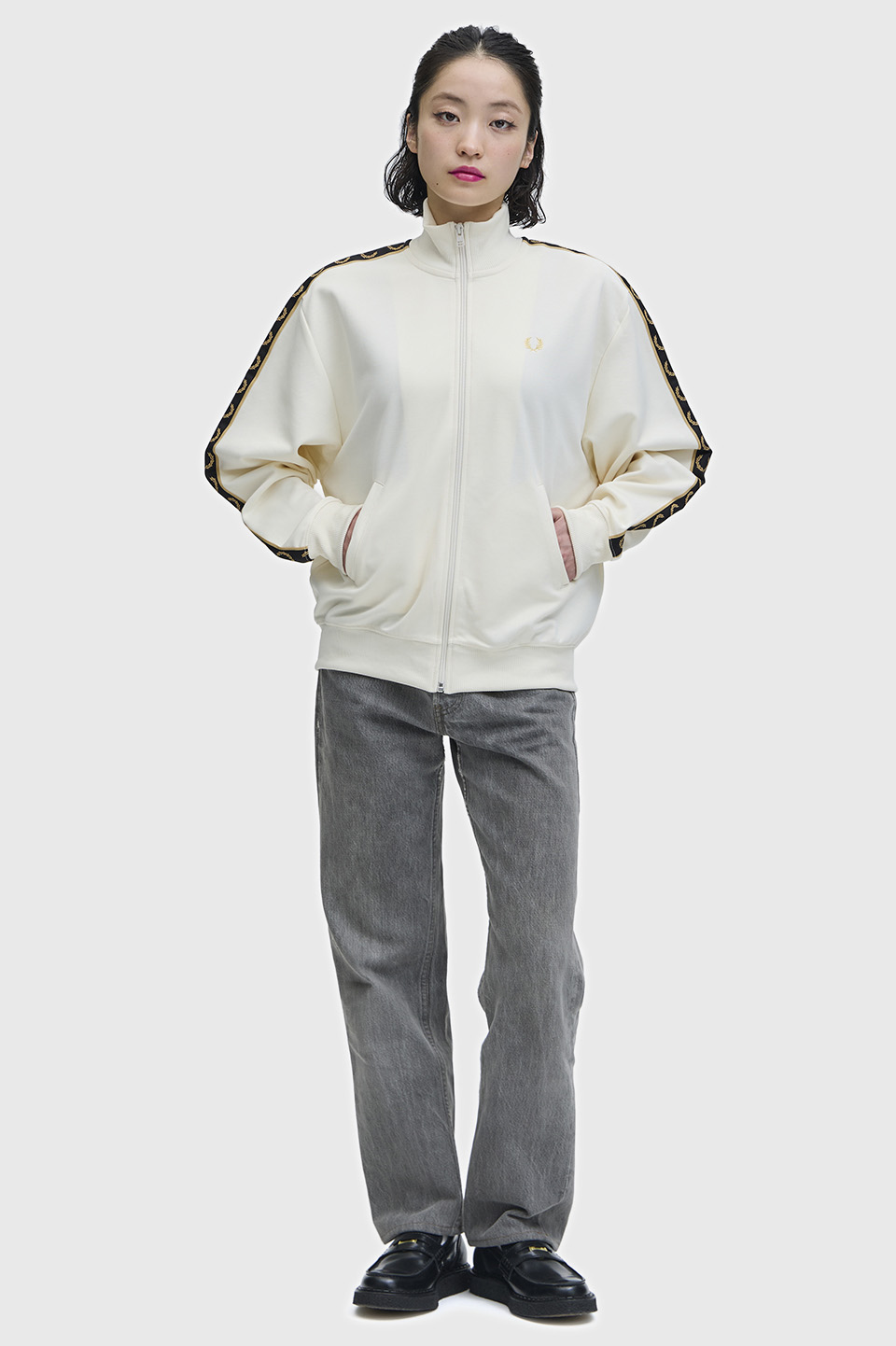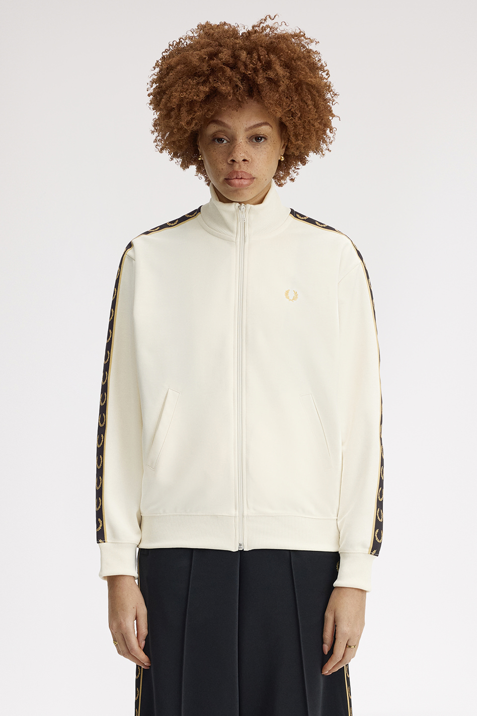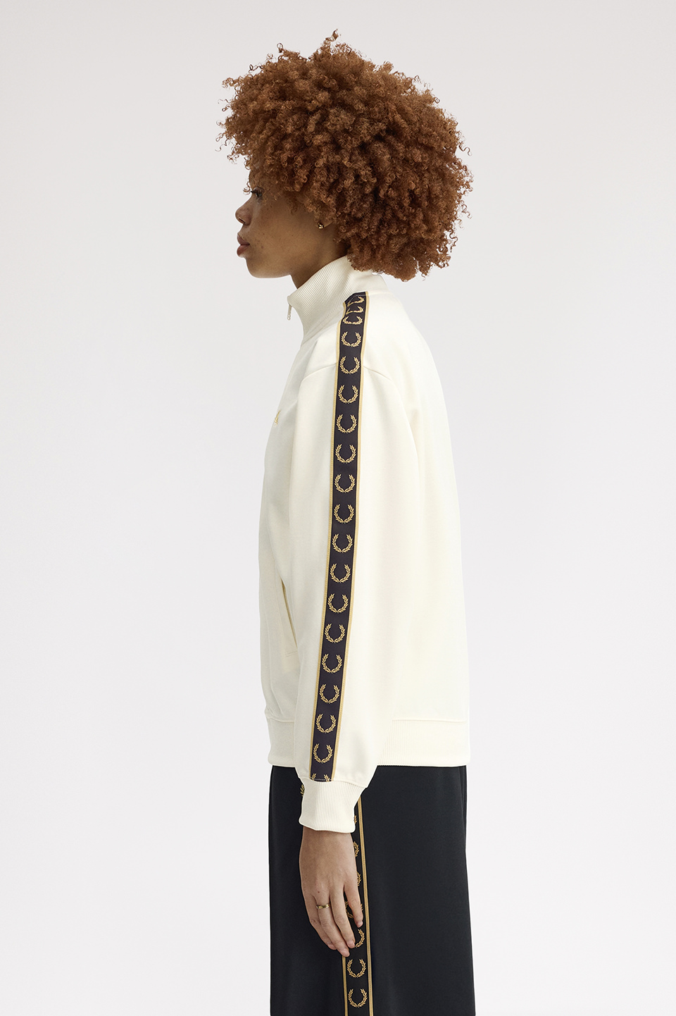 - クラシックトリコットを使用した新しいウィメンズのトラックジャケット。深いアームホールとドロップショルダーが特徴で、スリーブにあしらったトラックテープがデザインのポイントです。腰回りのリブは収縮性があり、ブラウジングのスタイリングも楽しむことができます。セットアップ可能なトラックスカートのご用意もございます。