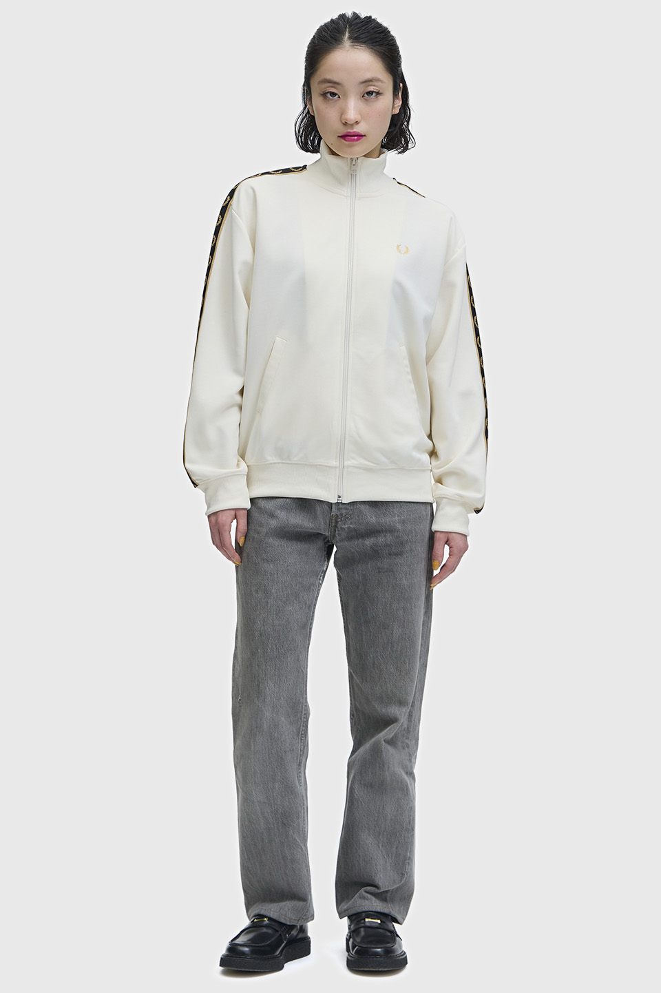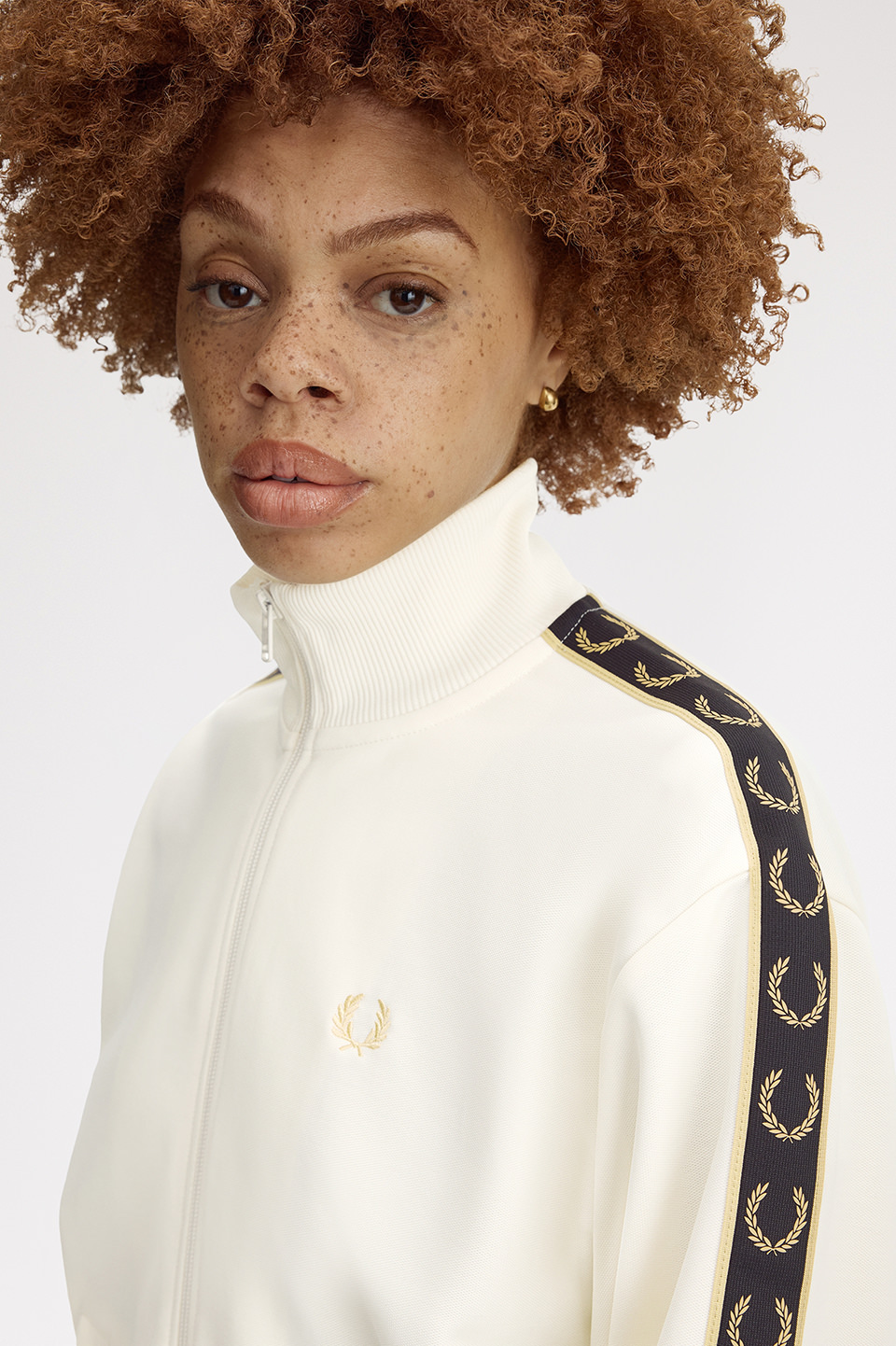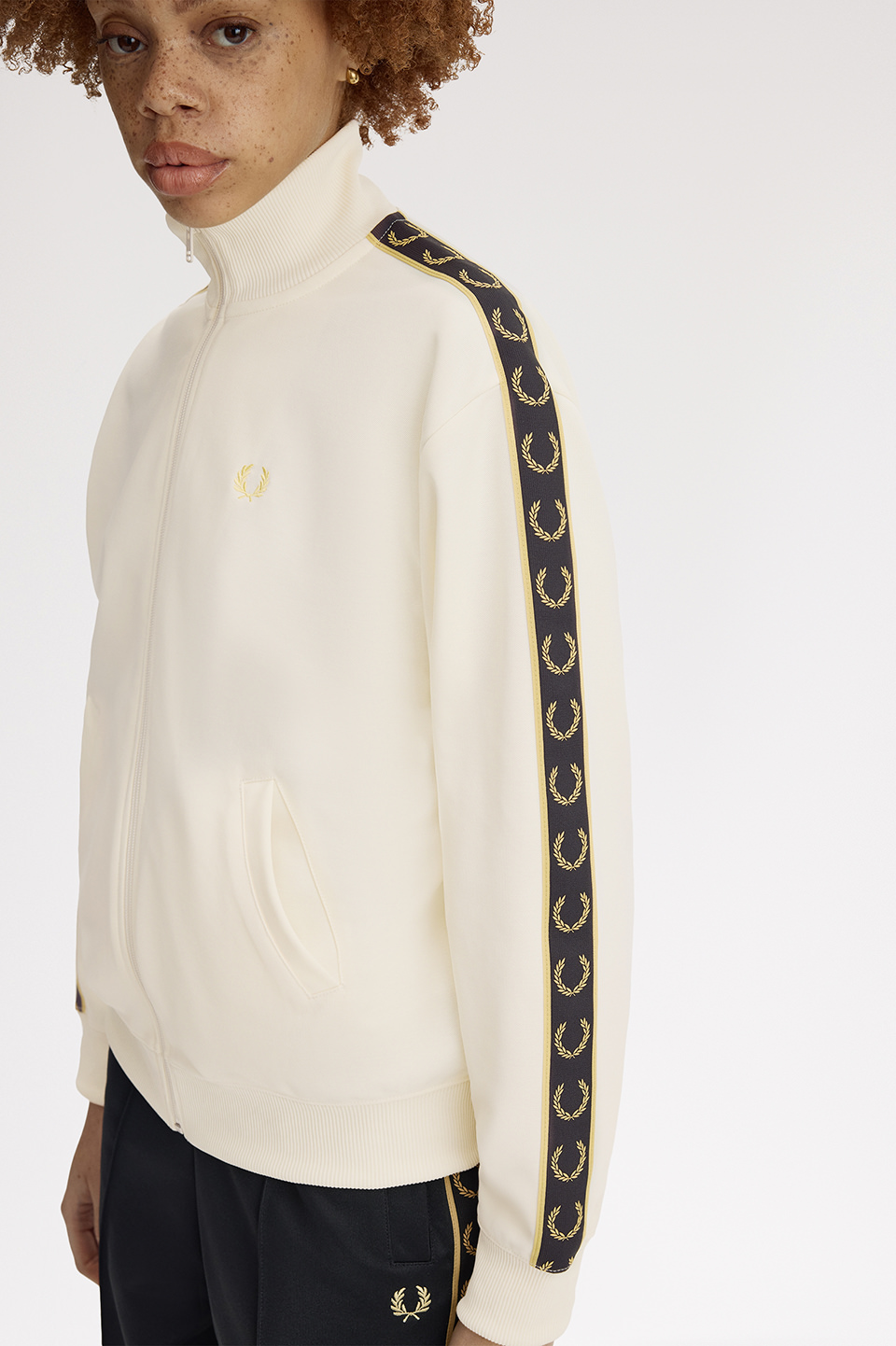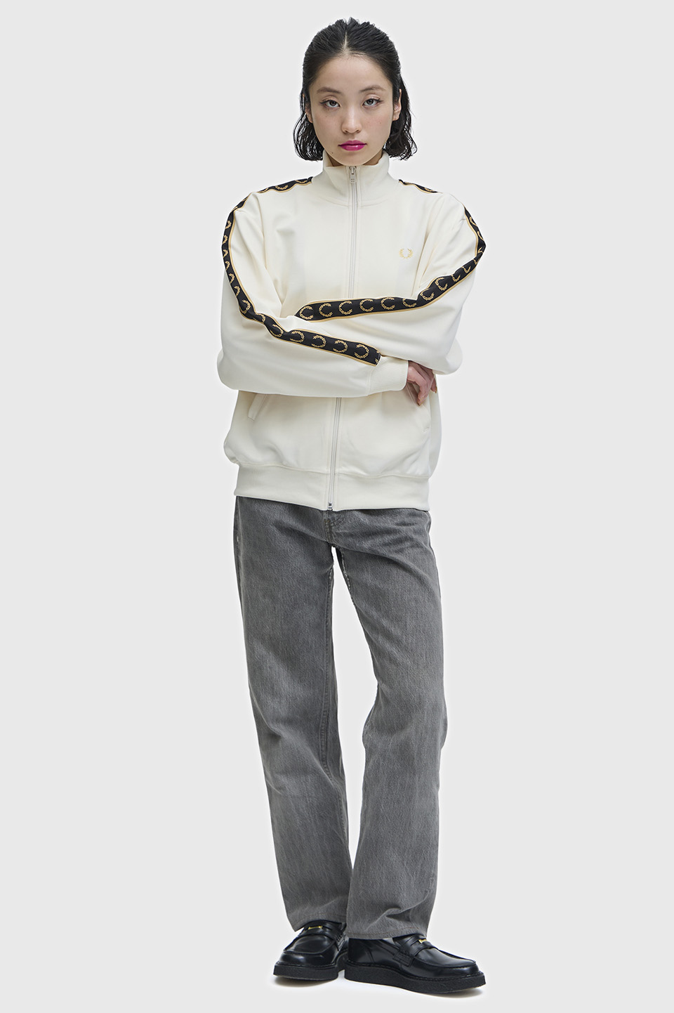 - クラシックトリコットを使用した新しいウィメンズのトラックジャケット。深いアームホールとドロップショルダーが特徴で、スリーブにあしらったトラックテープがデザインのポイントです。腰回りのリブは収縮性があり、ブラウジングのスタイリングも楽しむことができます。セットアップ可能なトラックスカートのご用意もございます。