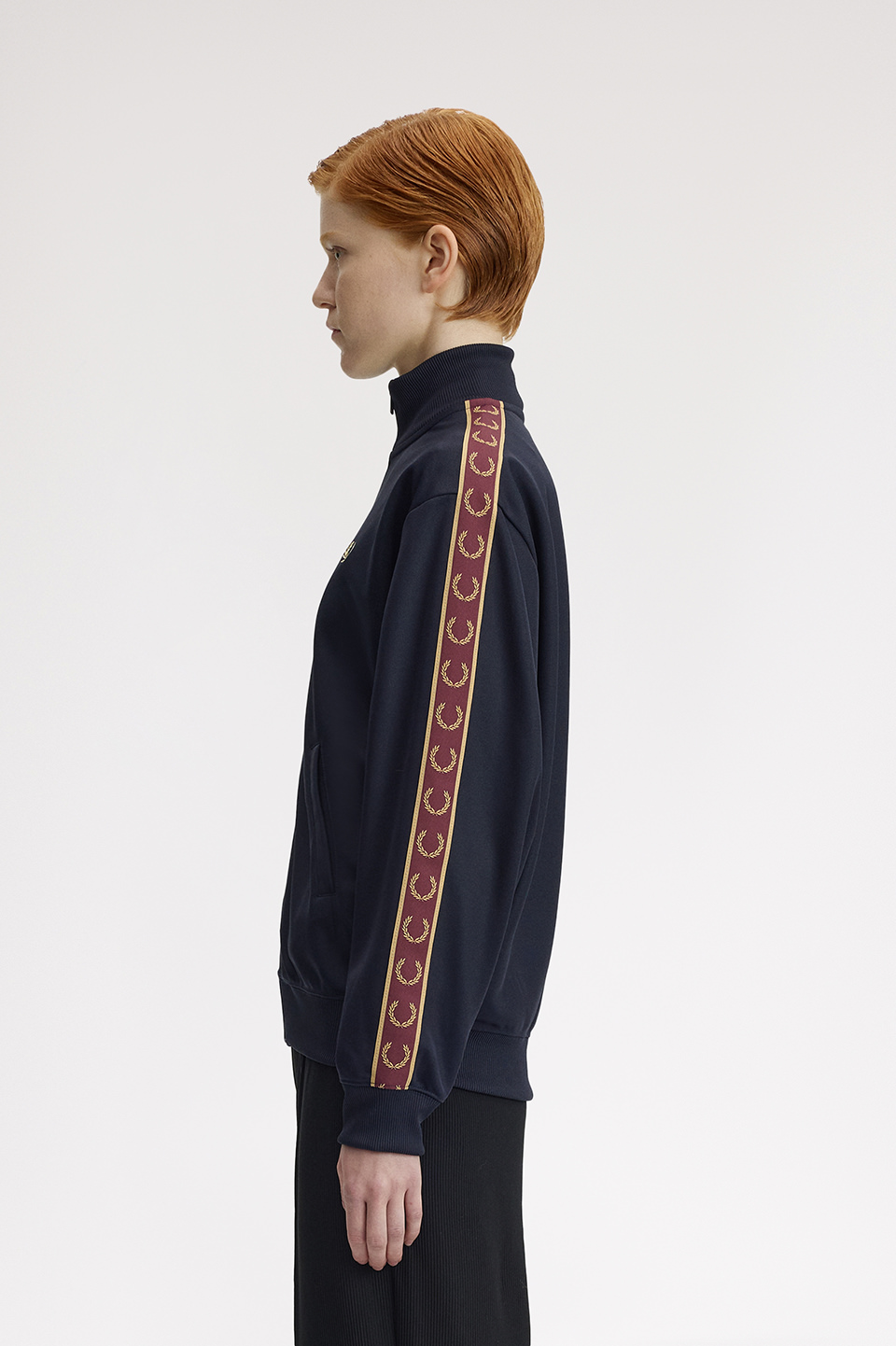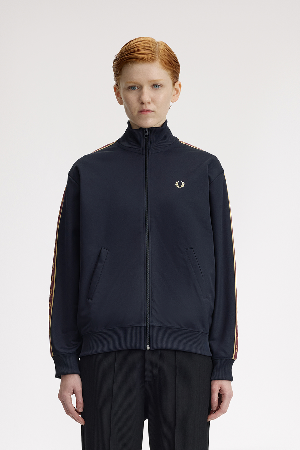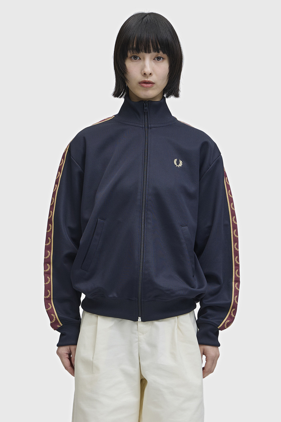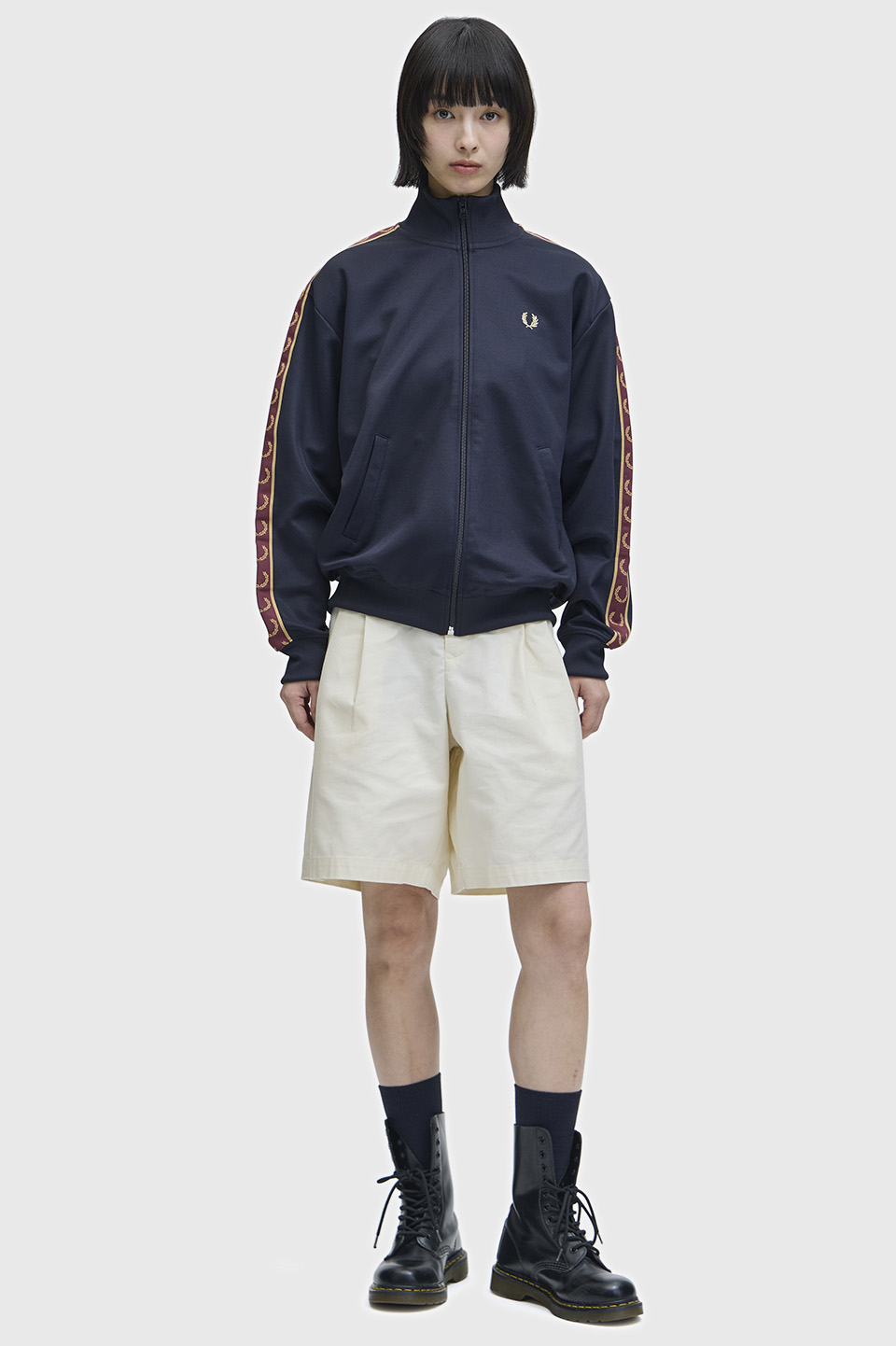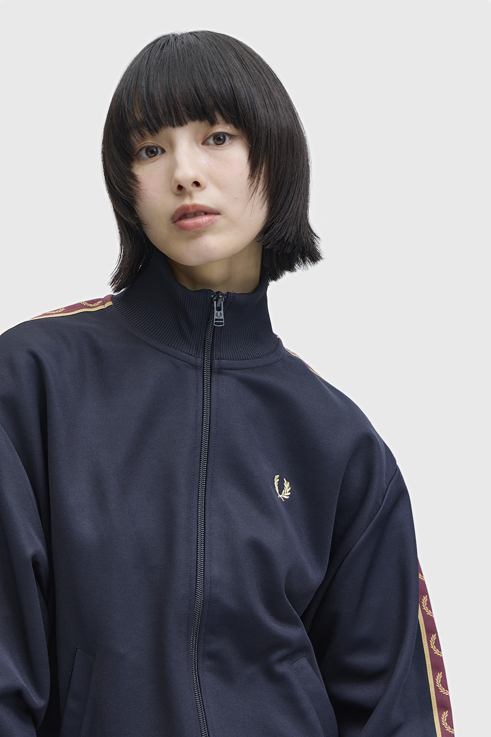 - クラシックトリコットを使用した新しいウィメンズのトラックジャケット。深いアームホールとドロップショルダーが特徴で、スリーブにあしらったトラックテープがデザインのポイントです。腰回りのリブは収縮性があり、ブラウジングのスタイリングも楽しむことができます。セットアップ可能なトラックスカートのご用意もございます。