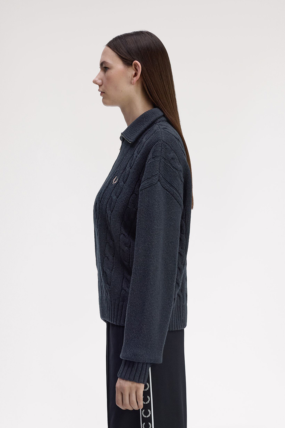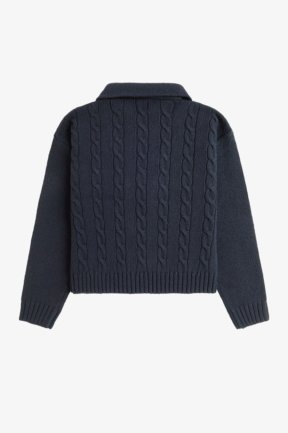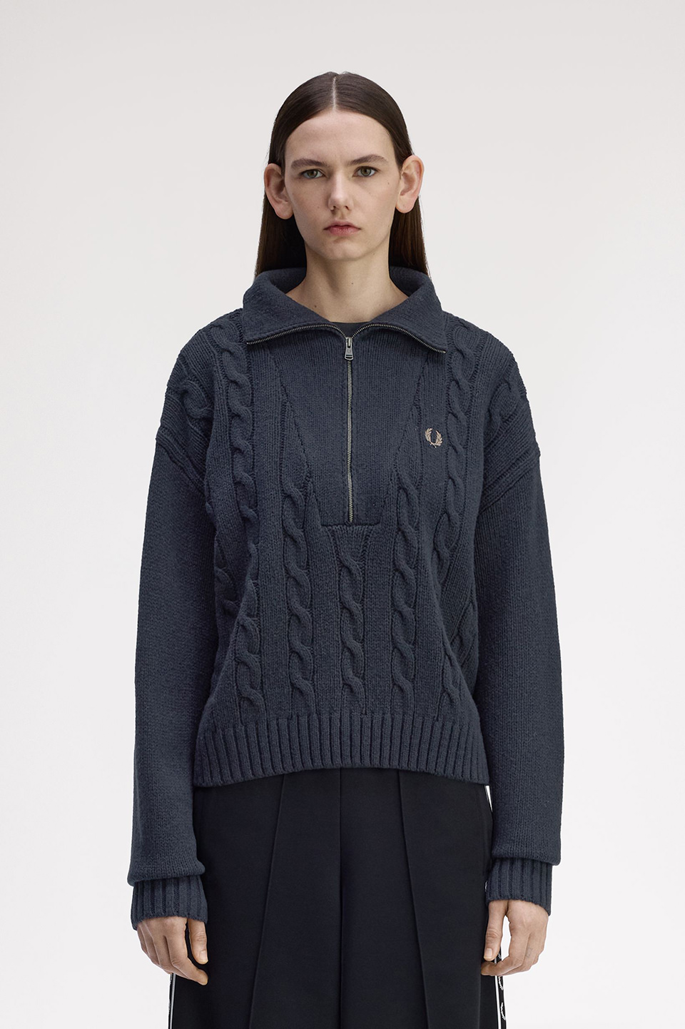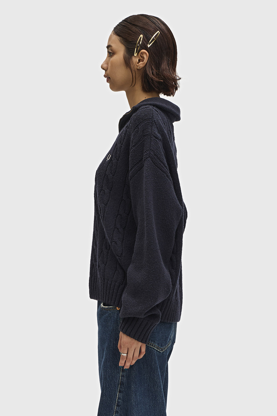 トップス。深めのハーフジップに大きめな衿が特徴です。