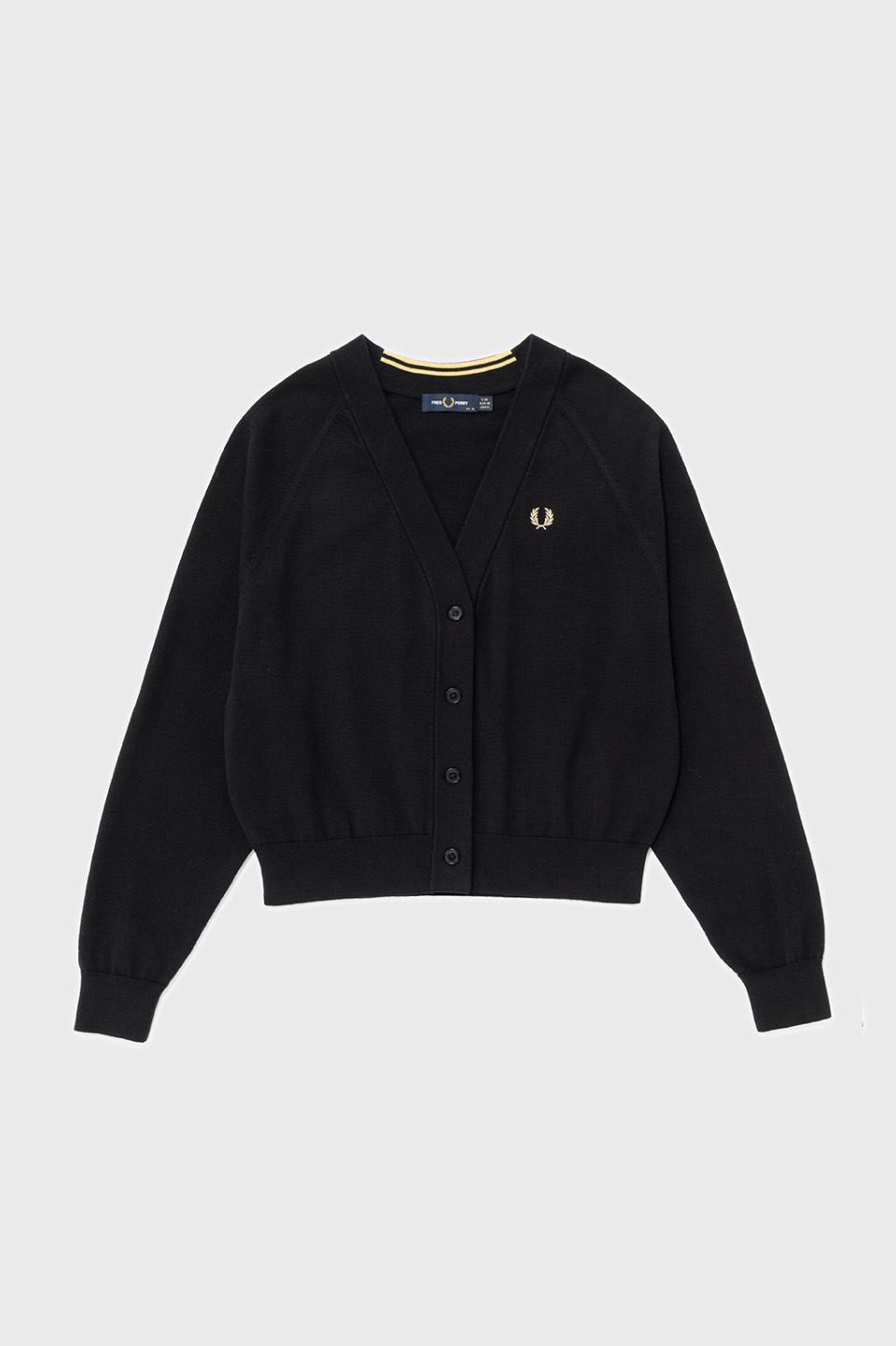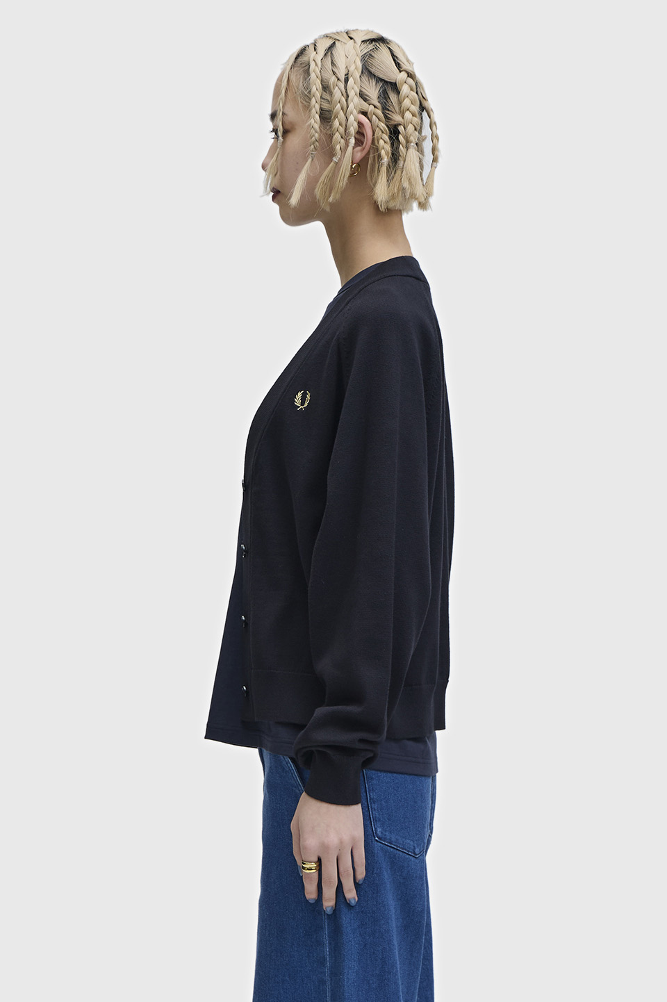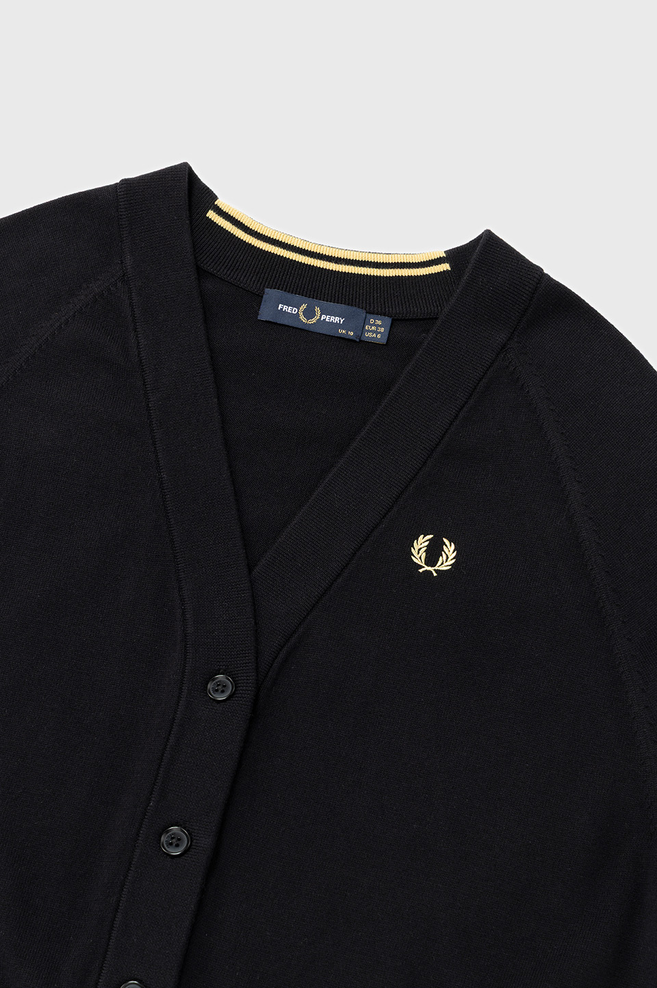 上質なコットンを使用したVネックカーディガン。バックネック部分のフレッドペリーのシグニチャーであるティップラインがポイントです。