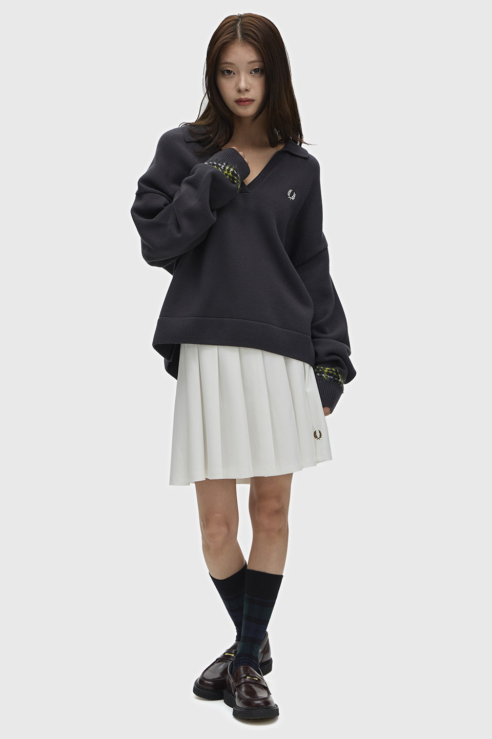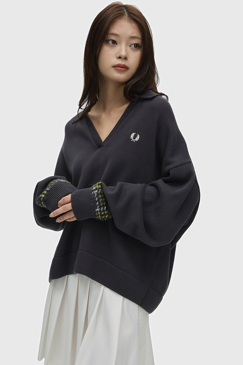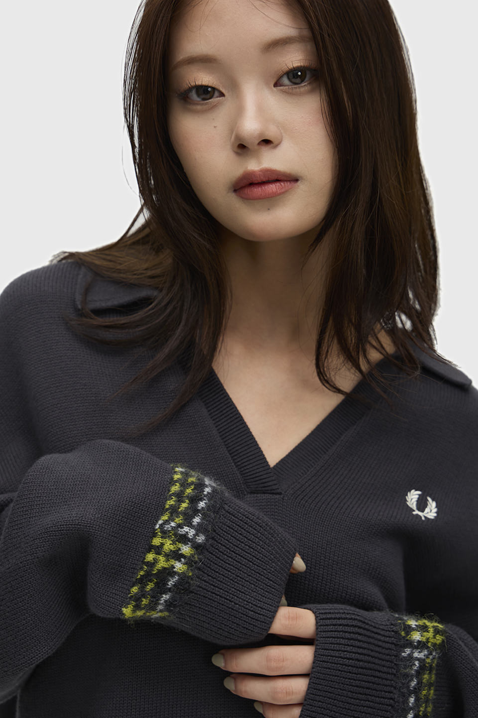 ベースに綿糸を使用し、袖口にアルパカの混紡糸で切り替えたスキッパーの
