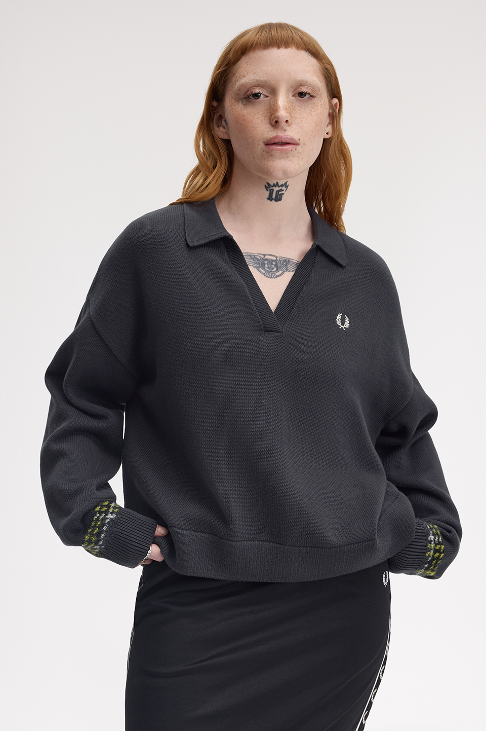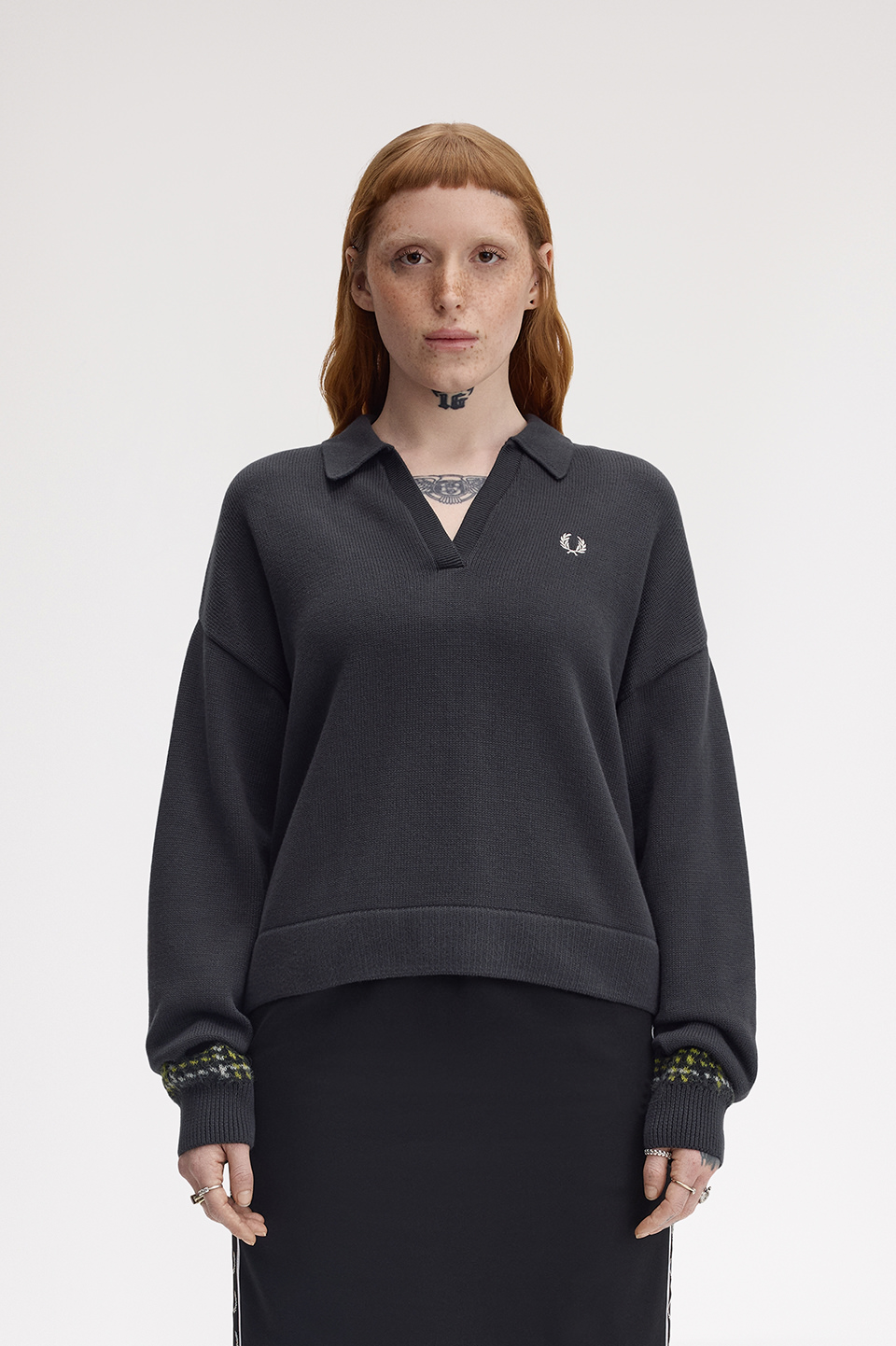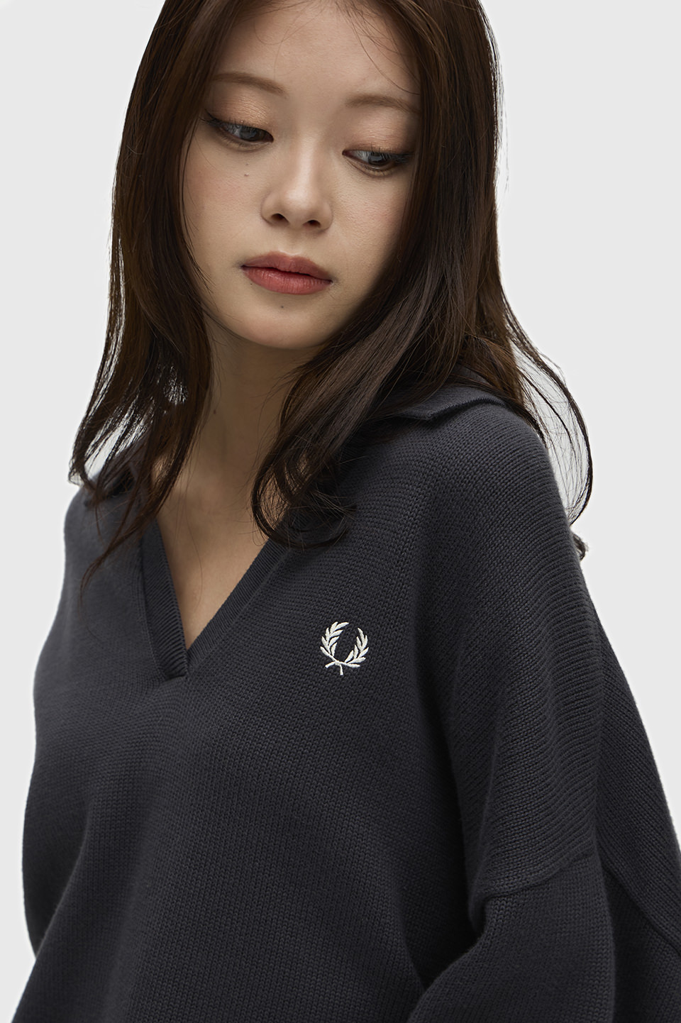 ベースに綿糸を使用し、袖口にアルパカの混紡糸で切り替えたスキッパーの