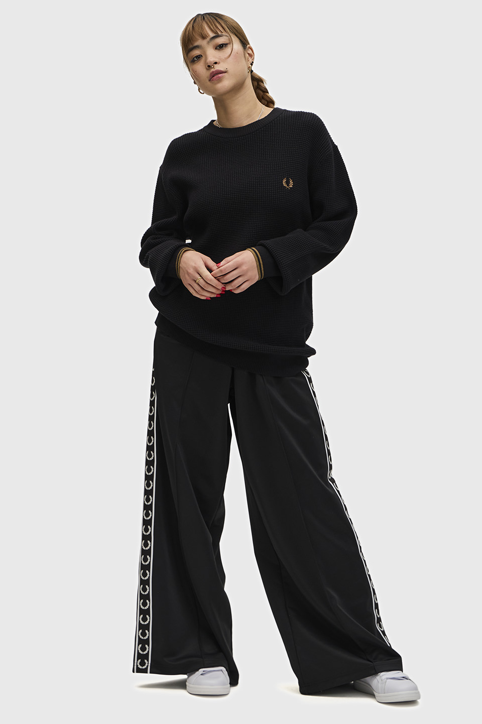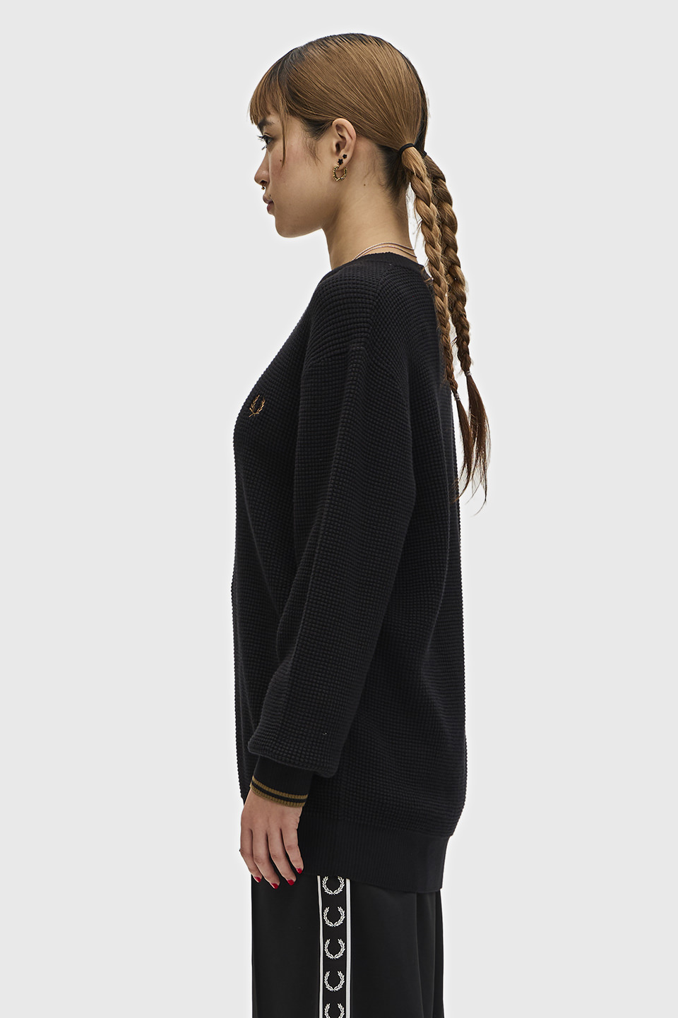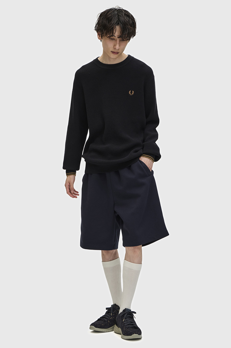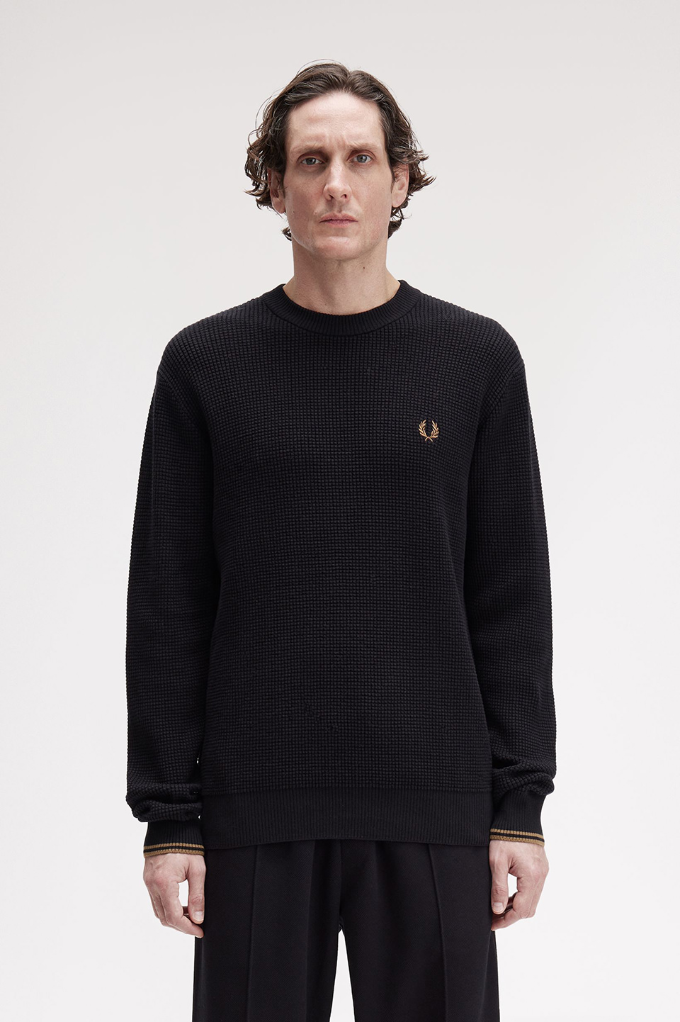 上質なコットンを使用したミドルゲージのワッフル編みクルーネックニット。