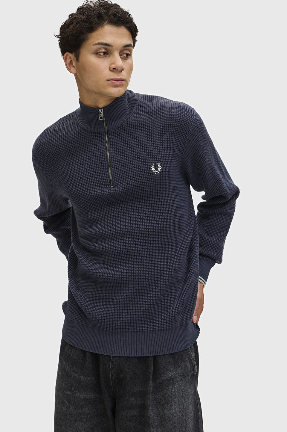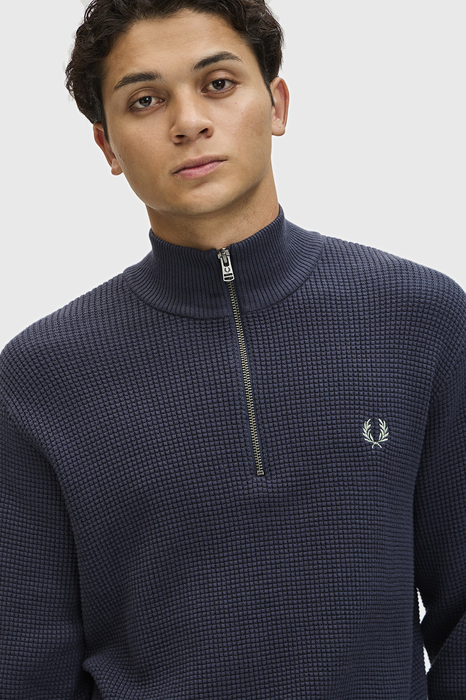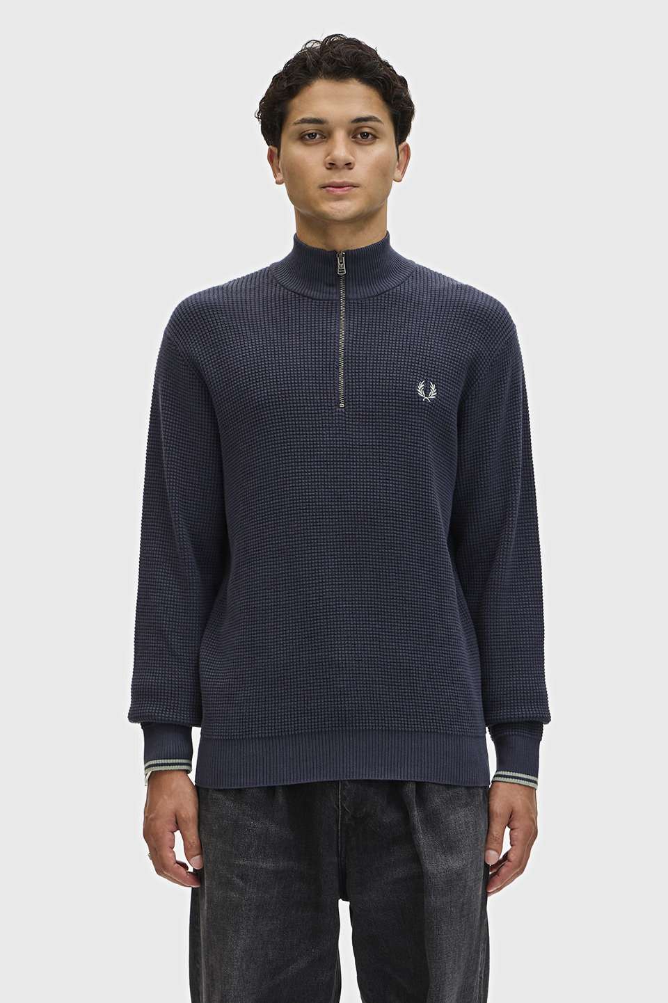 上質なコットンを使用したミドルゲージのワッフル編みのハーフジップ