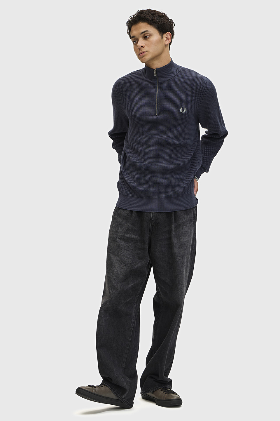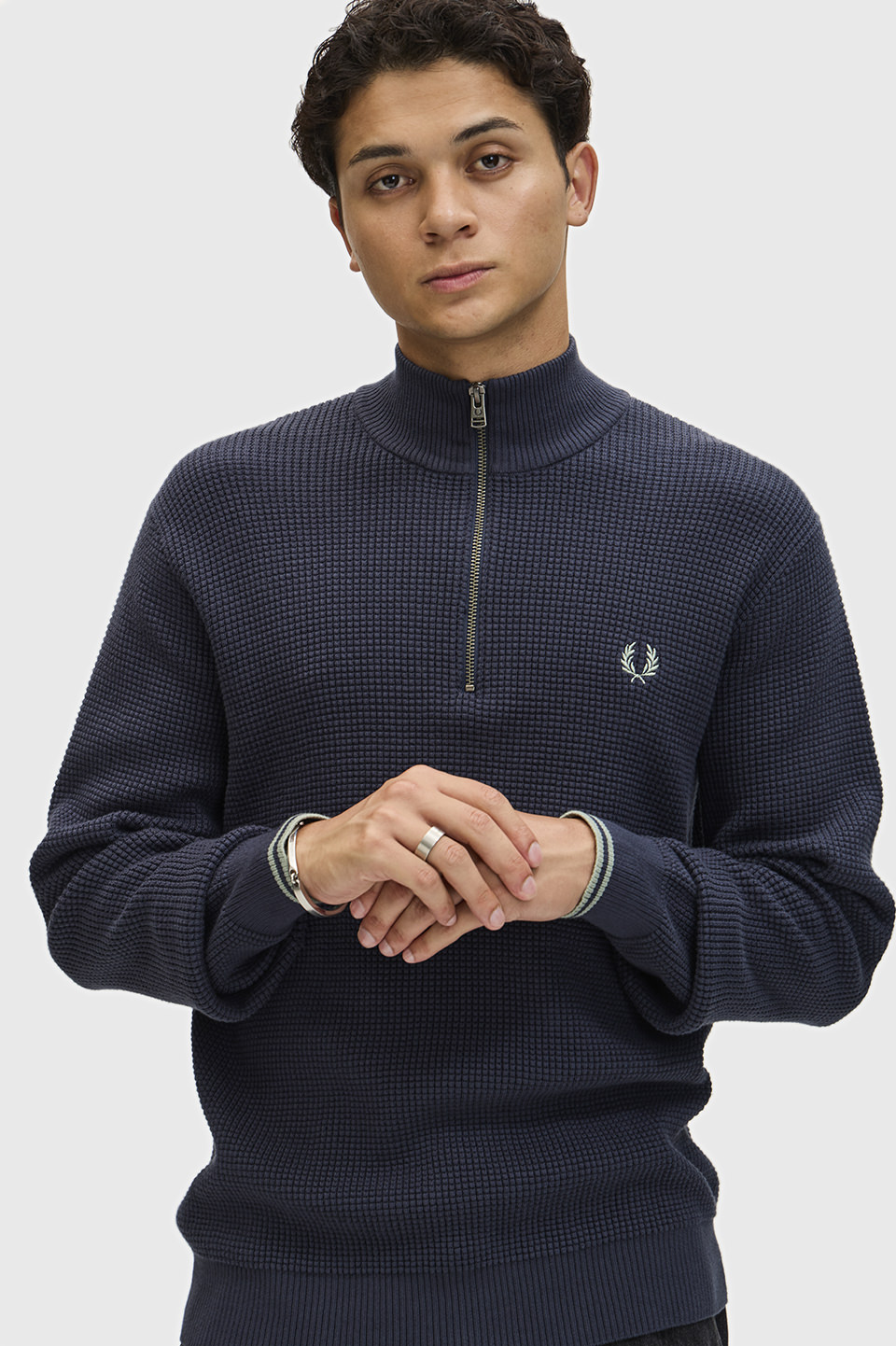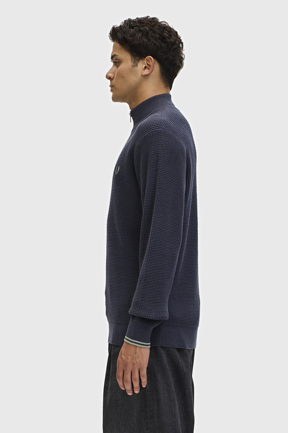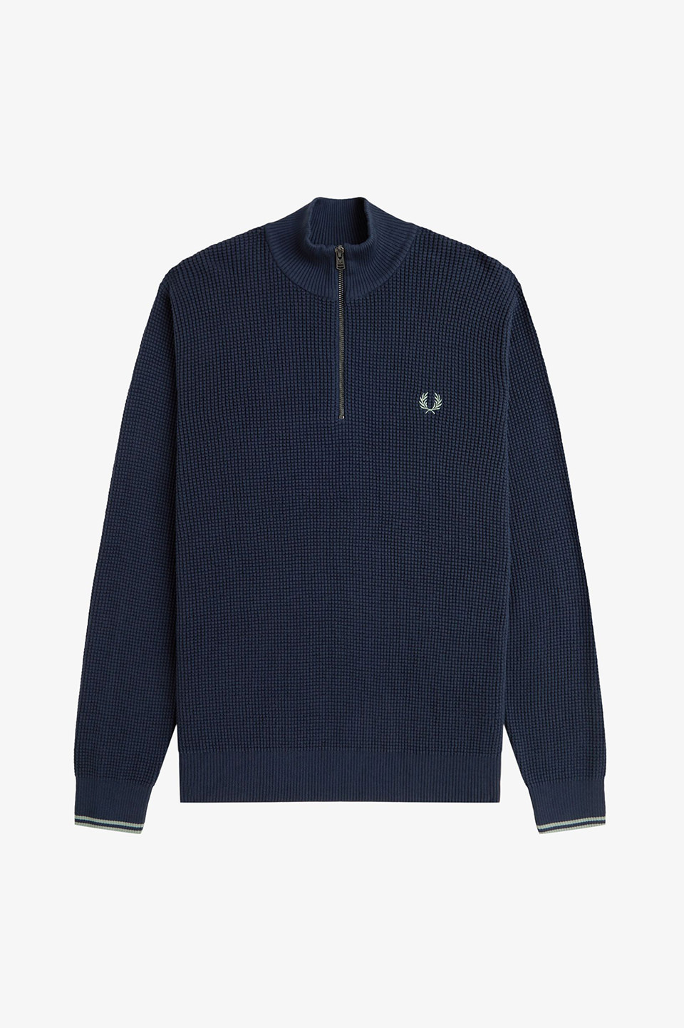上質なコットンを使用したミドルゲージのワッフル編みのハーフジップ