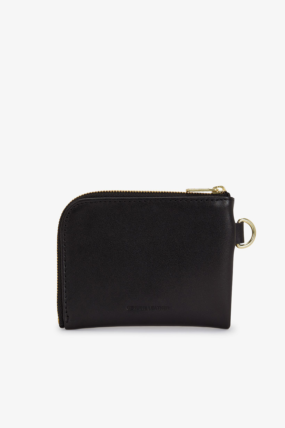 やや光沢のある上質なスムースレザーを使用したスリムなジップウォレット。ゴールドのジップ、ブランディングのエンボスがリッチな仕上がりです。
