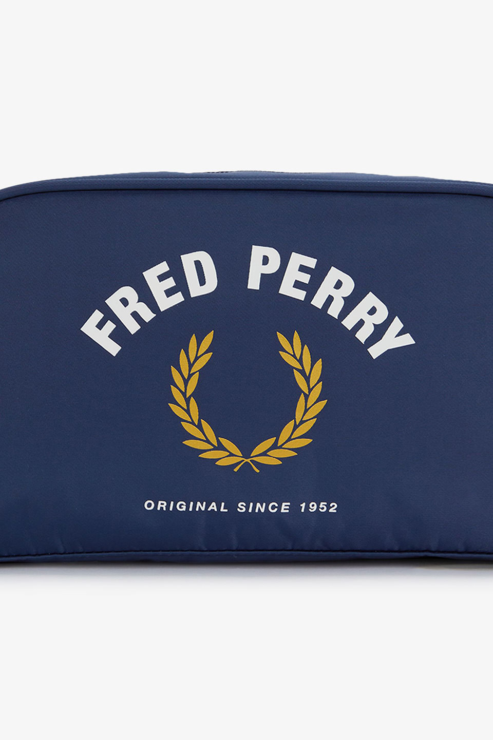 しっかりとしたマチ付きのスクエア型デザイン。フロントにフレッドペリーのブランディングが大胆に施されています。スポーティーな配色に仕上げました。 ジップの引手にはローレルマークが刻印されています。