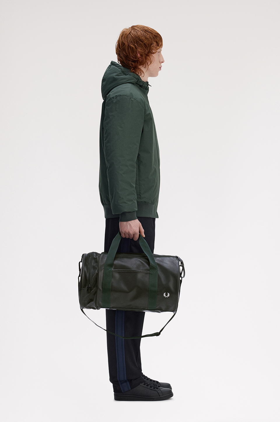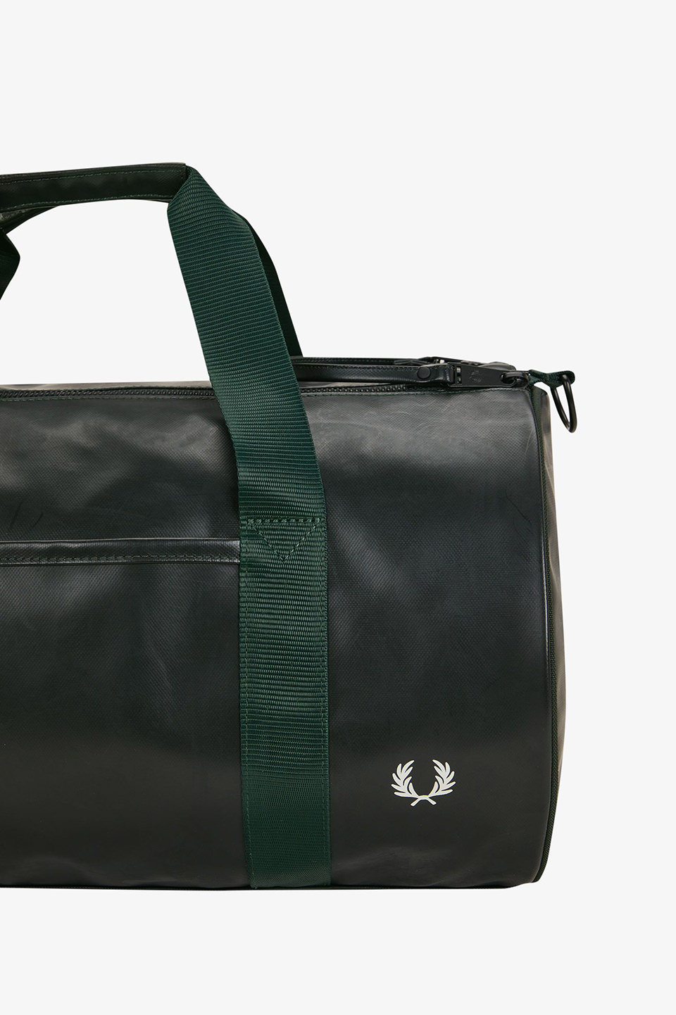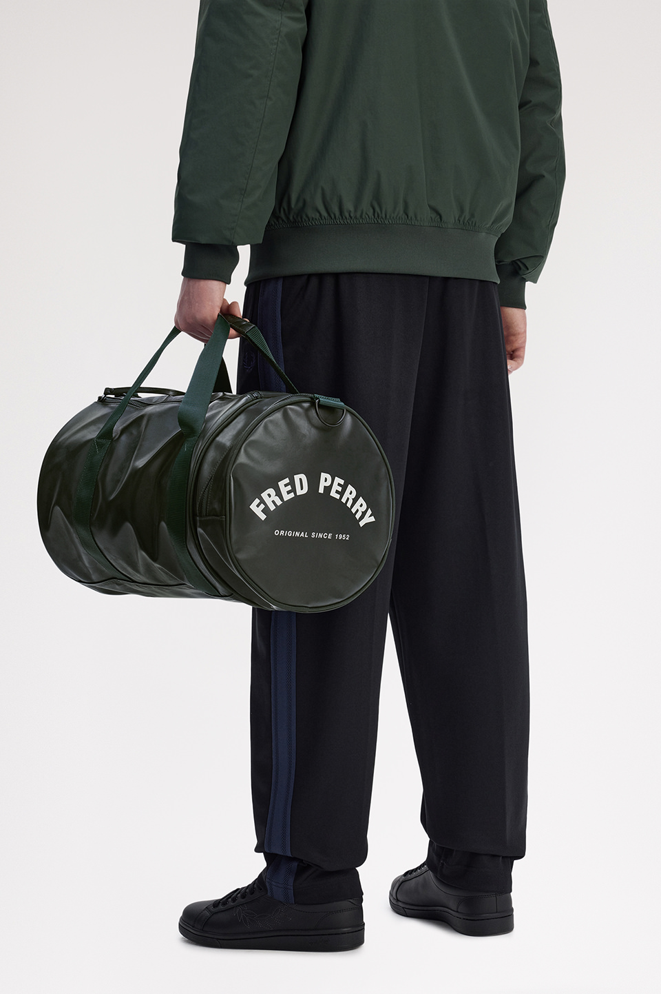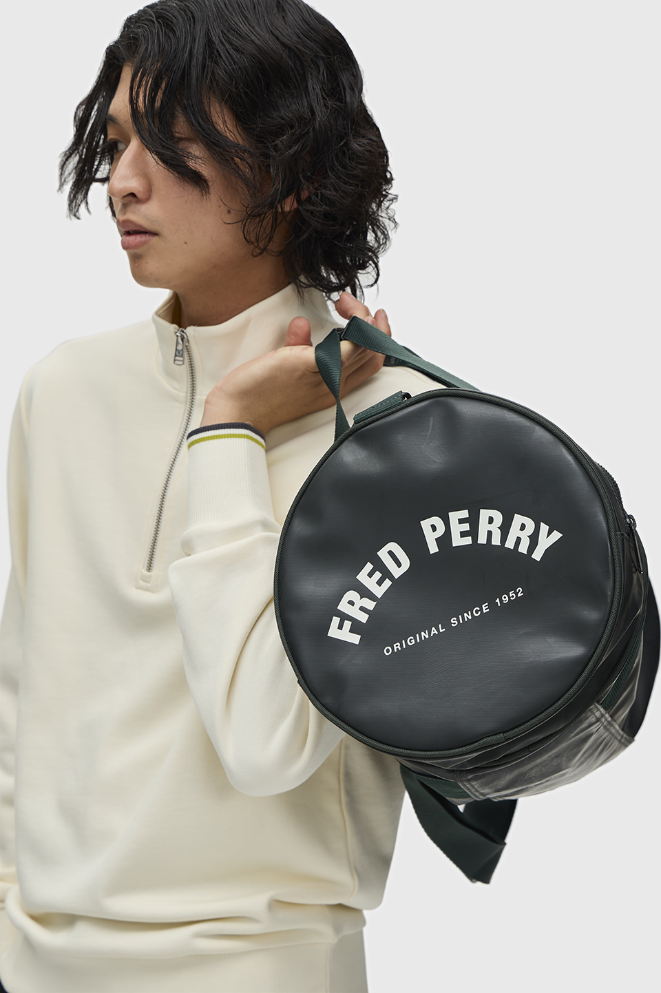 フレッドペリー定番のバレルバッグ。 2024年からTPUコーティングを施したリサイクルポリエステルへ素材変更をおこない、よりサステイナブルで頑丈なアイテムにブラッシュアップしています。