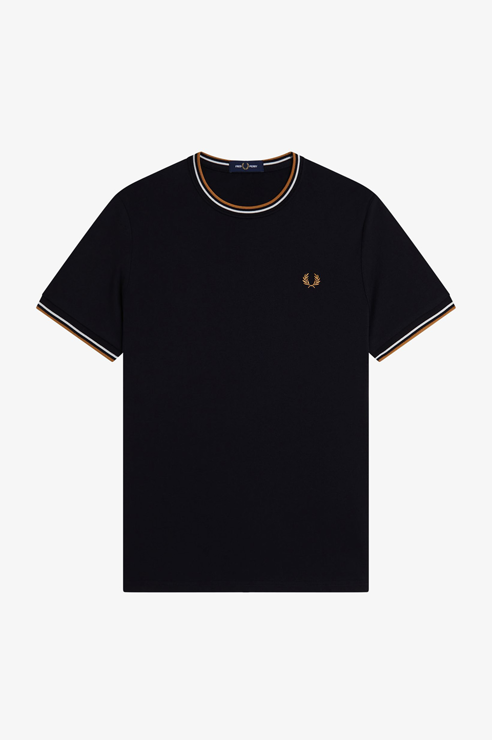 ネックと袖リブにフレッドペリーのシグニチャーであるティップラインを施したクルーネックTシャツ。コットン100%のきれいめな細番手の糸を高密度で編み立てたソフトでリッチな素材を使用しています。