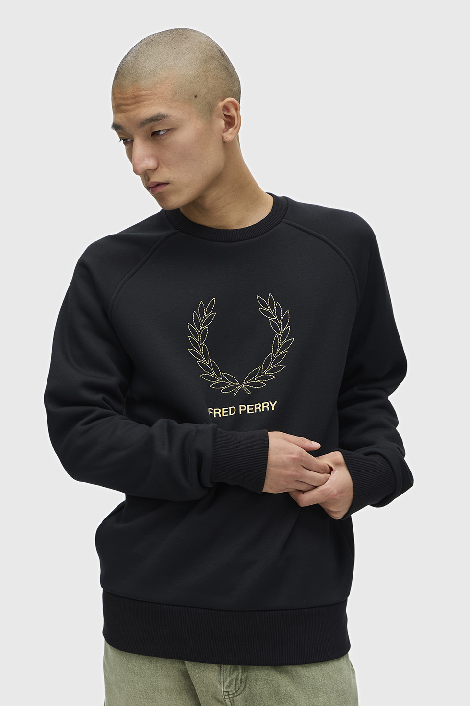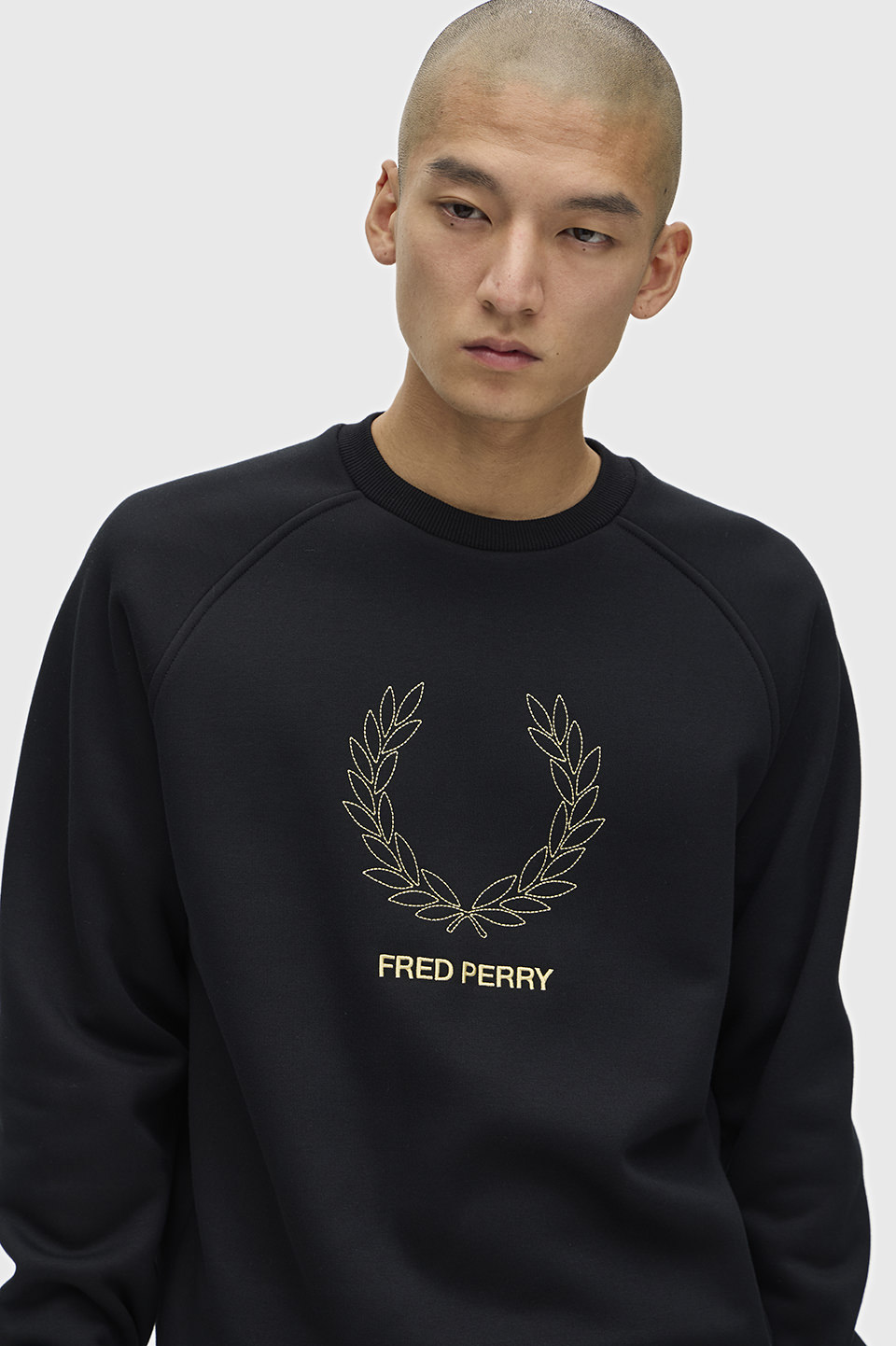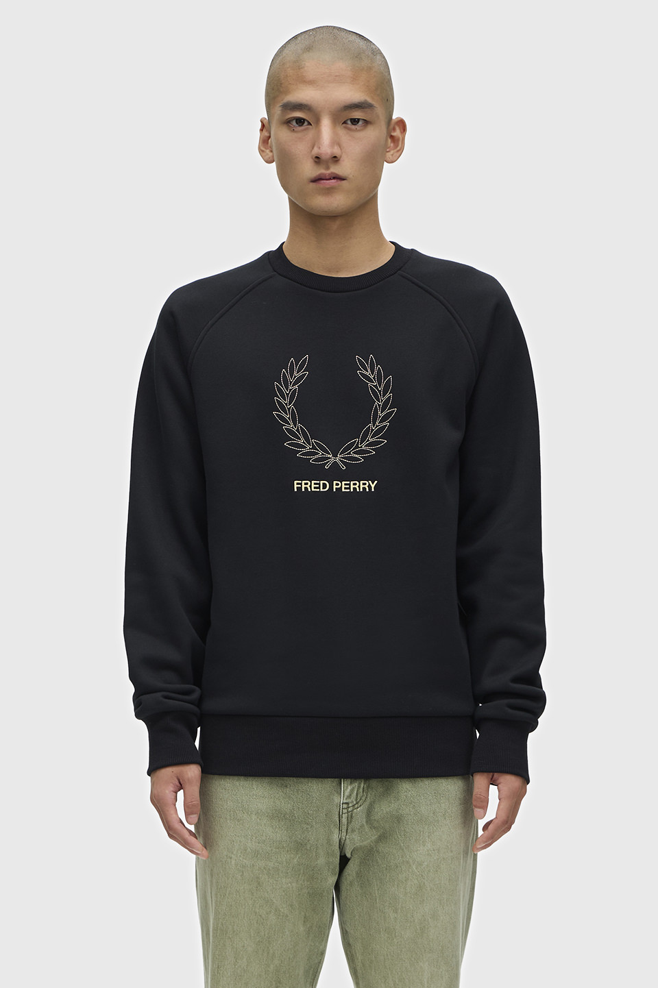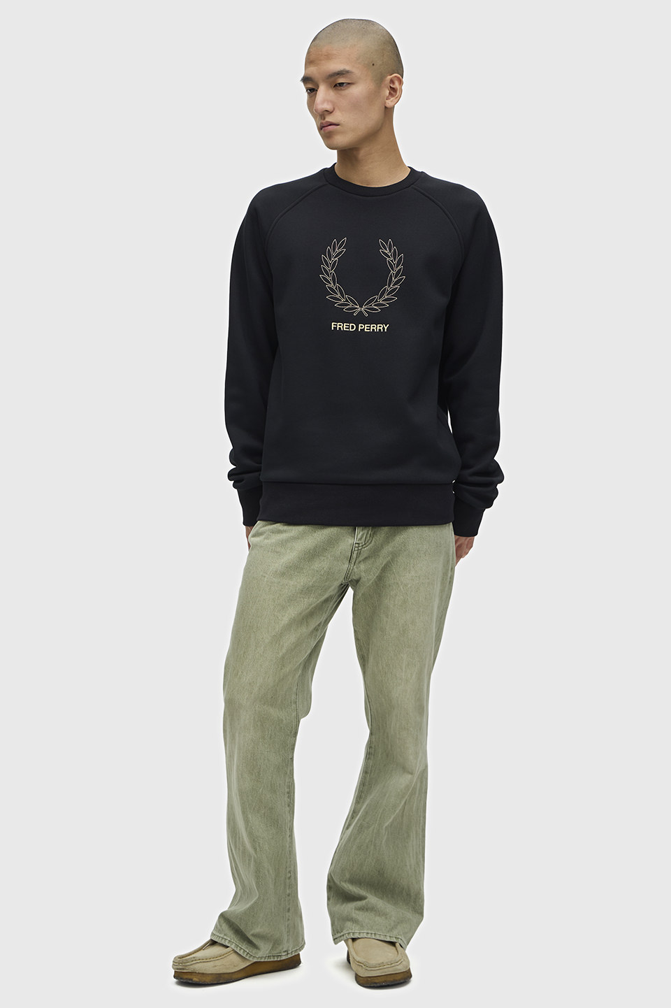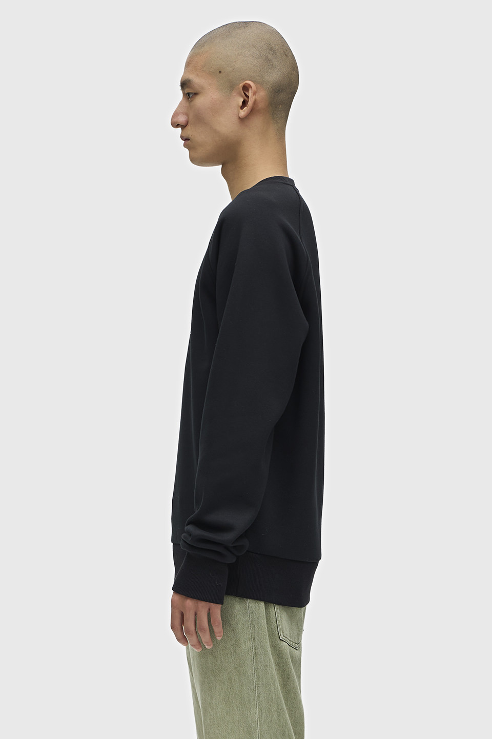 シャツ。表面がソフトでキレイめなフリースバックスウェット生地を使用し、ロゴのアウトライン刺繍がアクセントです。着心地の良いラグランスリーブです。