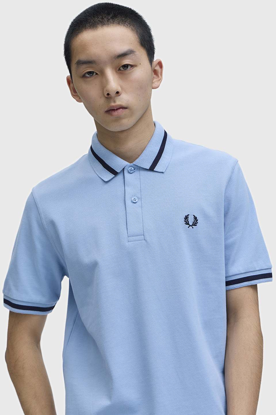 シングルのティップラインがあしらわれた、オリジナルのフレッドペリーシャツ。オリジナルのフィットのまま、イングランドで作られています。シグニチャーであるコットンの鹿の子素材を使用しています。