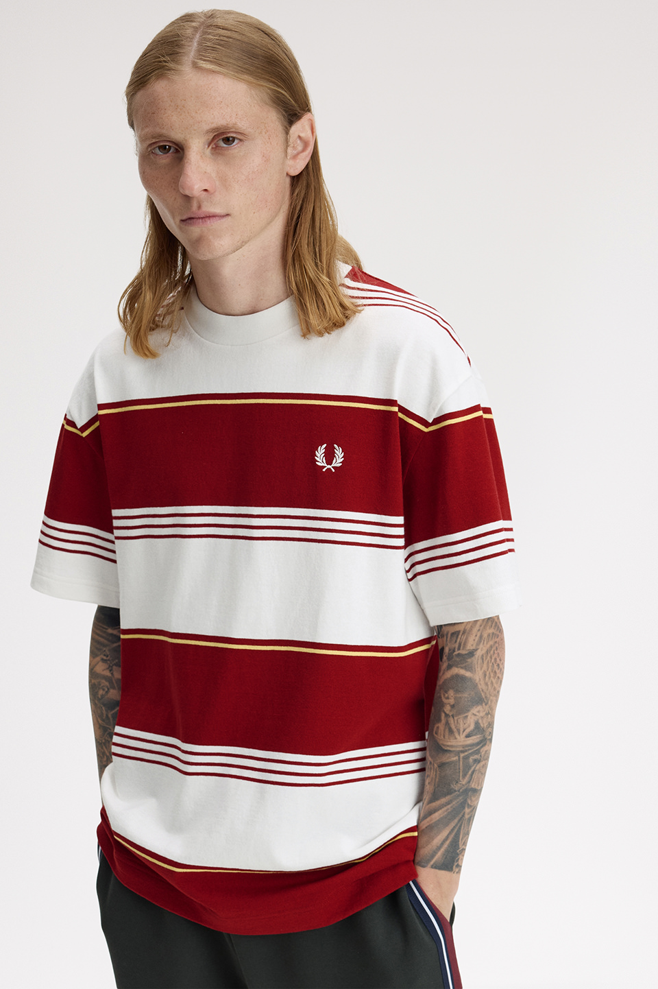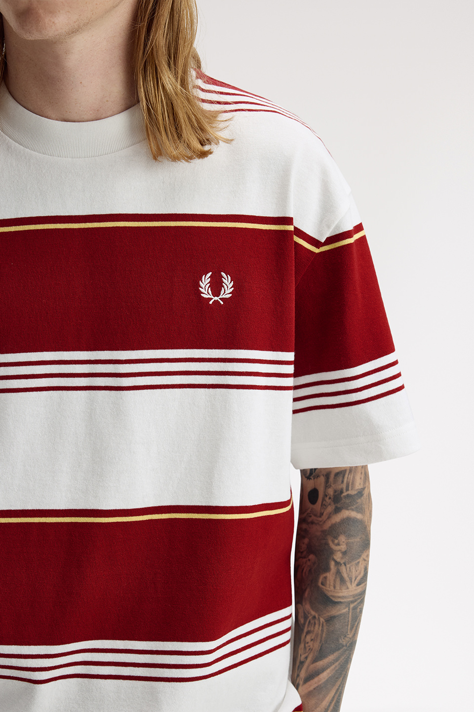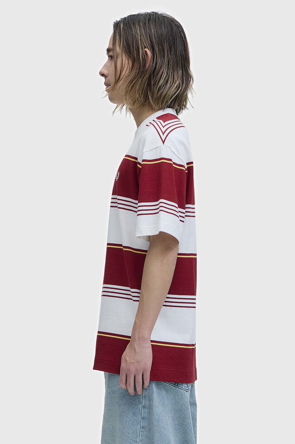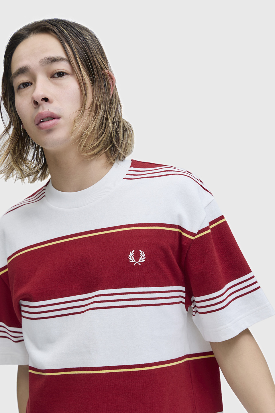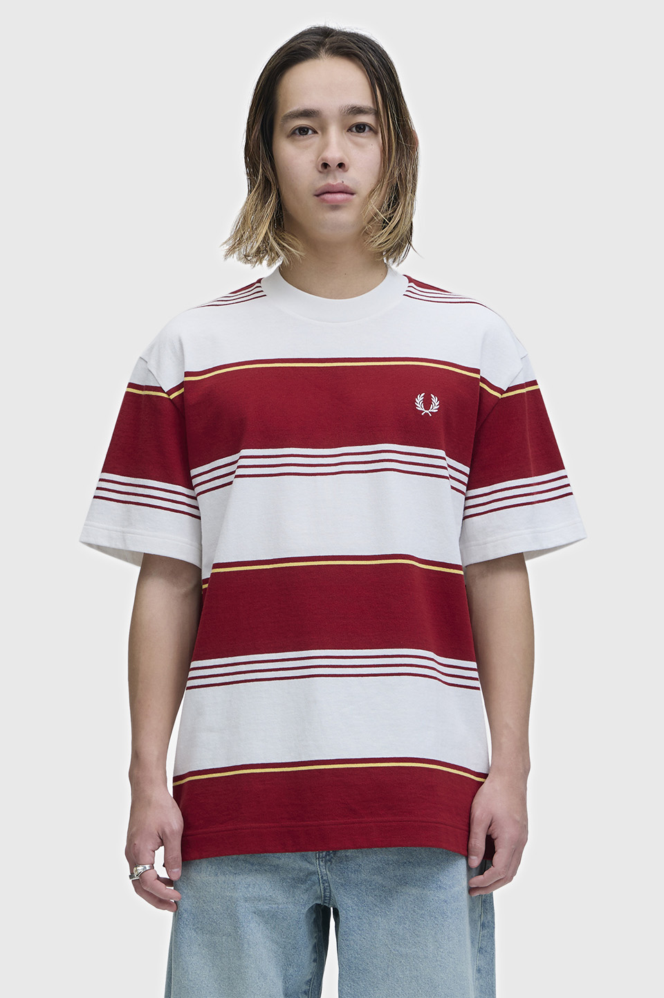 ヘビーコットンを使用したボーダー柄のクルーネックTシャツ。