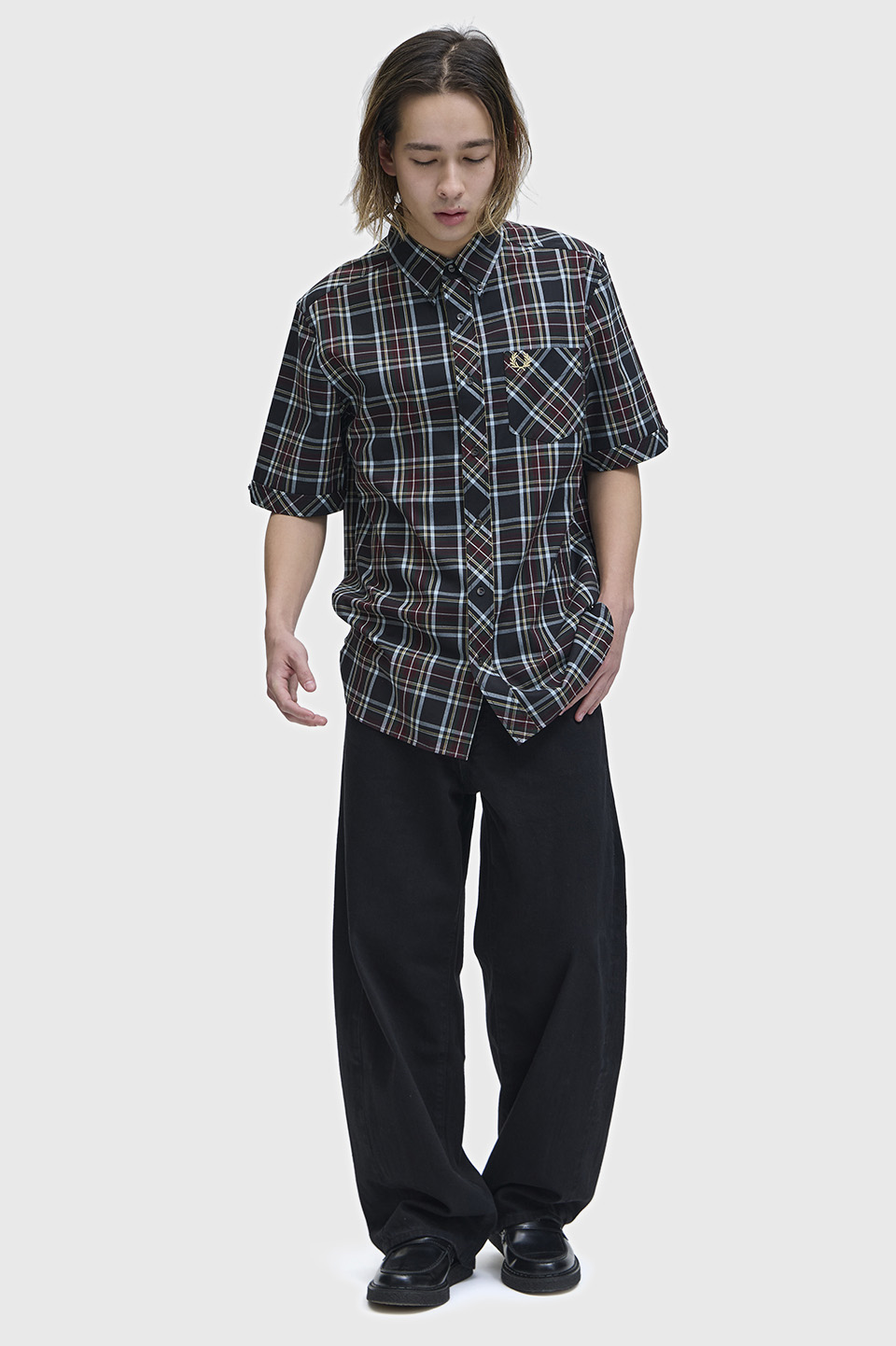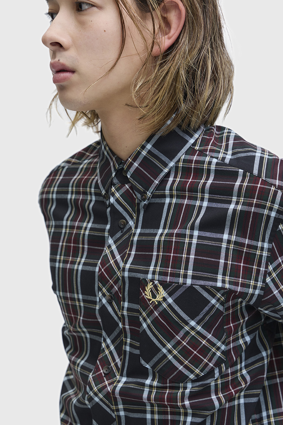 コットンポプリン素材のオリジナルタータンシャツ。シーズンカラーを取り入れたタータンチェック柄と、ボタンダウンやダブルカフが上品なアクセントになります。ソフトな肌触りと適度なハリのある生地です。