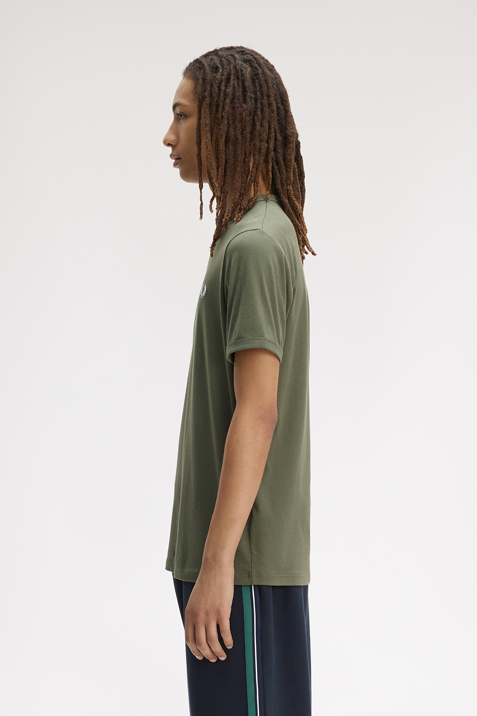 コットン100%のきれいめな細番手の糸を高密度で編み立てたソフトでリッチな素材のリンガーTシャツ。プレーンなデザインをリブネックとカフが引き締めています。