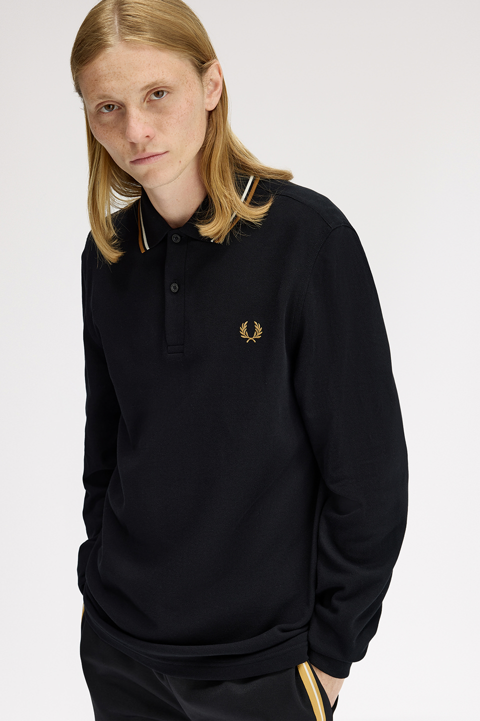FRED PERRYのシグネチャーである5:4:4のティップライン。M3600の長袖で、豊富な色展開。