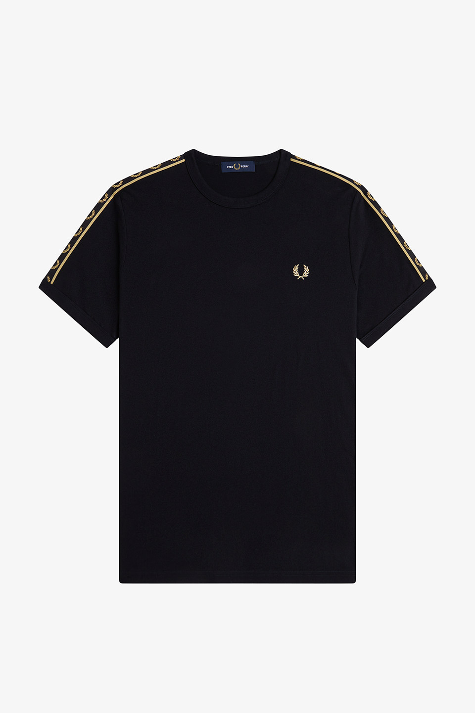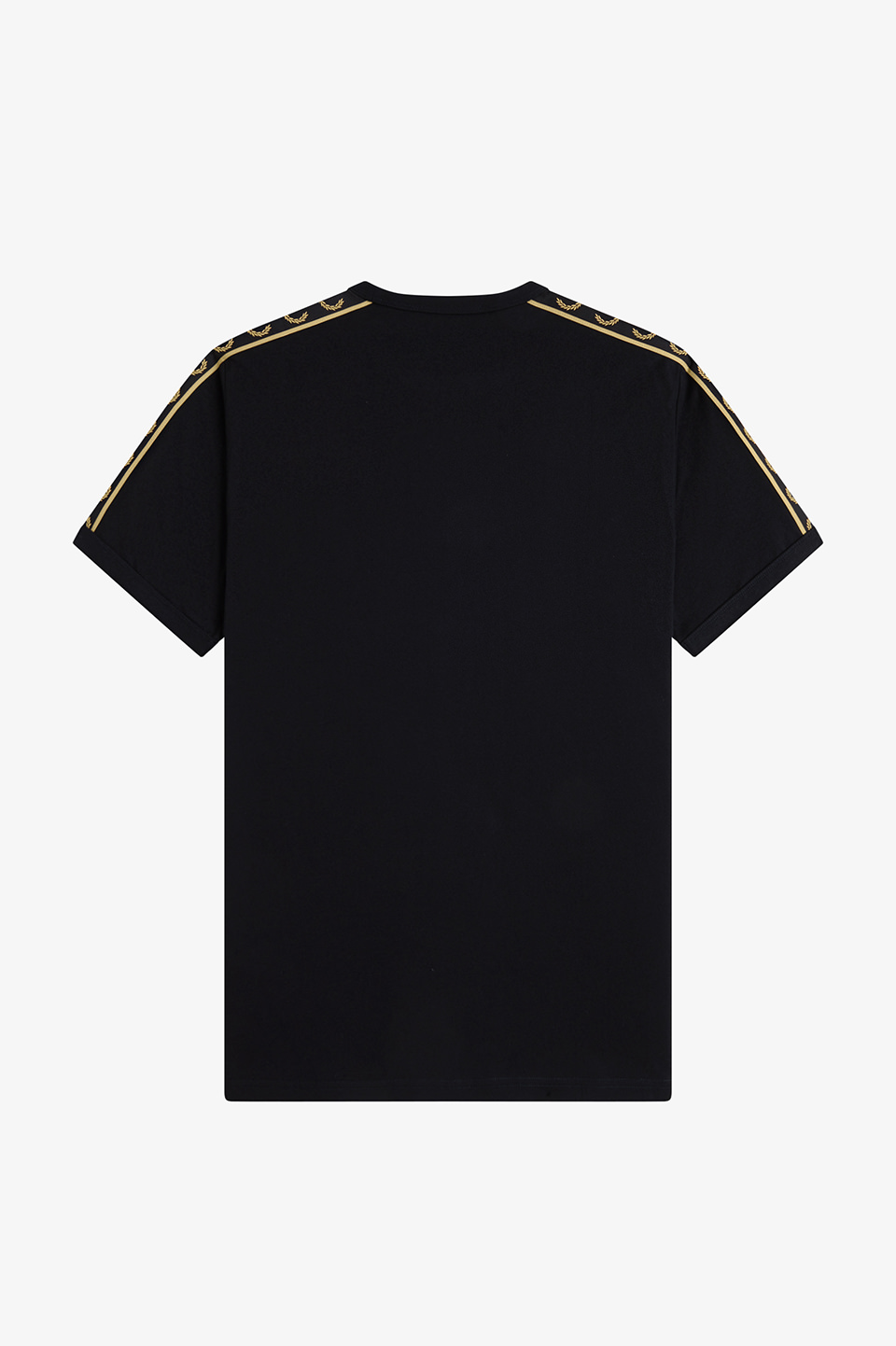 コットン100%のきれいめな細番手の糸を高密度で編み立てたソフトでリッチな素材のリンガーTシャツ。袖部分にはローレルリースデザインのテープをあしらい仕上げています。