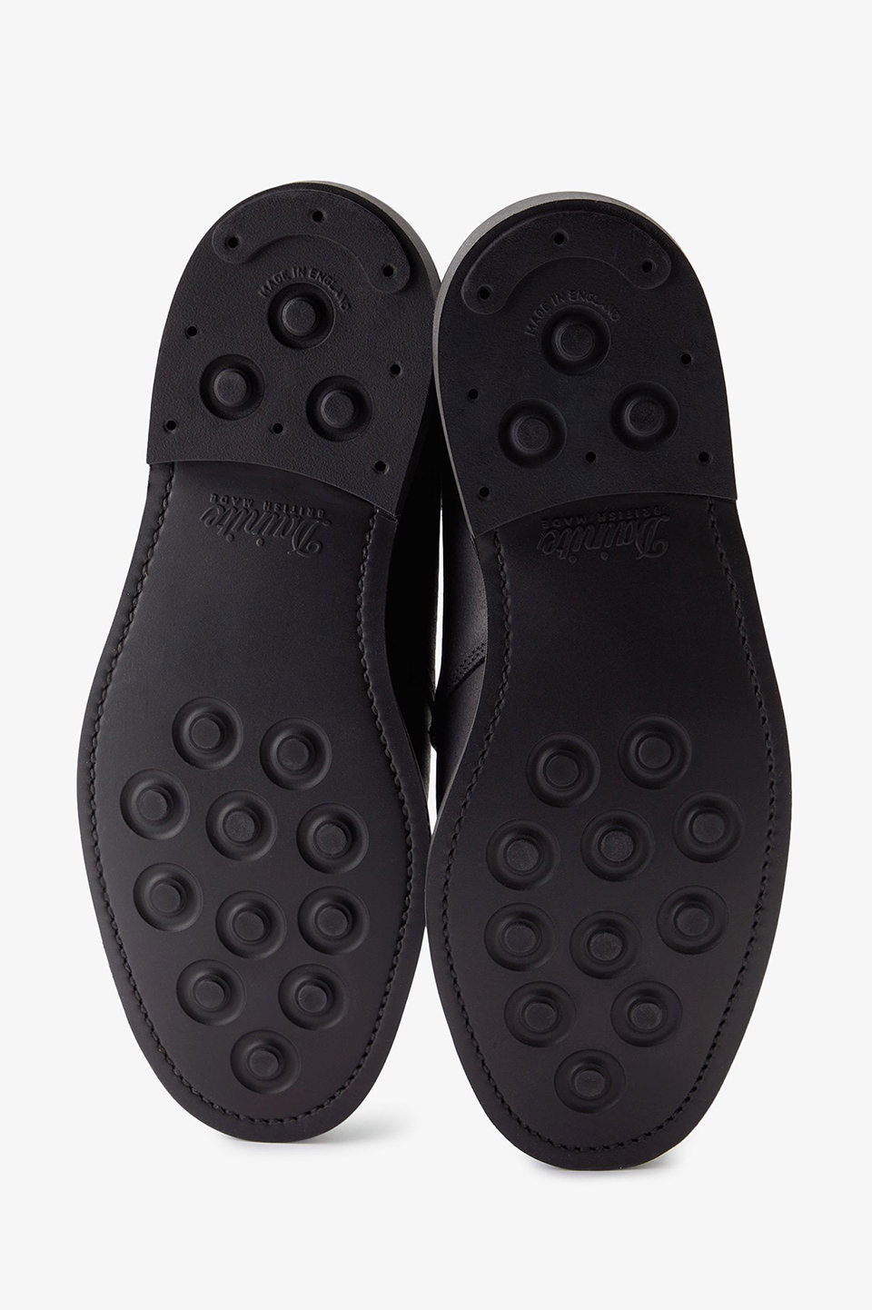 。ベースにはブランドの定番「Bertie」モデルを採用し、Dainiteラバーアウトソールを組み合わせた、クラシックかつ実用的な一足です。アッパーには上質なワックススエードを使用し、ライニングにはブラックレザーを採用。インソールにはゴールド箔のダブルブランドロゴを刻印した特別仕様。シューレースとアイレットはブラックで統一し、洗練された印象に仕上げています。