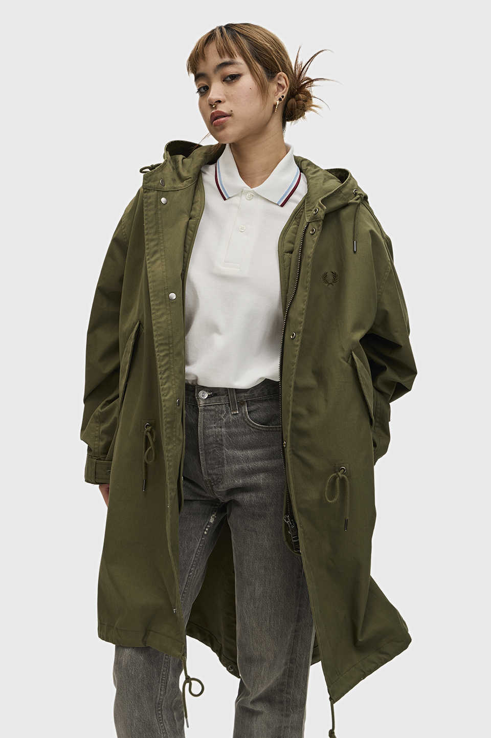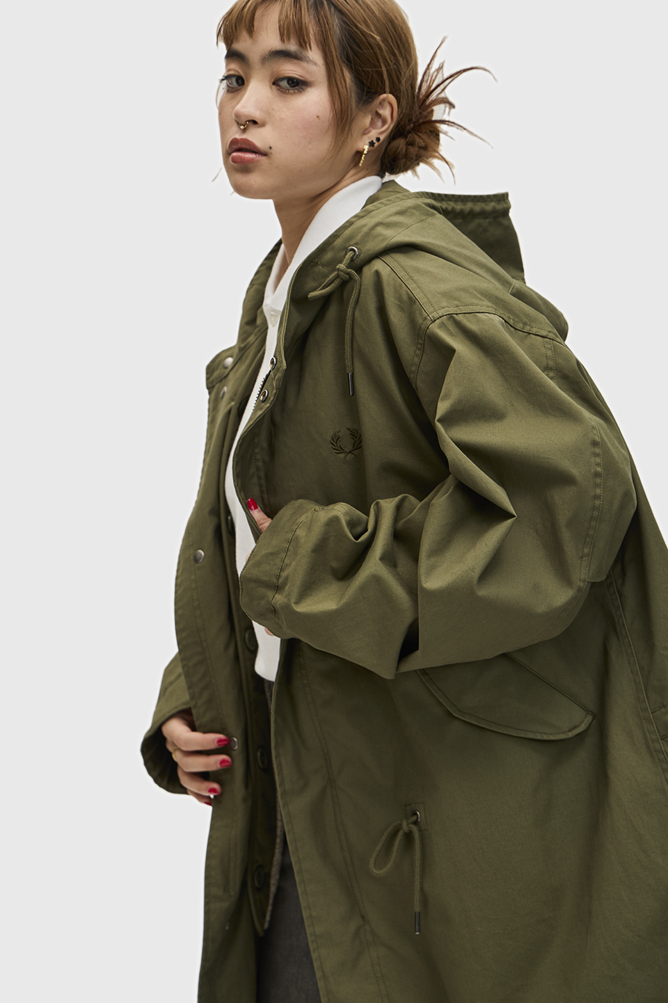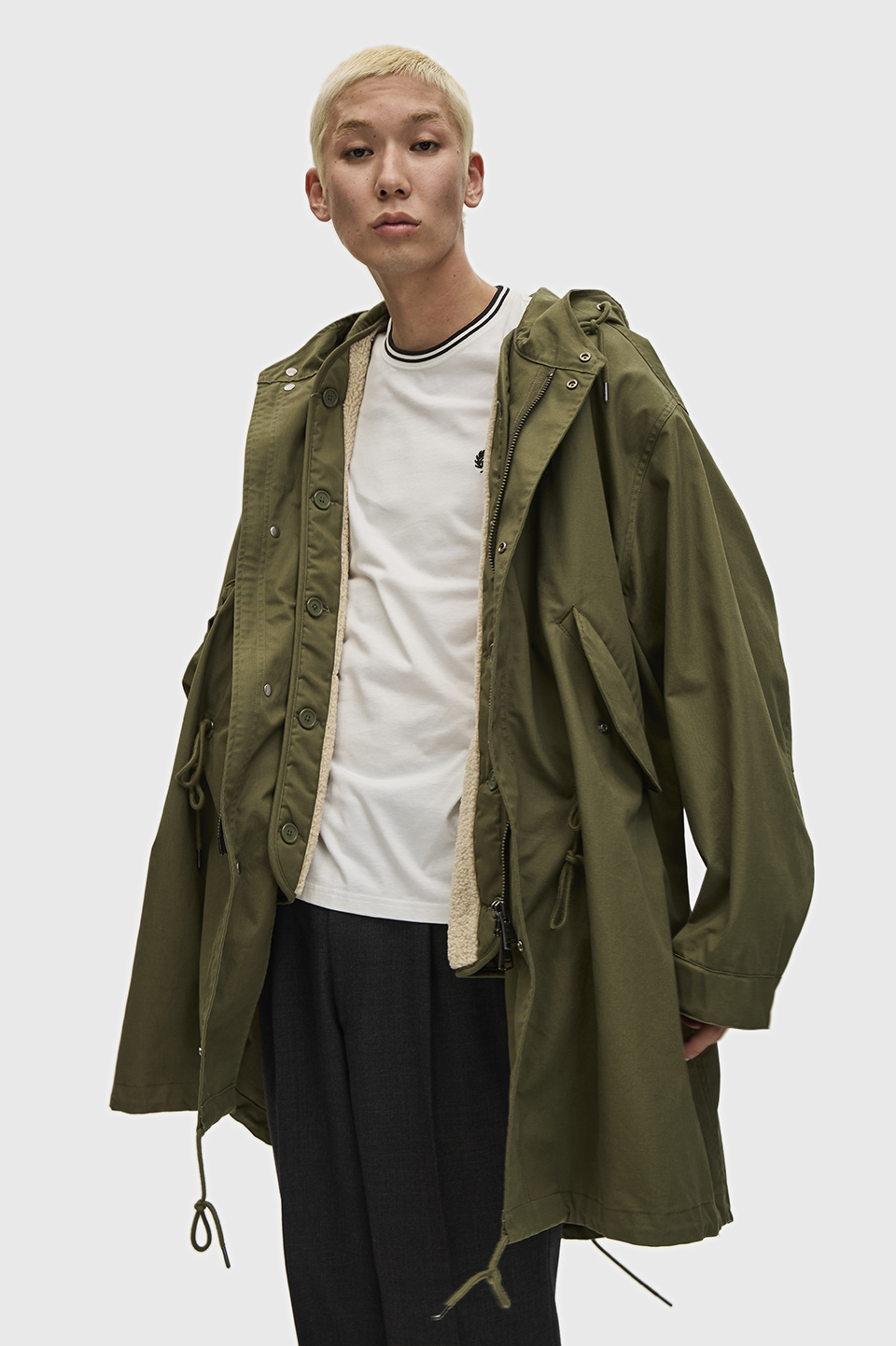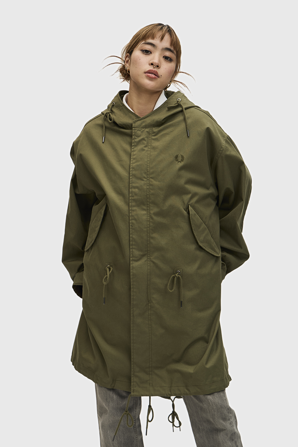 ビンテージのフィッシュテイルパーカを踏襲したオーバーサイズのジャケット。 90年代のサブカルチャーを反映させたデザインと、機能性を備えた本格的な全天候型アウター。 表地は起毛した高密度のコットンを使用、内側は着脱可能なジレスタイルのボアライナーを備えています。 ウエストと裾内側のドローコードでフィット感を調節できます。男女問わず着られるユニセックスデザインです。
