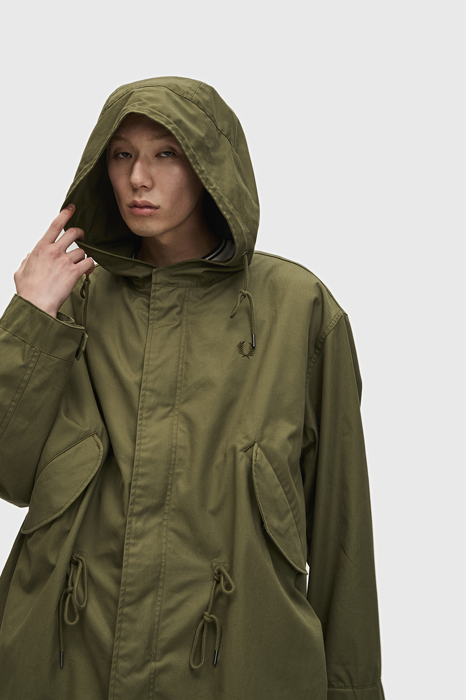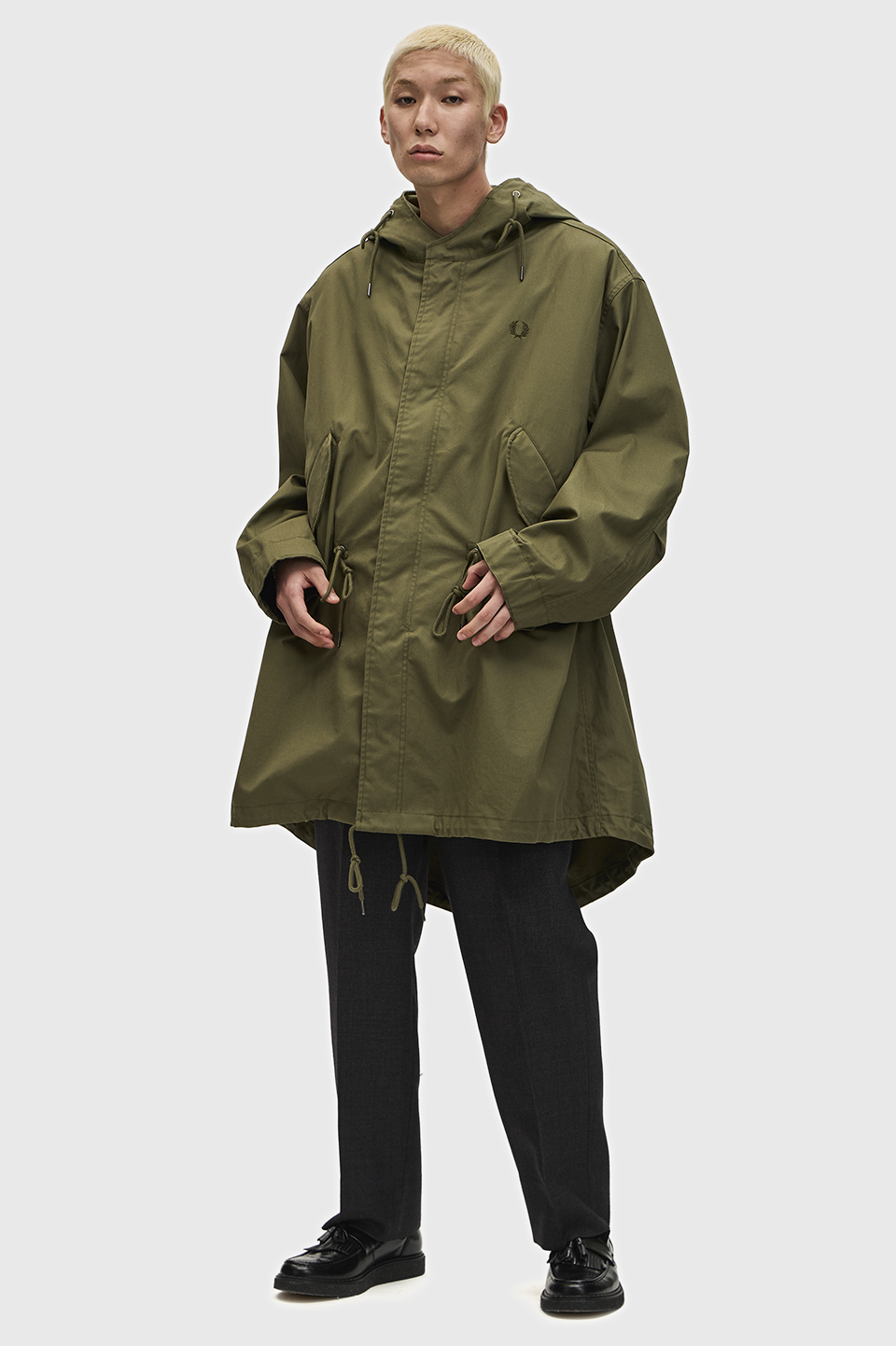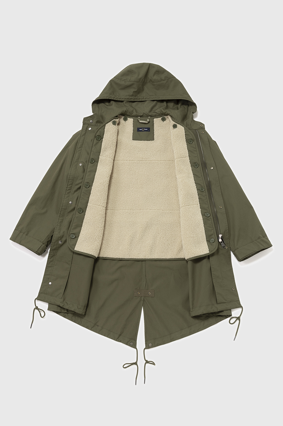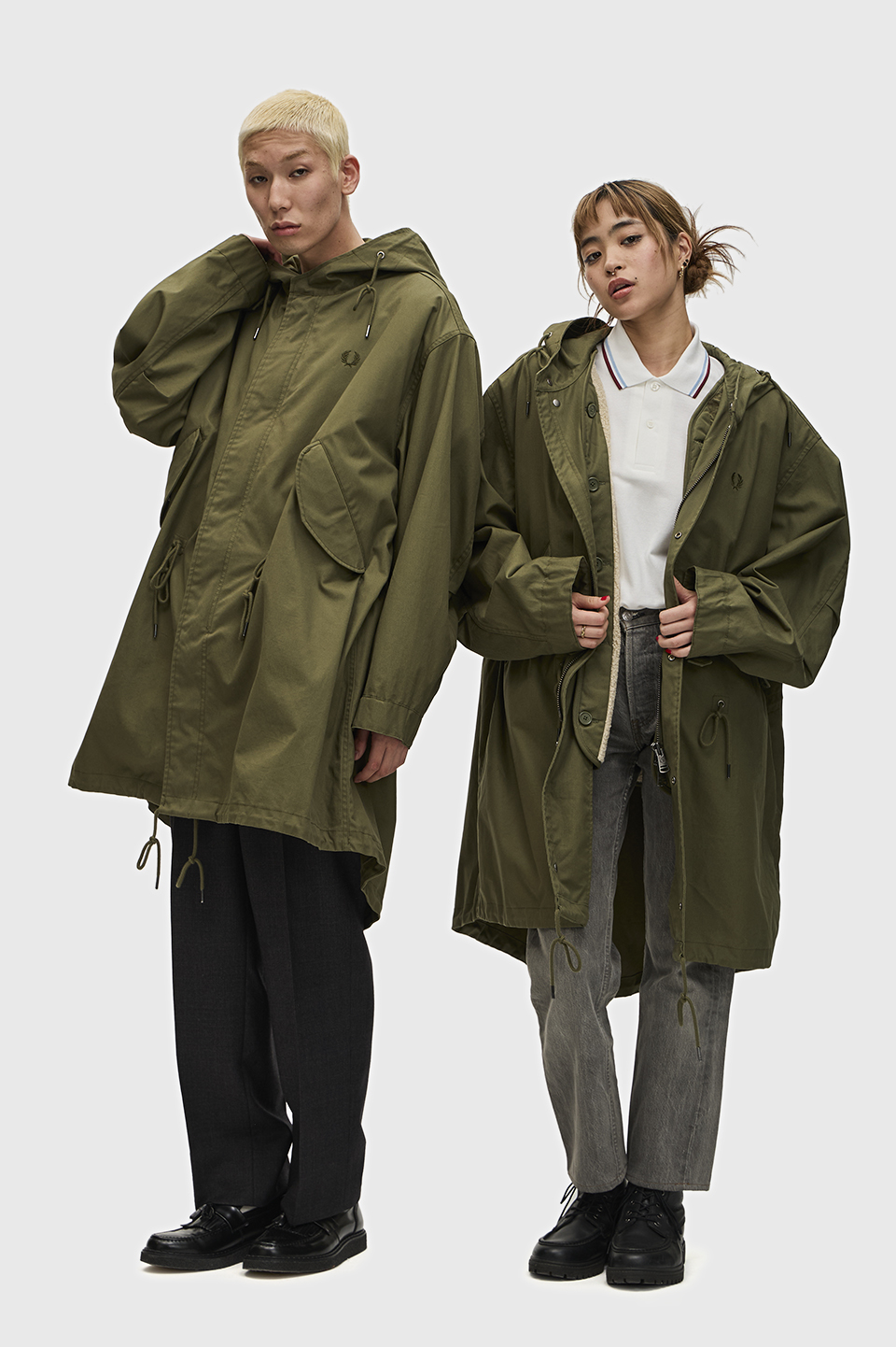 ビンテージのフィッシュテイルパーカを踏襲したオーバーサイズのジャケット。 90年代のサブカルチャーを反映させたデザインと、機能性を備えた本格的な全天候型アウター。 表地は起毛した高密度のコットンを使用、内側は着脱可能なジレスタイルのボアライナーを備えています。 ウエストと裾内側のドローコードでフィット感を調節できます。男女問わず着られるユニセックスデザインです。
