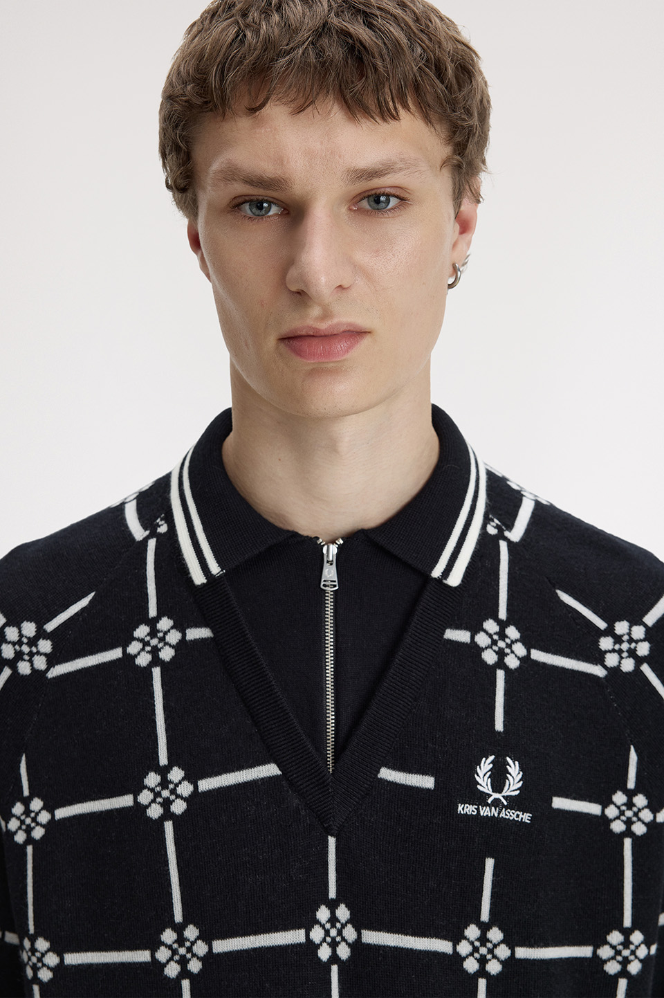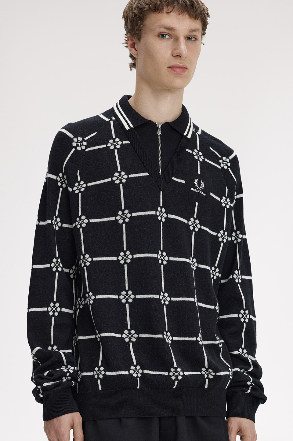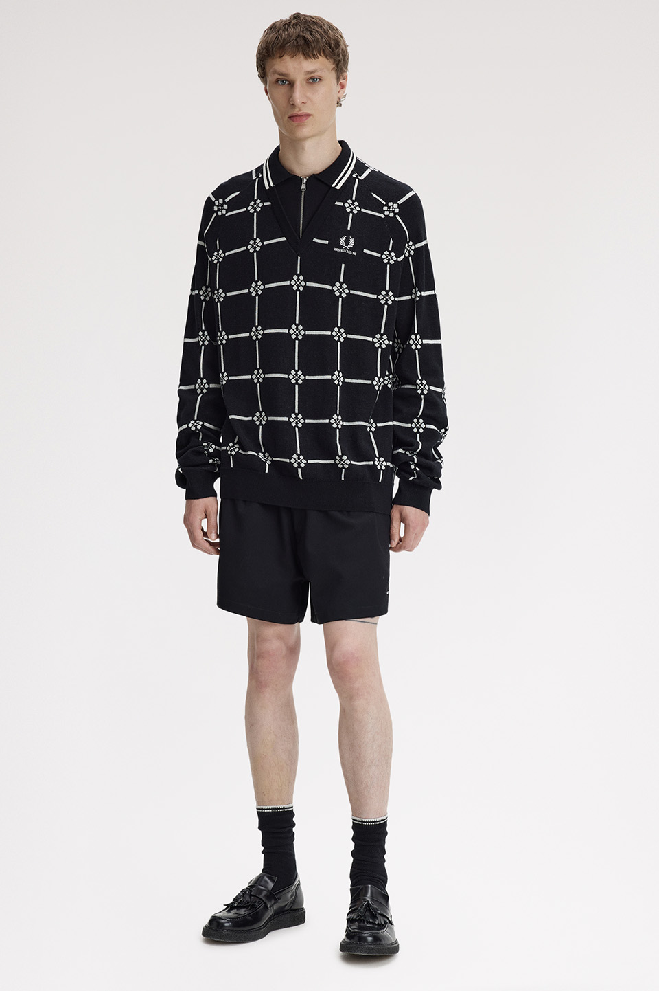 ユースカルチャーのユニフォームを再定義してアップデートすることを目指し、フレッドペリーのクラシカルなアイテム――それぞれがスポーツとストリートの文脈を持つ、ブランドを象徴するタイムレスなピース――を彼がひとつひとつ分 析し、伝統と革新のバランスを保ちながら、独自の視点で再構築しています。