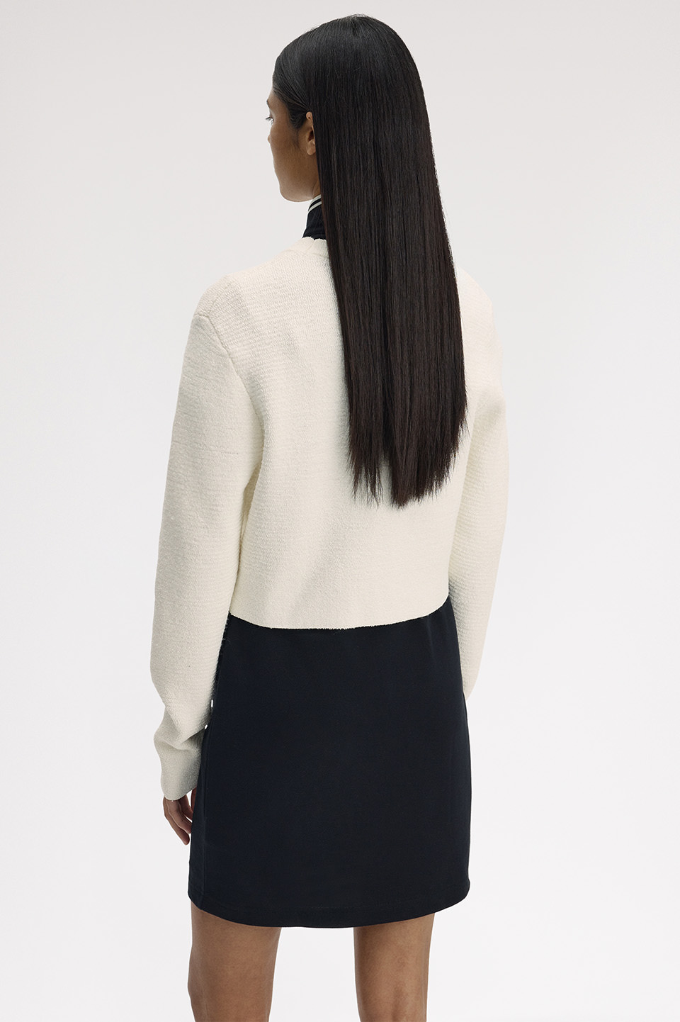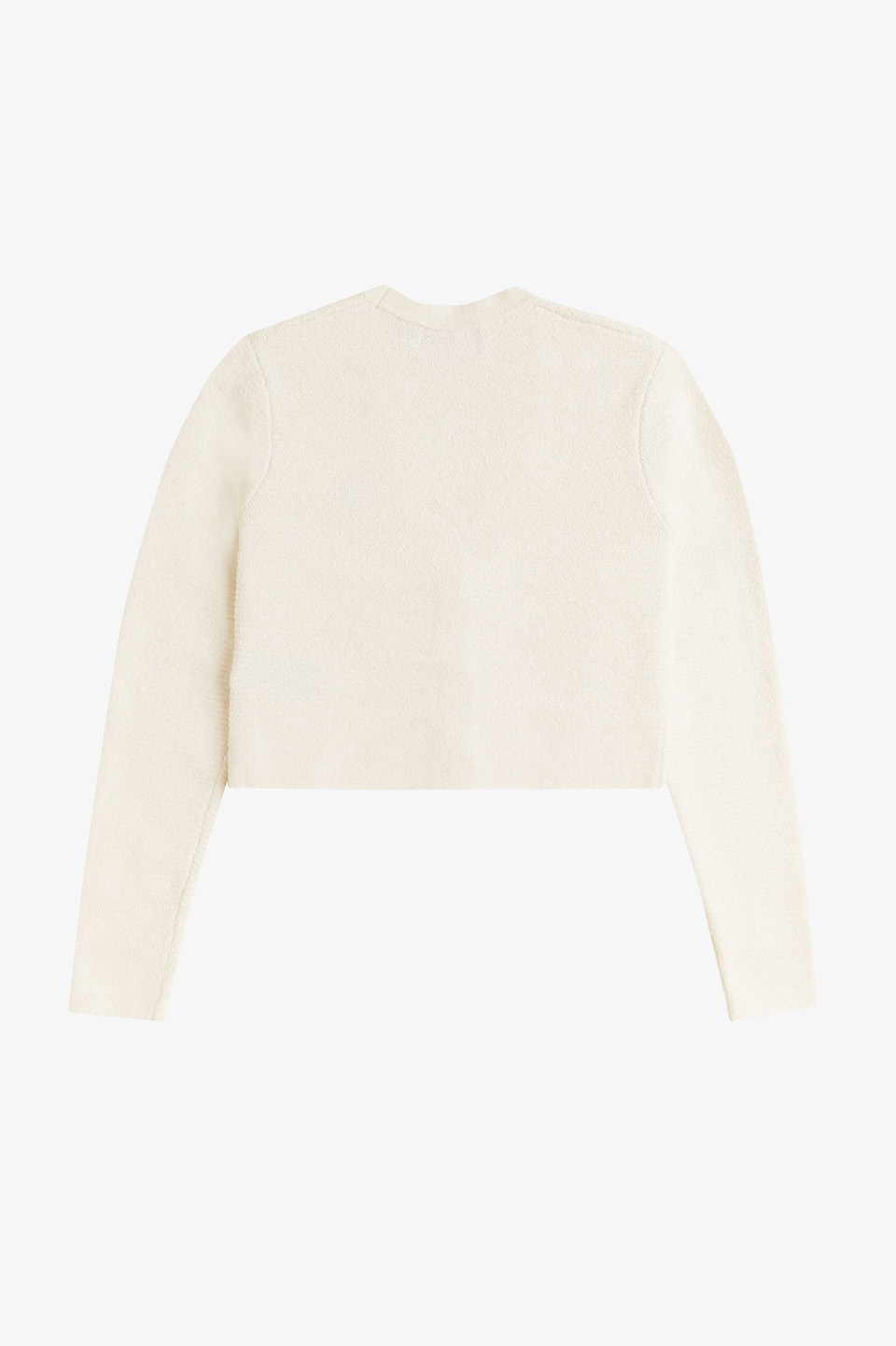 今シーズンも引き続きエイミー・ワインハウスのレンズを通したコレクションを展開します。深めのVネックが特徴のニットカーディガン。エイミーの象徴的なブラックスタイルを基調に、モノトーンで統一。派手さを抑えながらも、ディテールで個性を表現するスタイルが特徴的です。ナイロンポリエステル素材を使用し軽量で表面感豊かな編地で仕上げています。