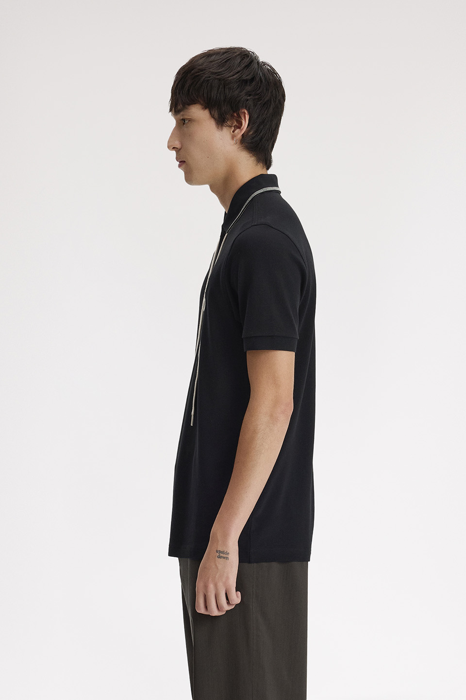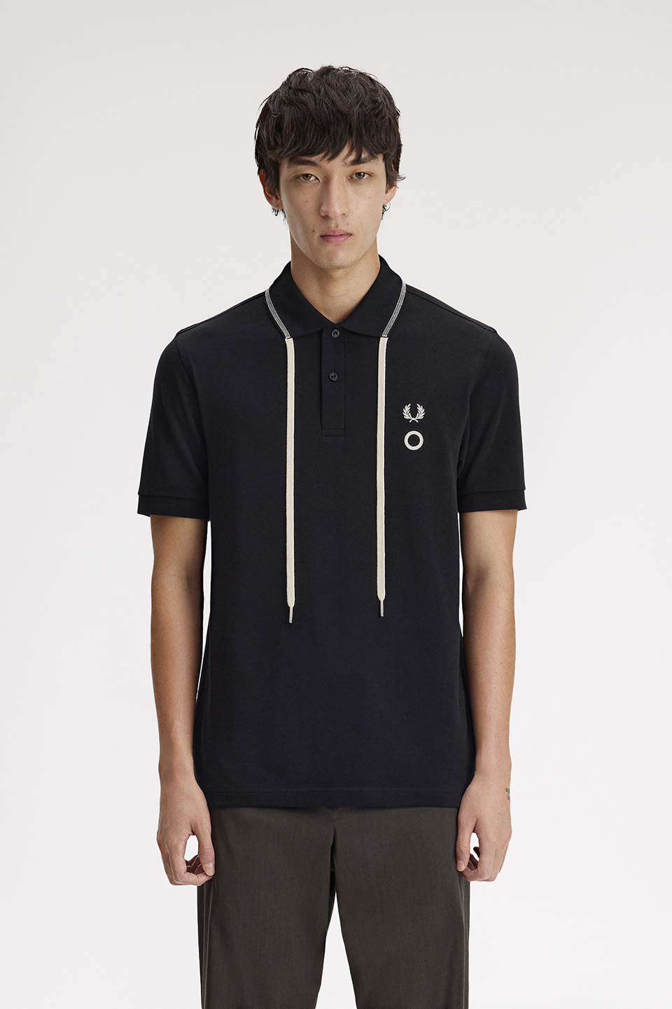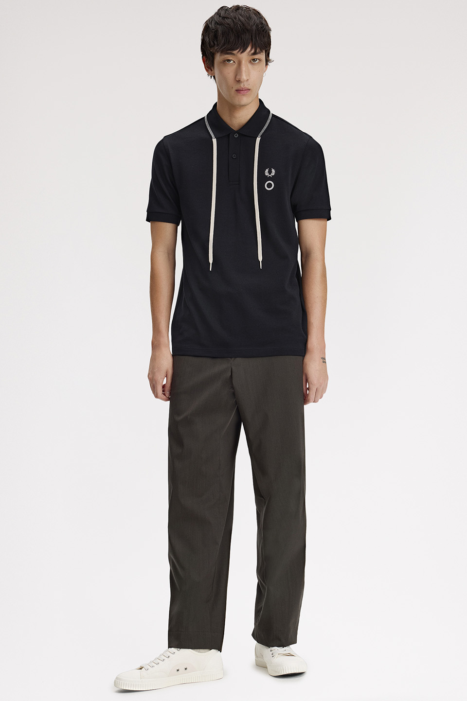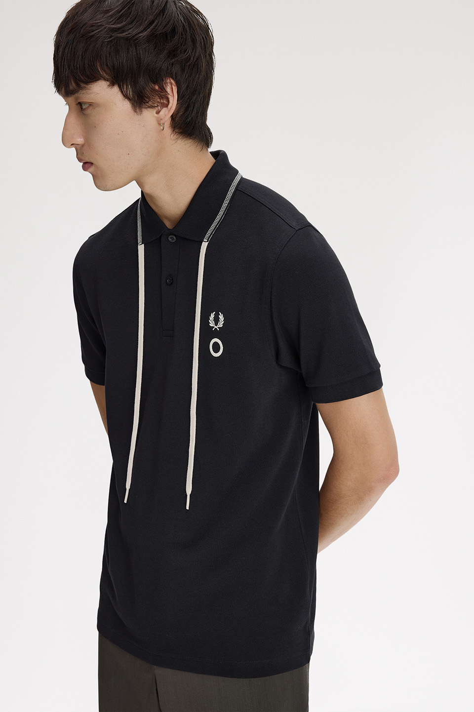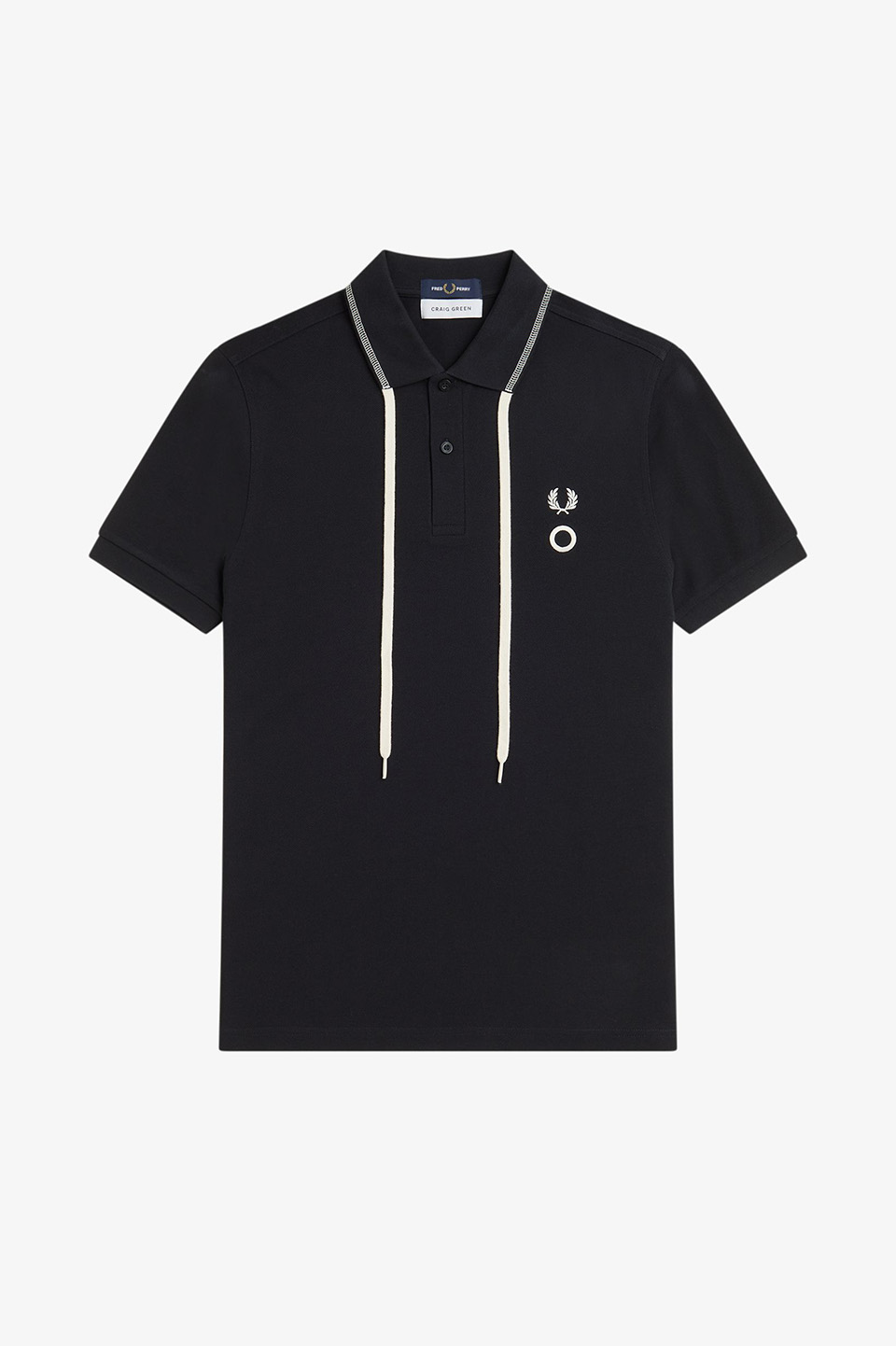 フレッドペリー定番の鹿の子素材を使用したポロシャツ。フレッドペリーシャツM3600をベースに、襟元のドローコードがデザインのアクセント。Craig Greenによる再解釈で、スポーティな美学を保ちつつ、新たなスタイリングの可能性を広げるディテールが加えられています。