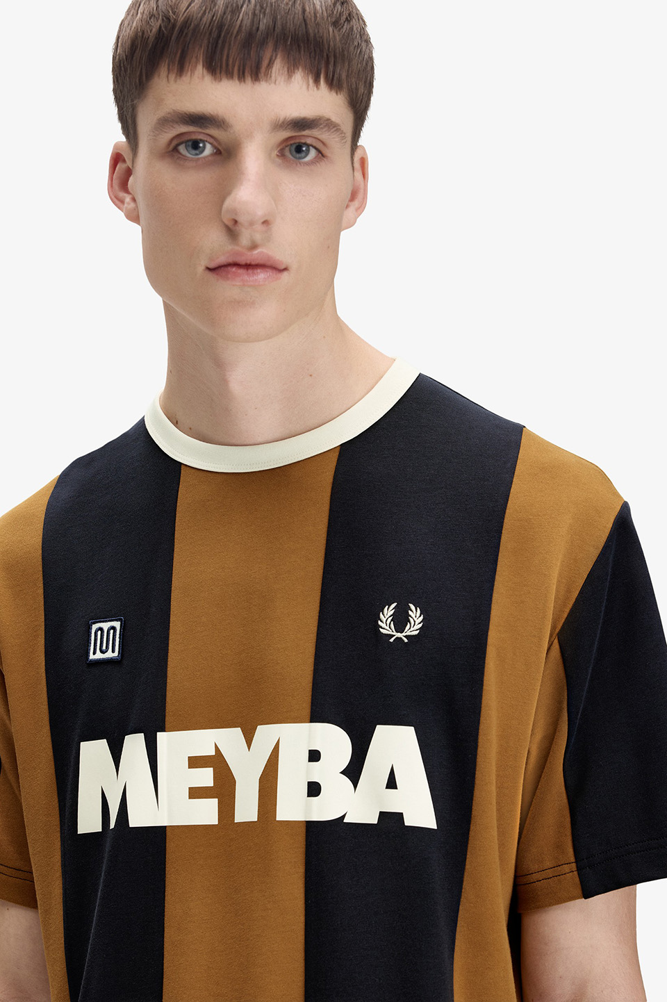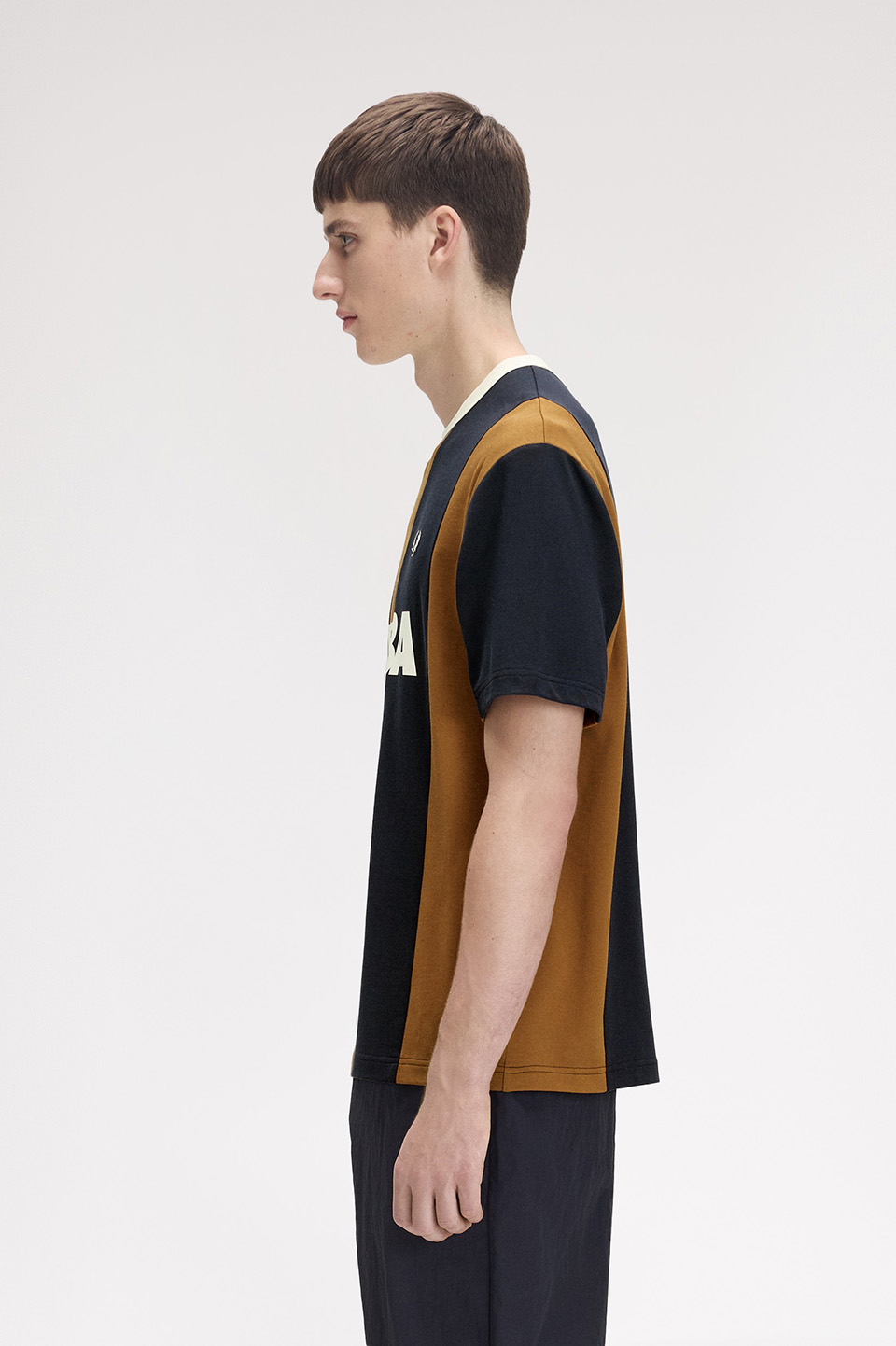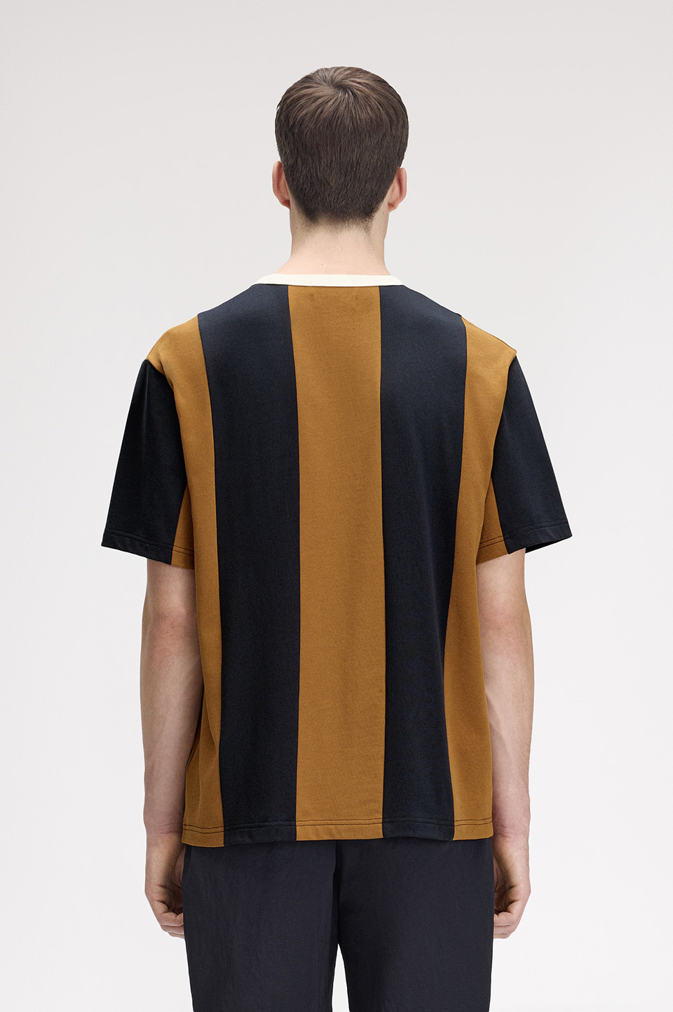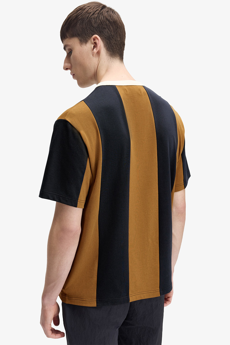 ブランドのシグネチャーであるリンガーTシャツをアレンジ、ゆったりとしたフィット感と大胆なスポーツストライプが特徴です。