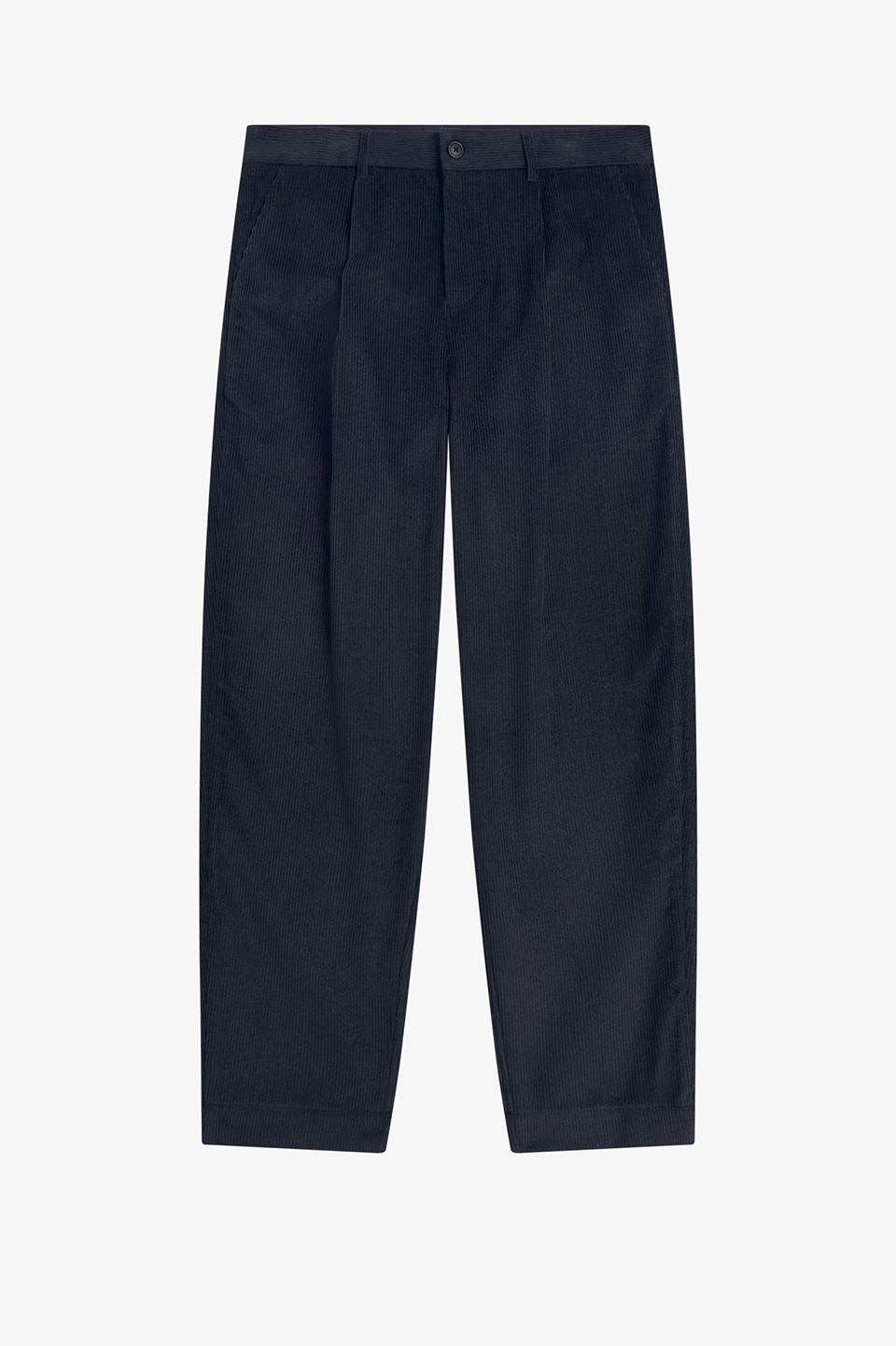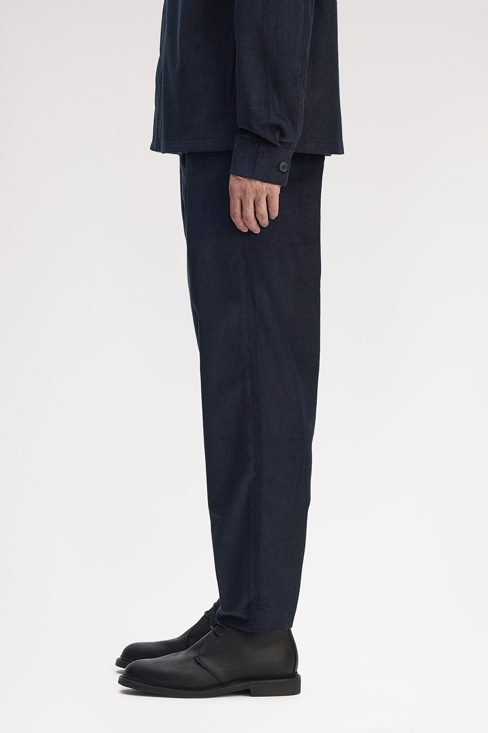 畝が太いコーデュロイを使ったトラウザー。8ウェル(1インチ間に8本の畝)のコーデュロイ生地は無骨な雰囲気ですが、上品な光沢が有りカジュアルになりすぎません。太いコーデュロイ生地は気品があり暖かな印象です。セットアップ可能なオーバーシャツのご用意もございます。